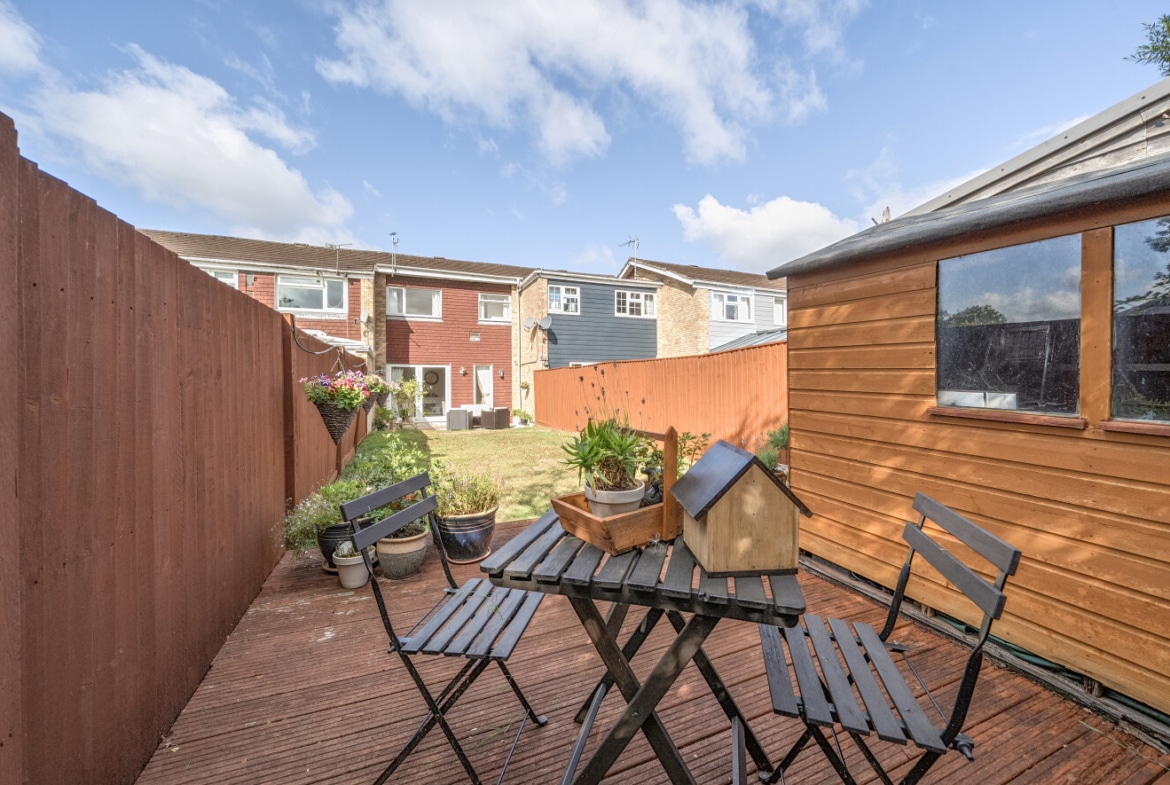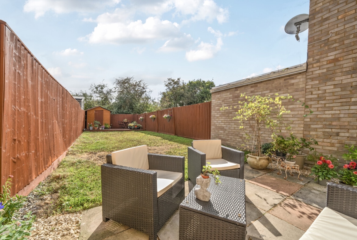 The ground floor is completed by a lovely garden with a mix of patio and grass, ideal for outdoor dining, entertaining, or simply enjoying the fresh air.