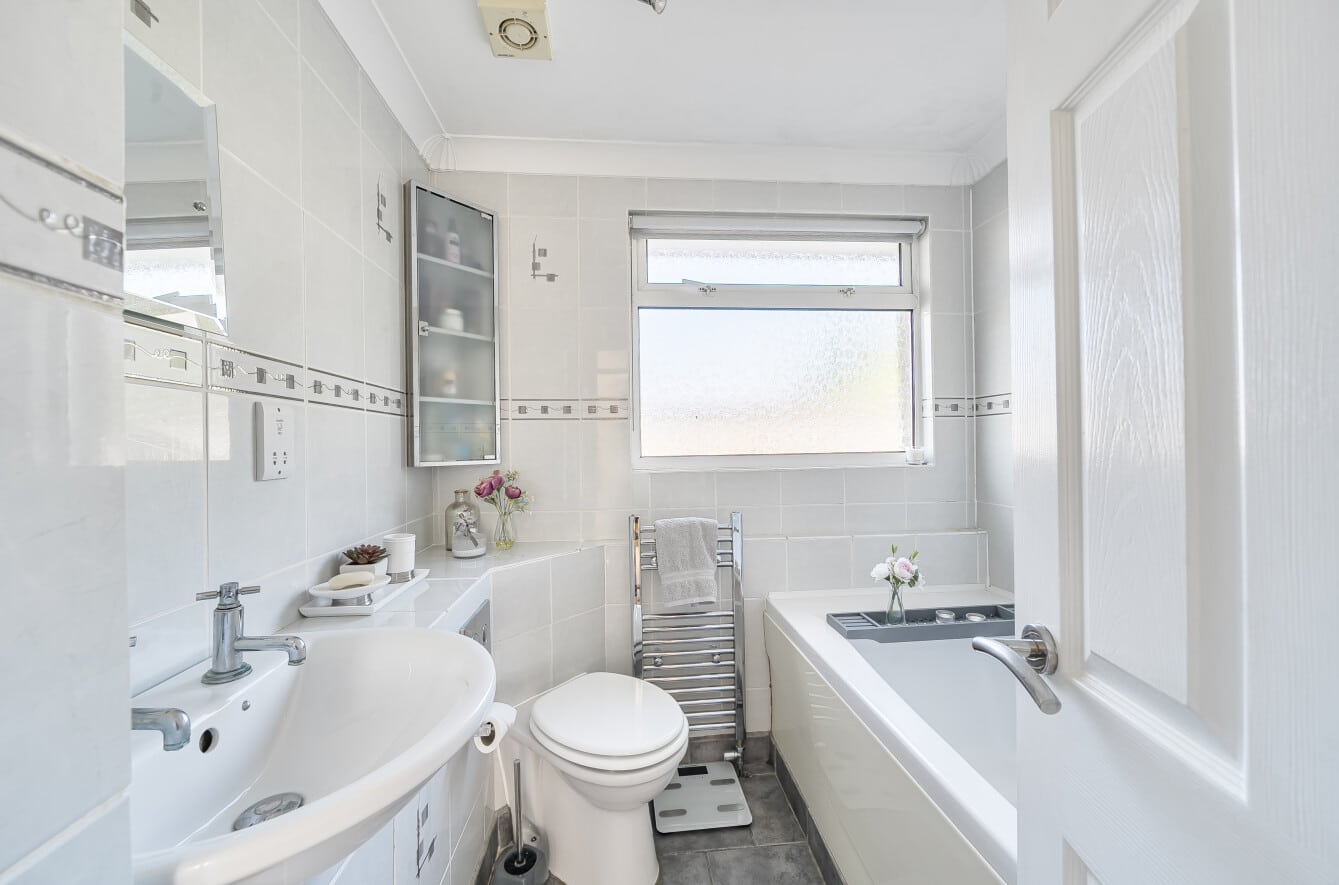 Upstairs, the property offers two modern double bedrooms, both well-presented and comfortable, along with a functional family bathroom that serves the household’s needs.