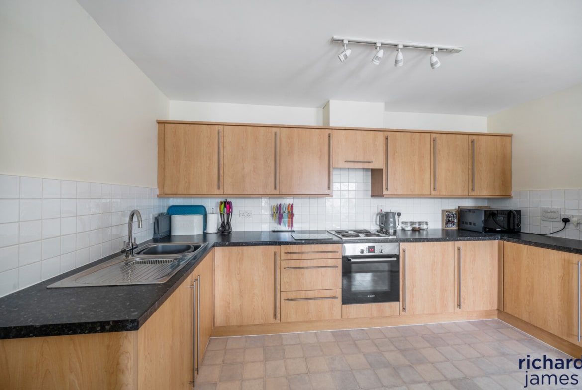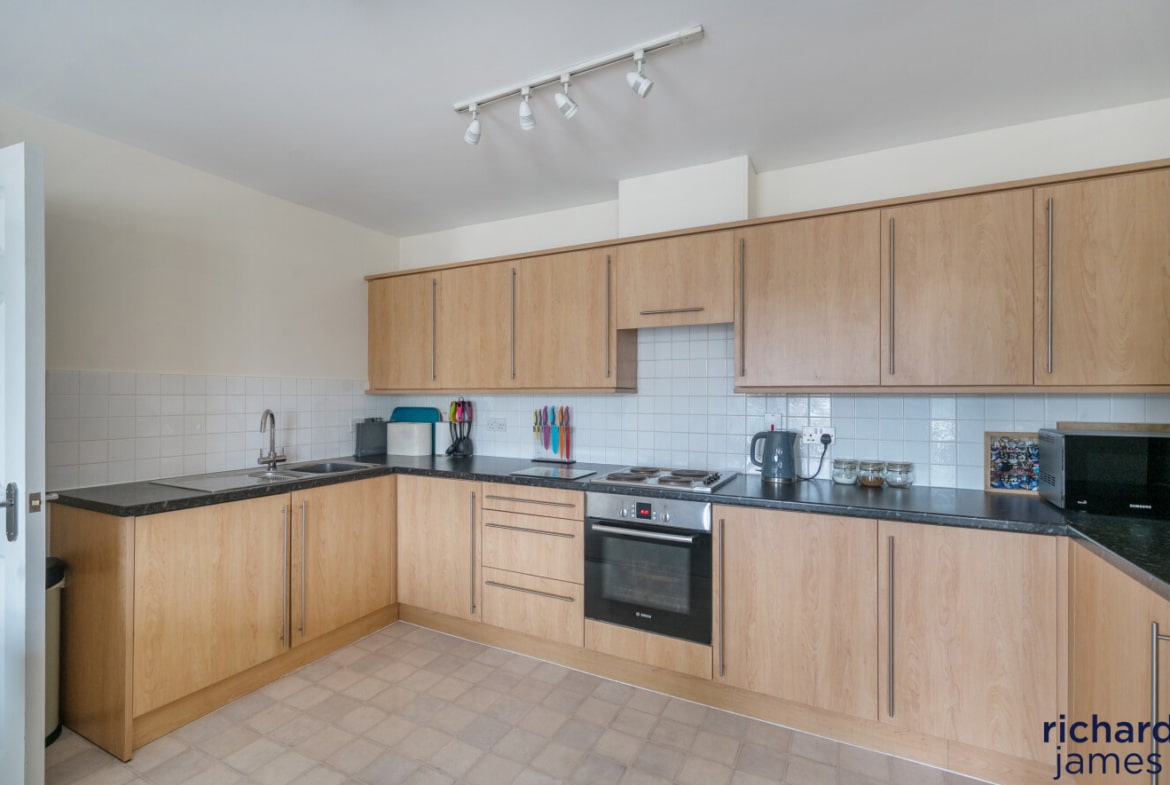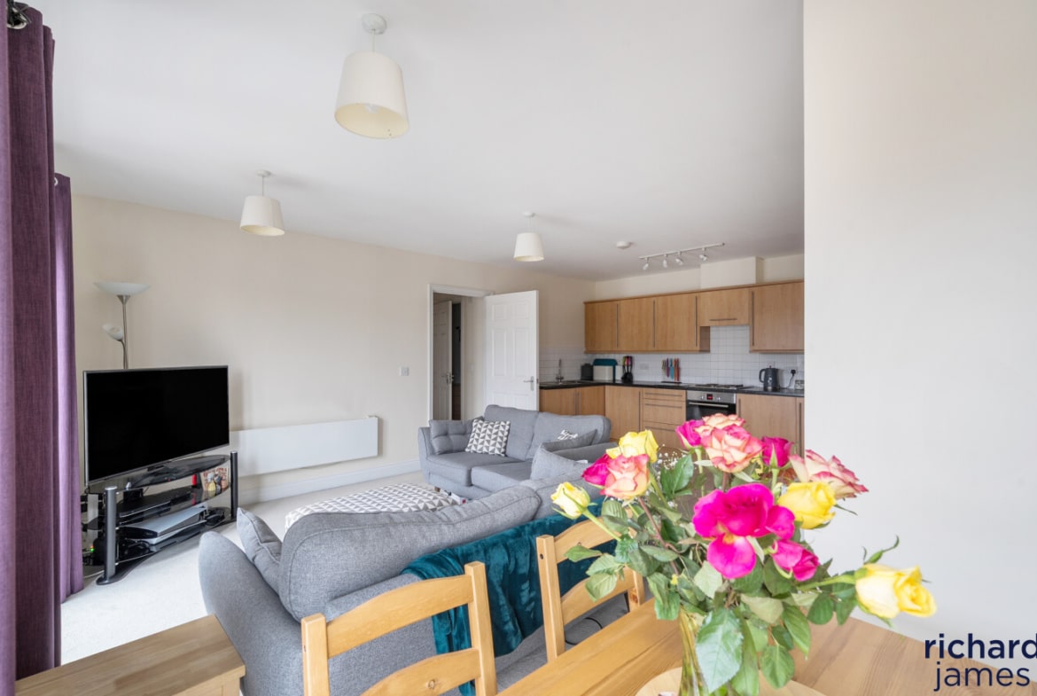 The heart of the home is the generous open-plan lounge and dining area, which benefits from excellent natural light and offers ample space for both relaxing and entertaining. The adjoining fitted kitchen is neatly arranged, making it a functional and sociable area for everyday use.