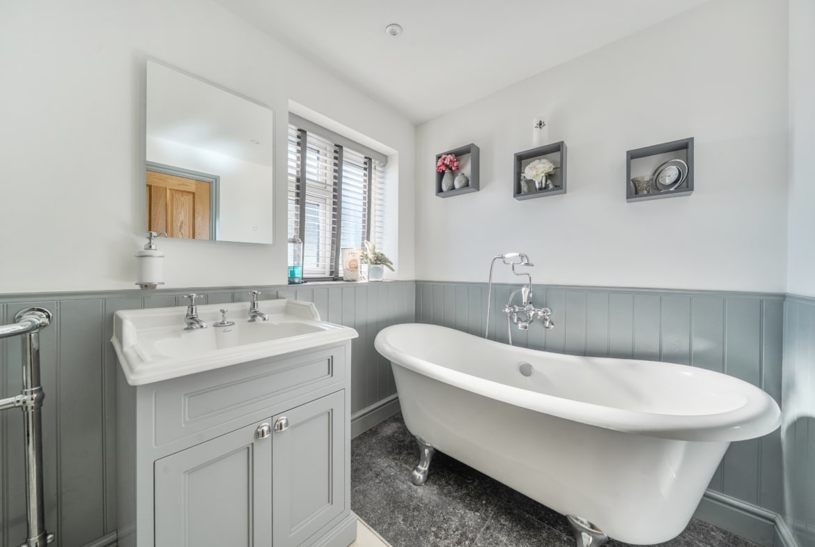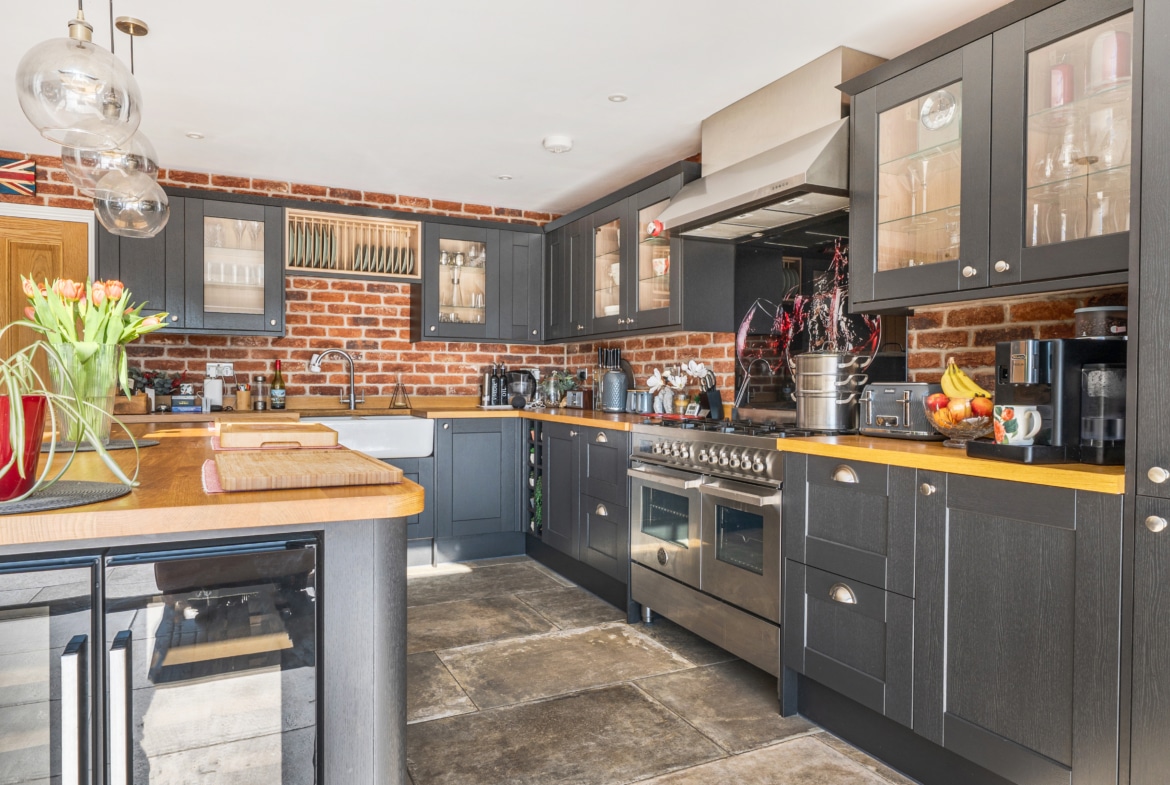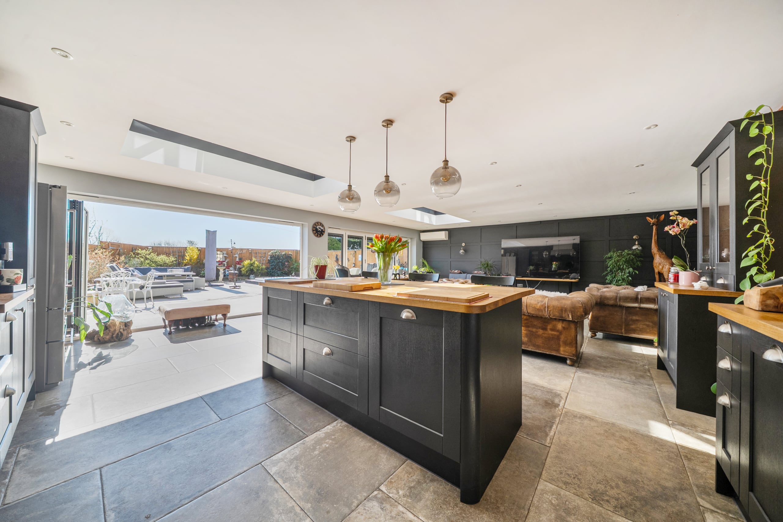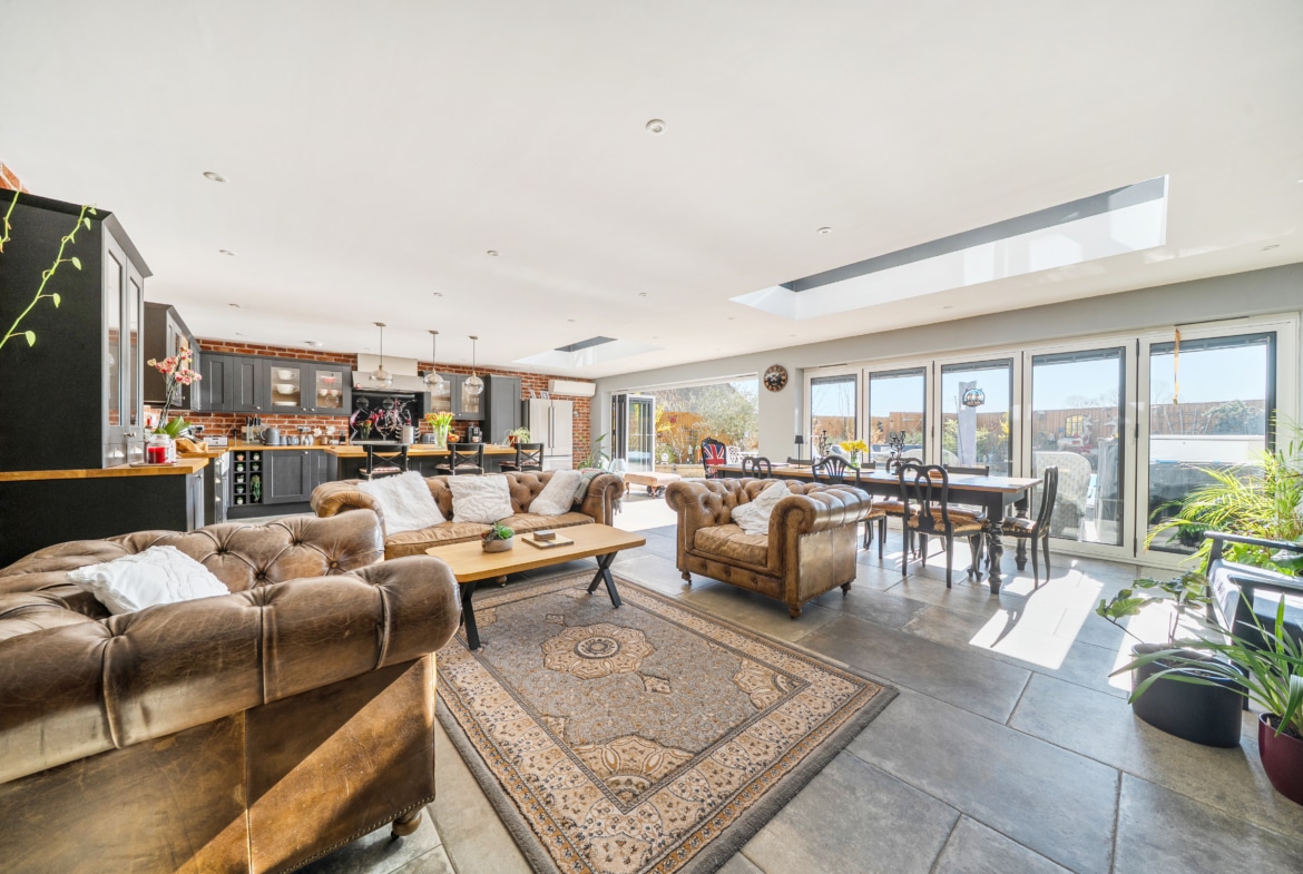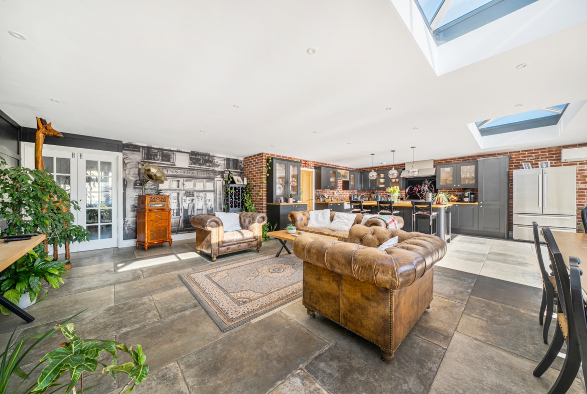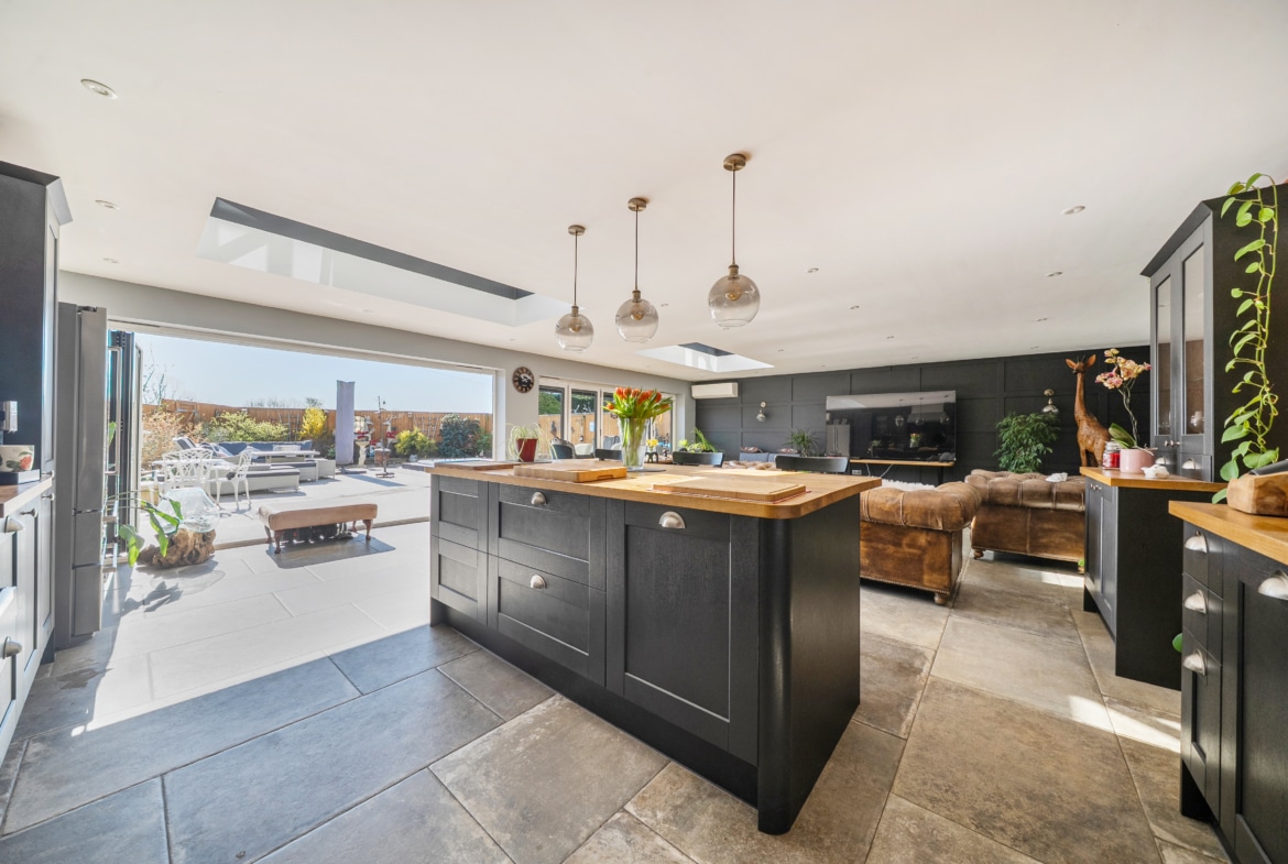 At the heart of the home is a stunning 30ft x 24ft fully equipped kitchen/breakfast/family room, perfectly designed for modern living and entertaining, with delightful views over the sunny, private gardens.