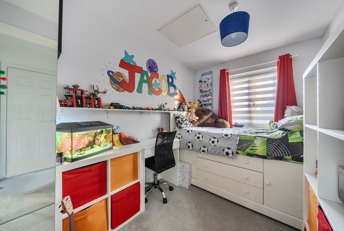 Up on the top floor, there’s a larger double bedroom with a Jack and Jill en suite that also connects to the landing, plus two further single rooms. It’s a layout that works really well if you’ve got children and want to keep that space together on one level.
