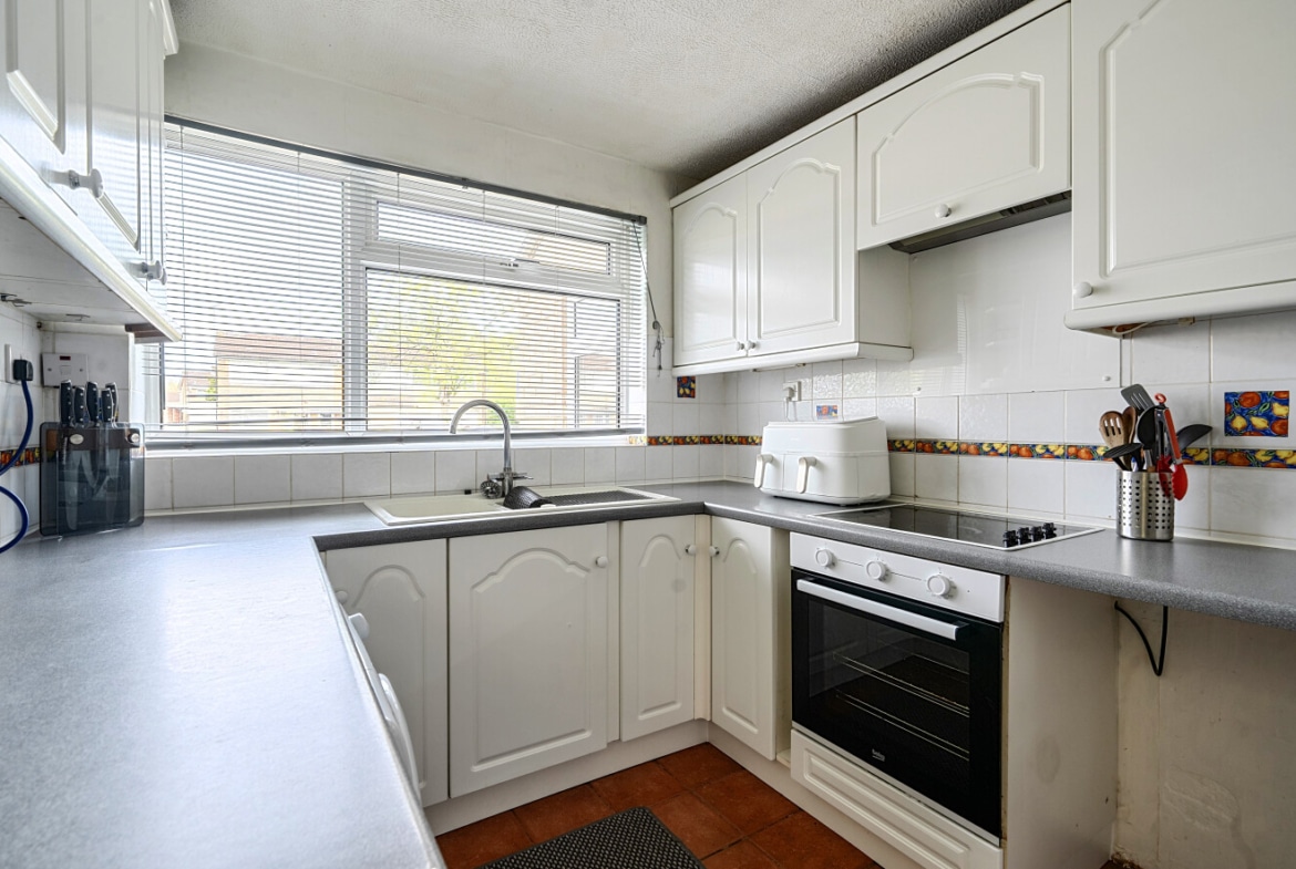 The kitchen is positioned at the front of the property and is thoughtfully designed with a convenient layout, offering a range of fitted units, generous worktop space, and room for appliances—perfectly suited to day-to-day family living.