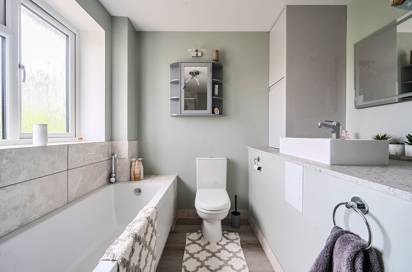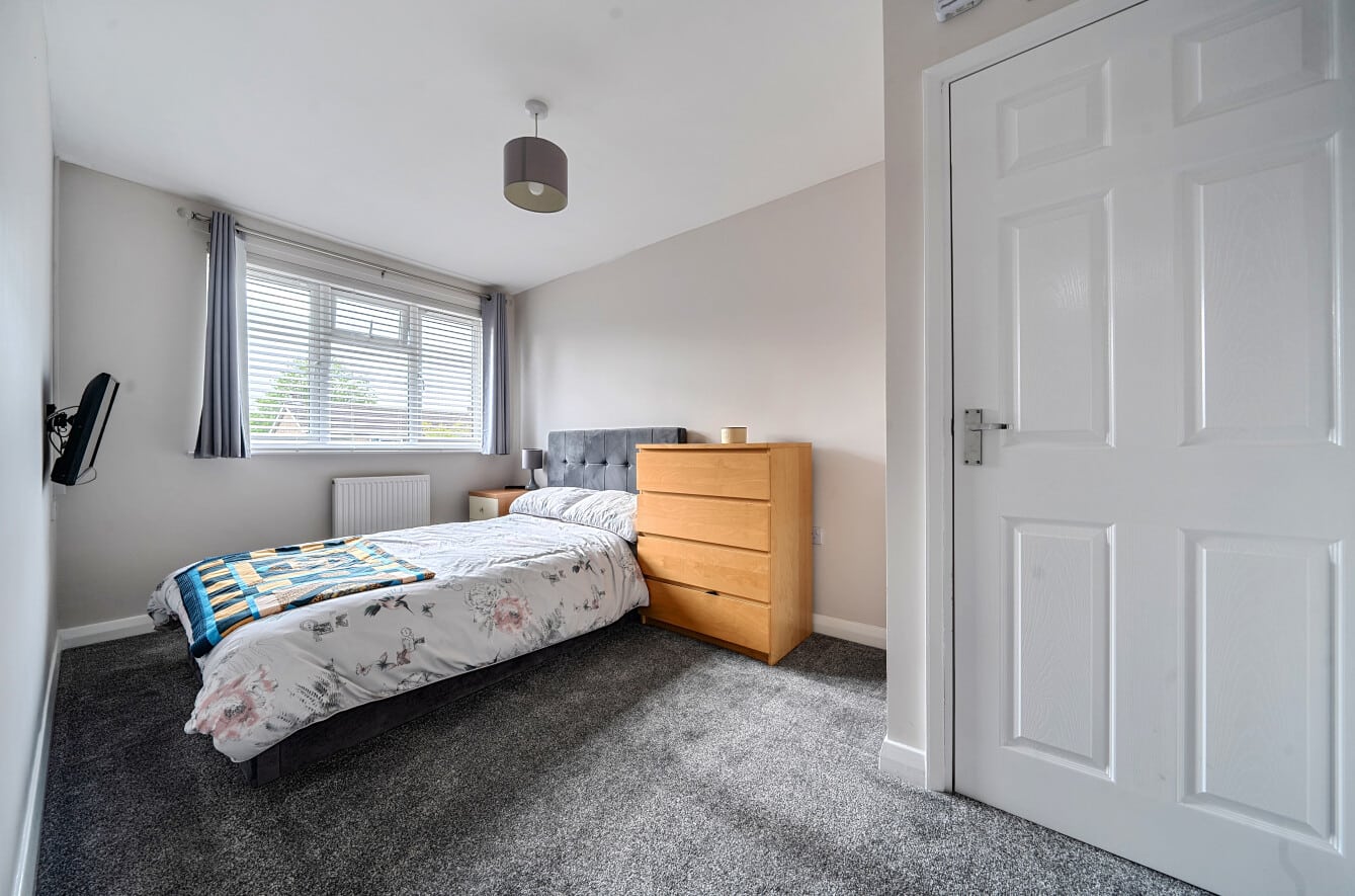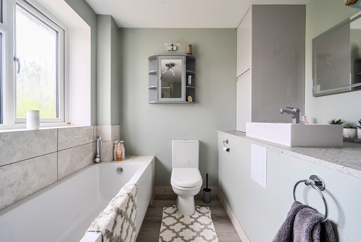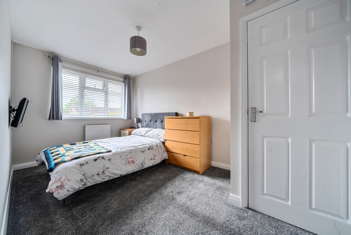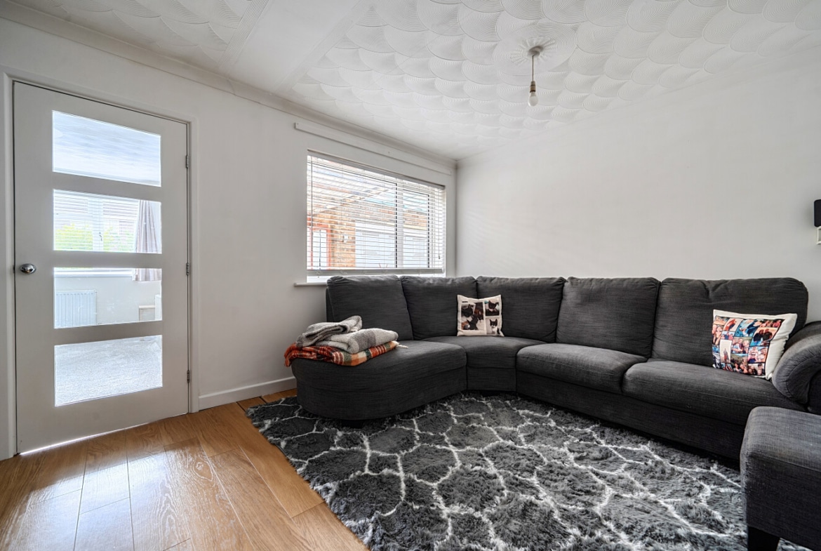 Upstairs, the first floor hosts three well-proportioned bedrooms. Bedroom one is a comfortable double room, while bedroom two offers further generous accommodation. Bedroom three is ideal as a child’s room, nursery, or study. The modern family bathroom is stylishly finished, offering a clean and contemporary space designed for both comfort and practicality.