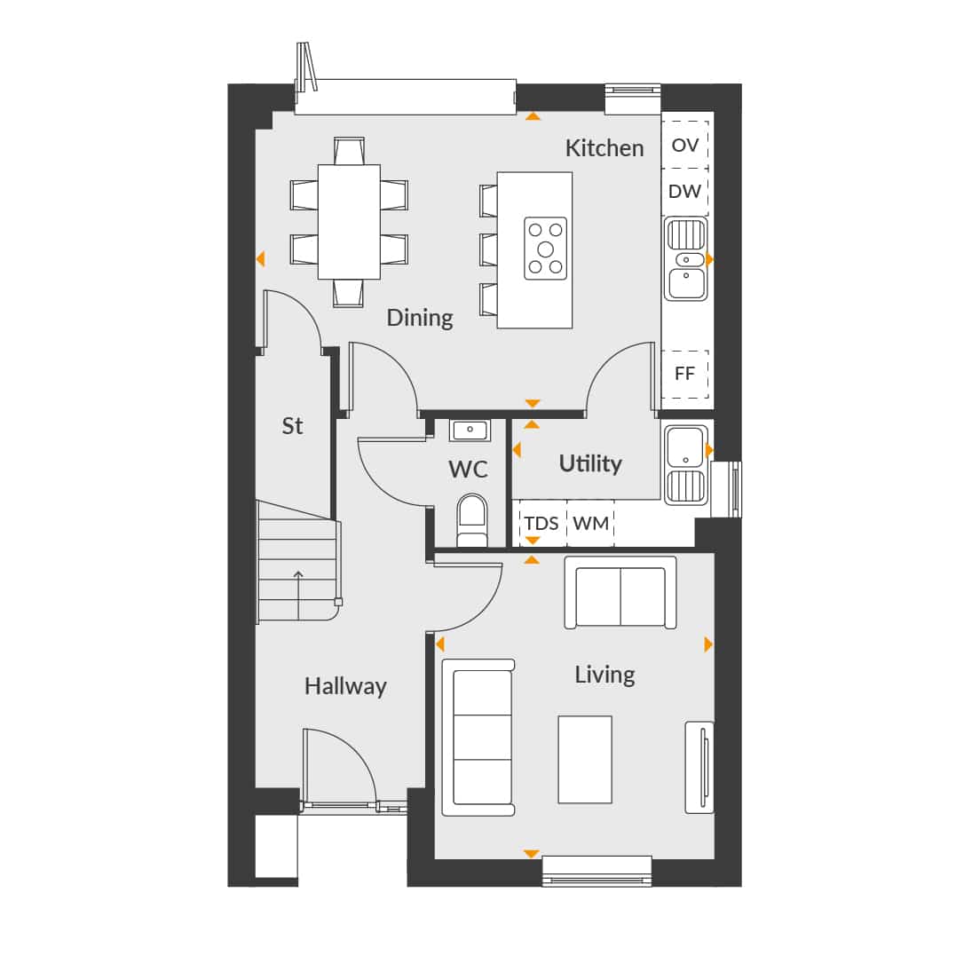 The ground floor welcomes you with a bright and airy living room, perfect for relaxing with family. The open-plan kitchen and dining area serve as the heart of the home, featuring contemporary fittings, built in appliances and ample space for social gatherings. A convenient cloakroom, dedicated storage, and a practical utility room add to the home’s functionality.