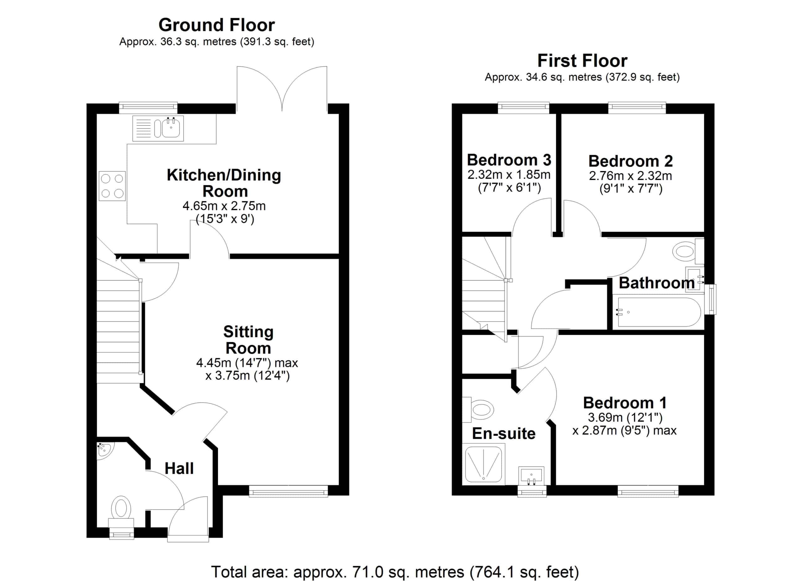 The accommodation comprises: Hall, Cloakroom, Sitting Room and fitted Kitchen/Dining Room with patio doors opening into the Garden. With the Three Bedrooms, Ensuite to Bedroom One and a further Family Bathroom, to the first floor.