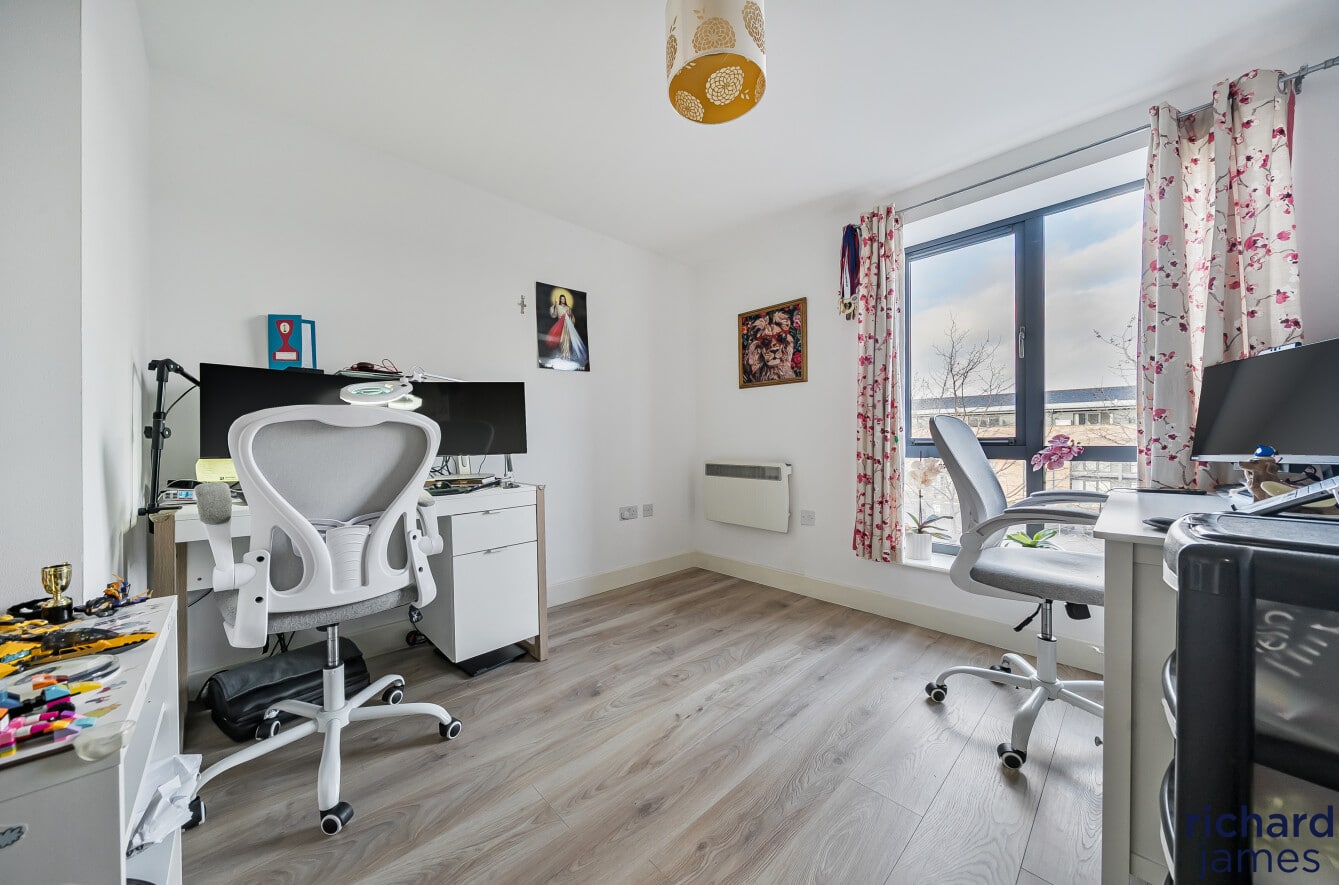 The apartment offers two well-proportioned double bedrooms. The principal bedroom boasts a stylish en-suite shower room, while the second bedroom is wonderfully versatile – ideal as a guest room, home office or nursery. A sleek, contemporary family bathroom completes the accommodation.