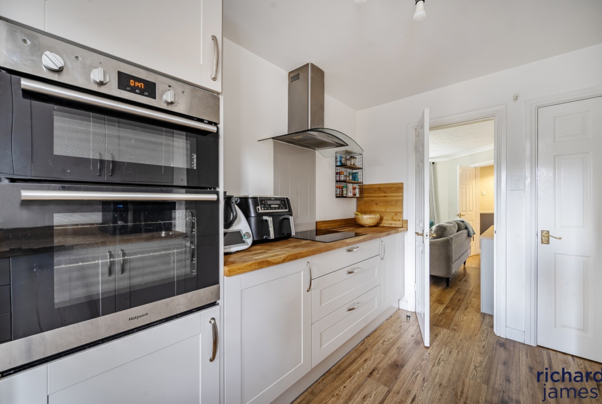 Upstairs, the property offers three generous bedrooms. The principal bedroom benefits from its own stylish ensuite shower room, while a modern three-piece family bathroom serves the remaining bedrooms.