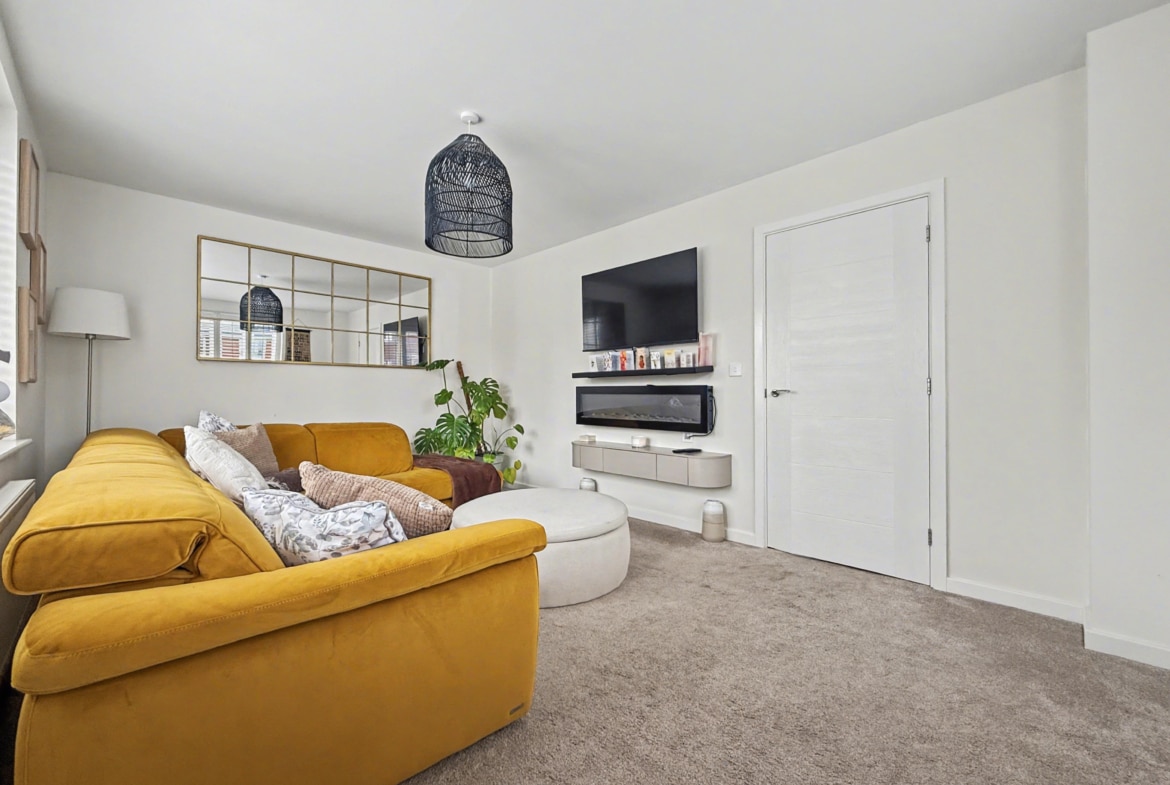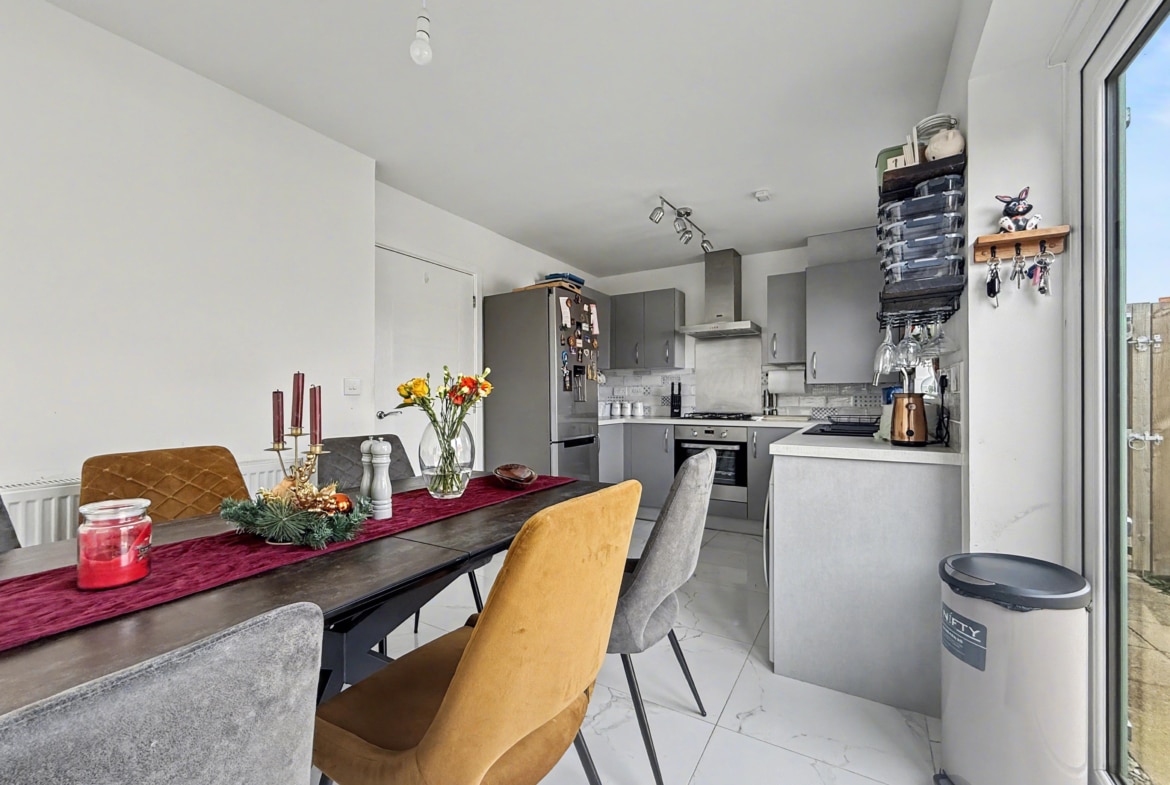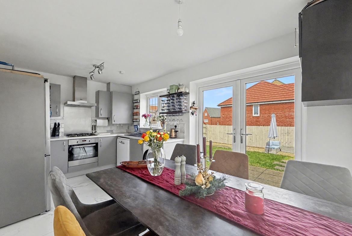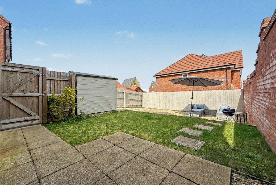 Built in 2022 by Bloor Homes, the property occupies a generous plot, whilst being completely detached and offering a bright and airy feel throughout whilst benefitting from a dual aspect living room, kitchen/diner with French doors to the garden, cloakroom, family bathroom and three bedrooms of which the master accommodates an en-suite. The property also features bespoke fitted shutters to the windows. Externally, the property provides an enclosed rear garden featuring both gravel and patio areas, alongside gated access to the side, providing access to the driveway.