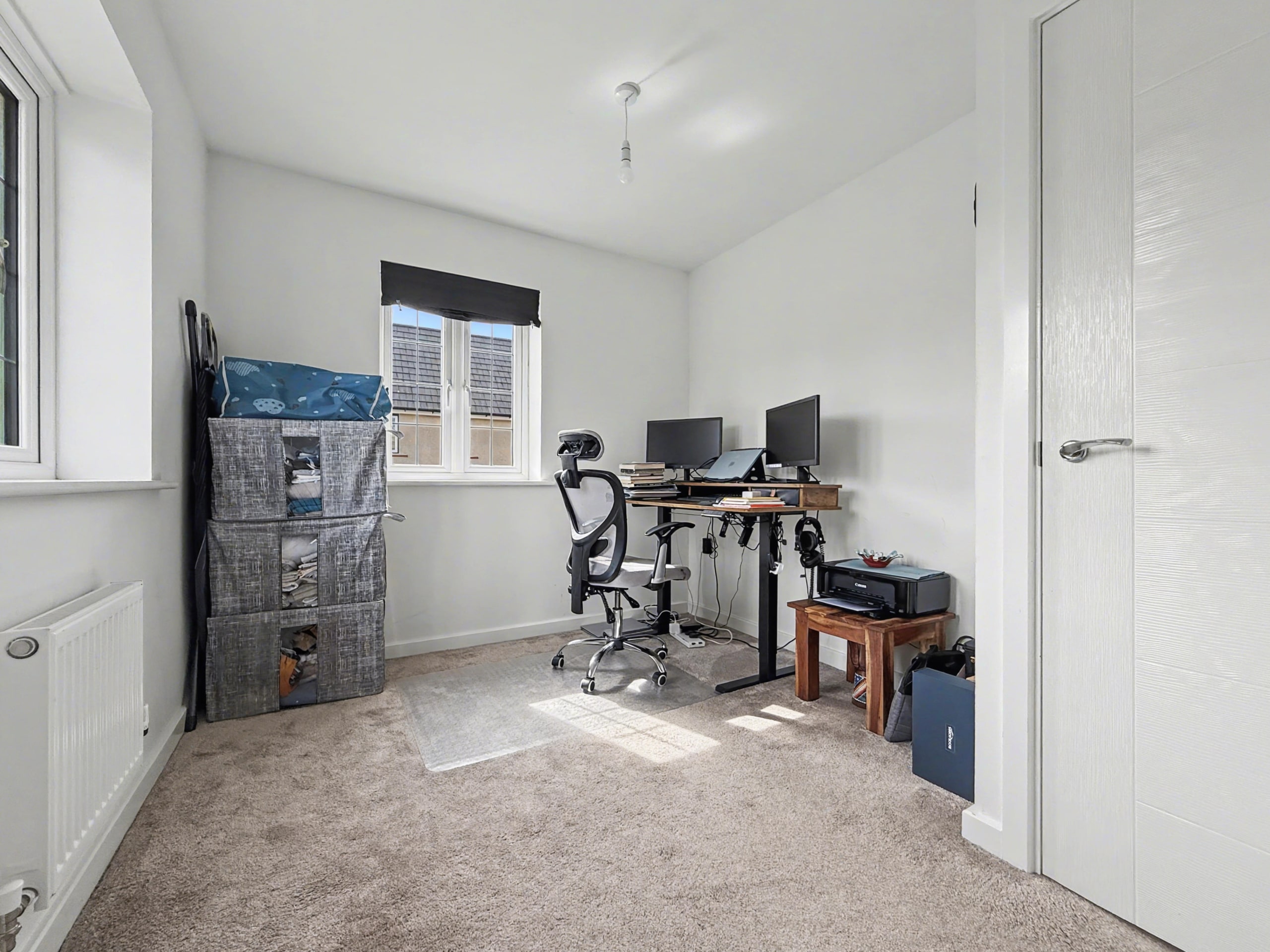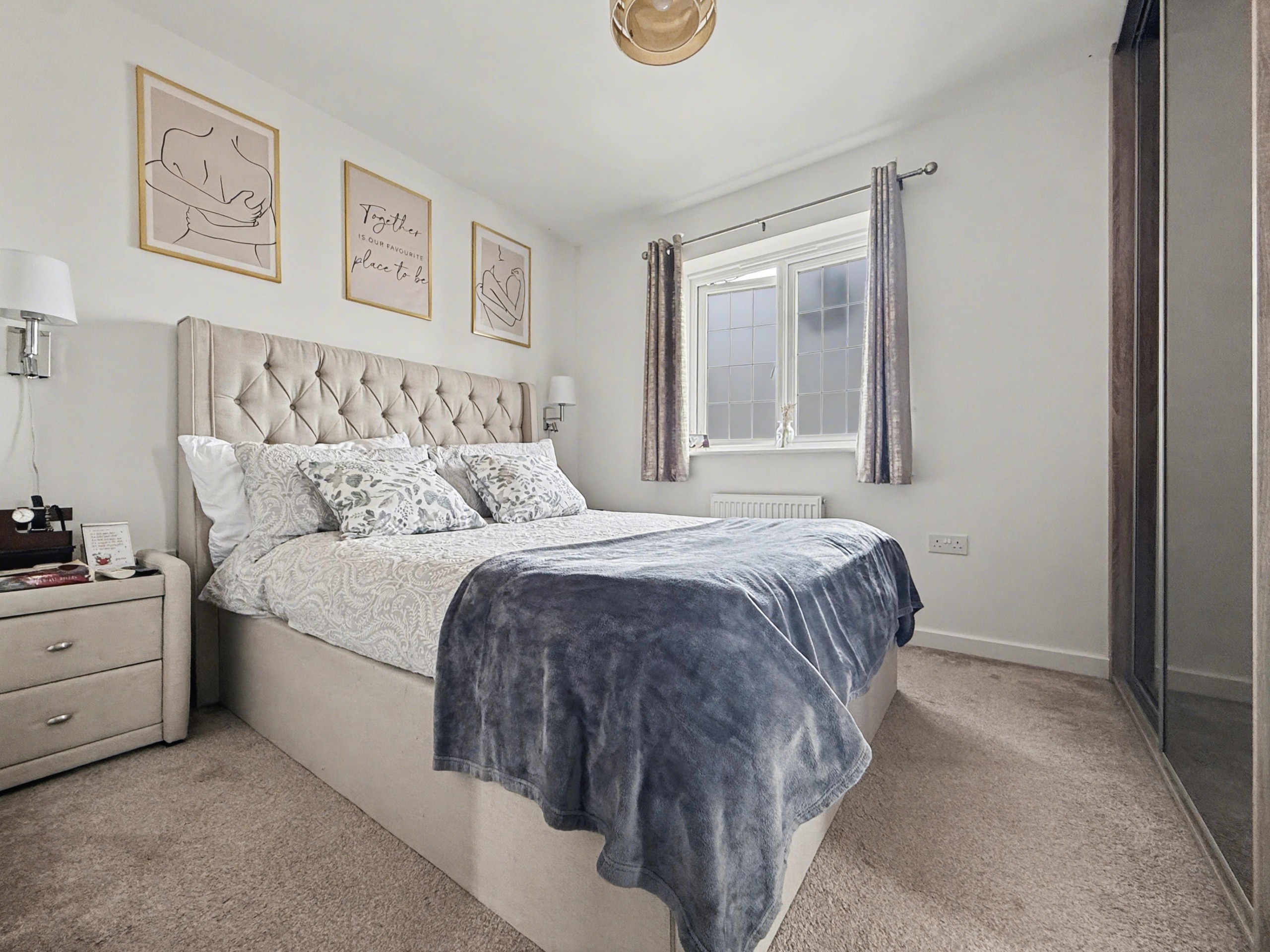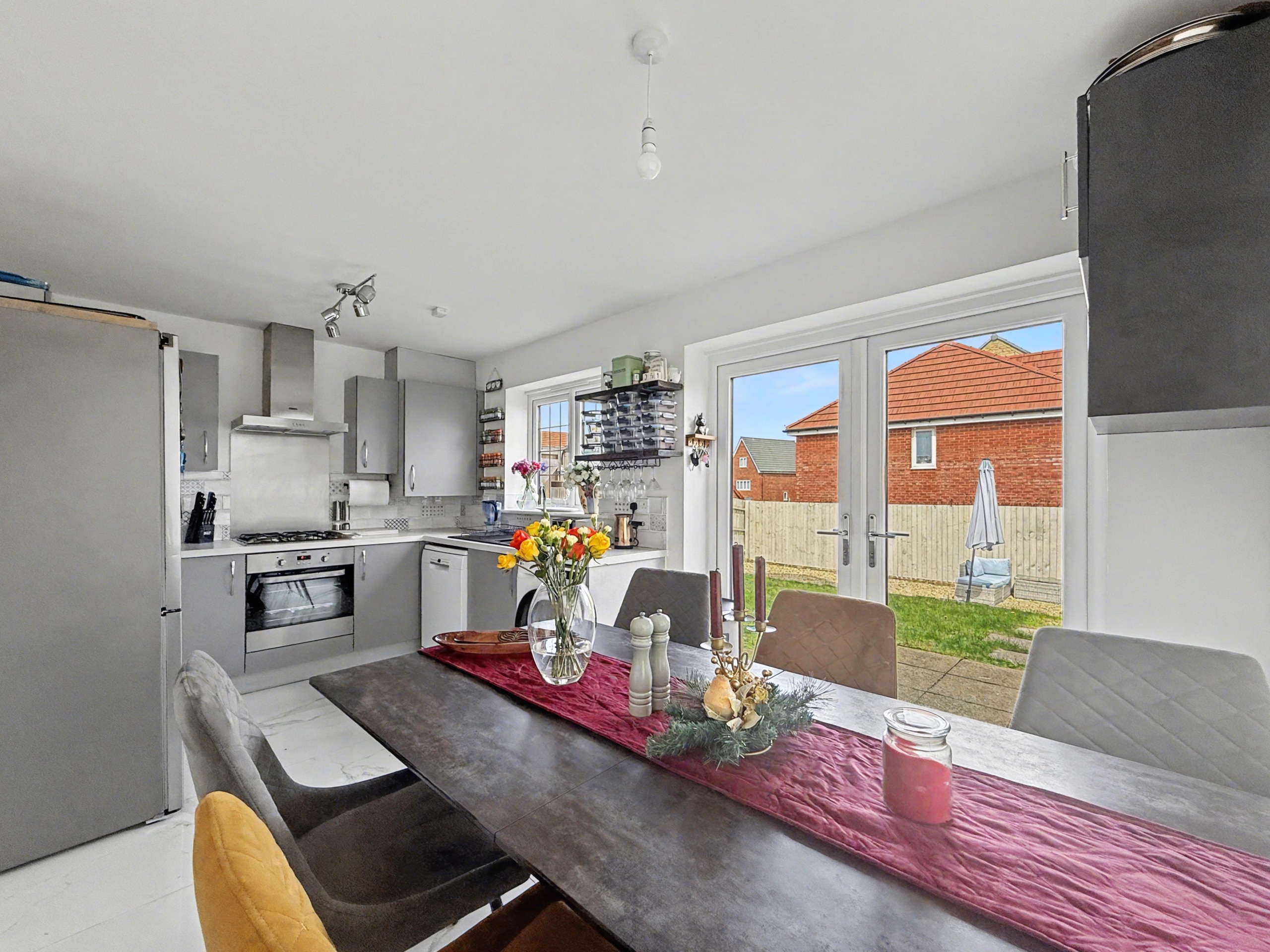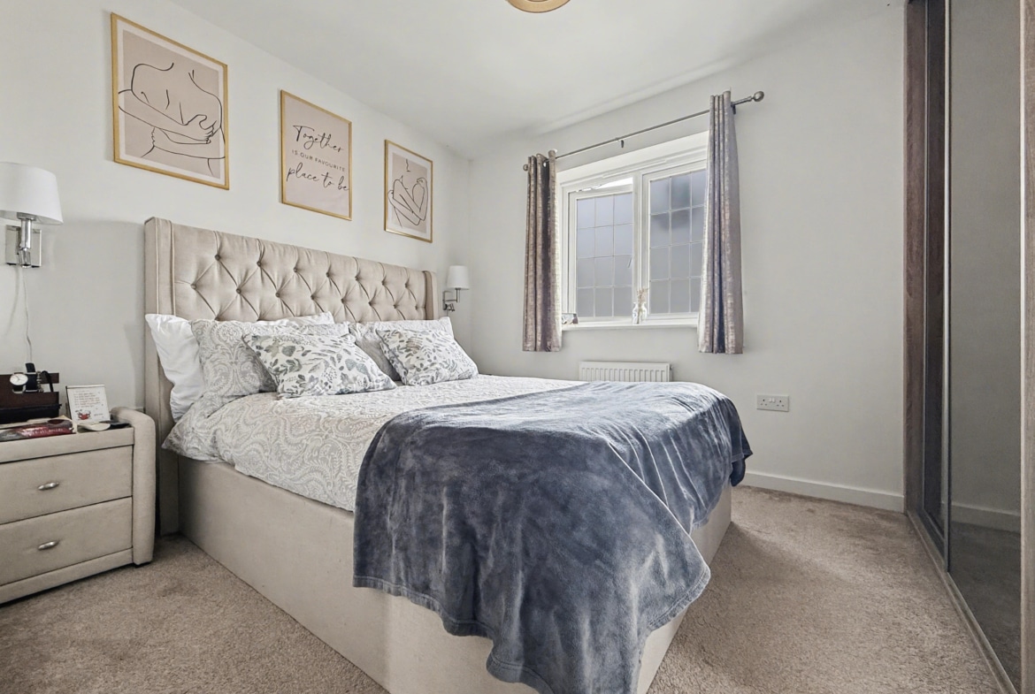 Built in 2022 by Bloor Homes, the property occupies a generous plot, whilst being completely detached and offering a bright and airy feel throughout whilst benefitting from a dual aspect living room, kitchen/diner with French doors to the garden, cloakroom, family bathroom and three bedrooms of which the master accommodates an en-suite. The property also features bespoke fitted shutters to the windows. Externally, the property provides an enclosed rear garden featuring both gravel and patio areas, alongside gated access to the side, providing access to the driveway.