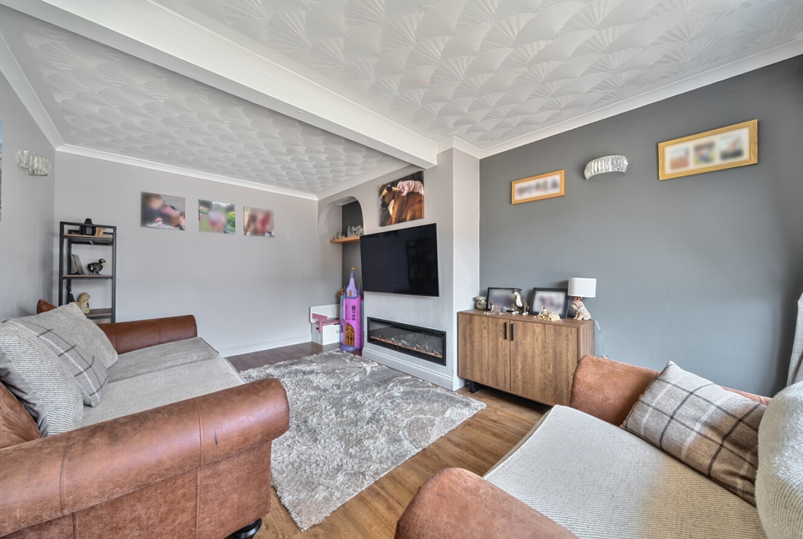 A welcoming entrance hall includes clever storage space under the stairs, perfect for coats, shoes, or even a small work-from-home desk setup. The contemporary bathroom is located downstairs, finished to a high standard.