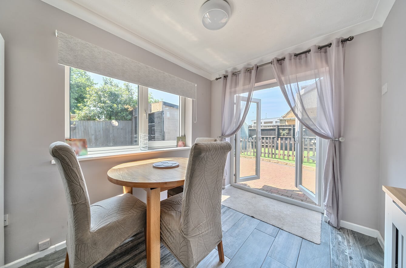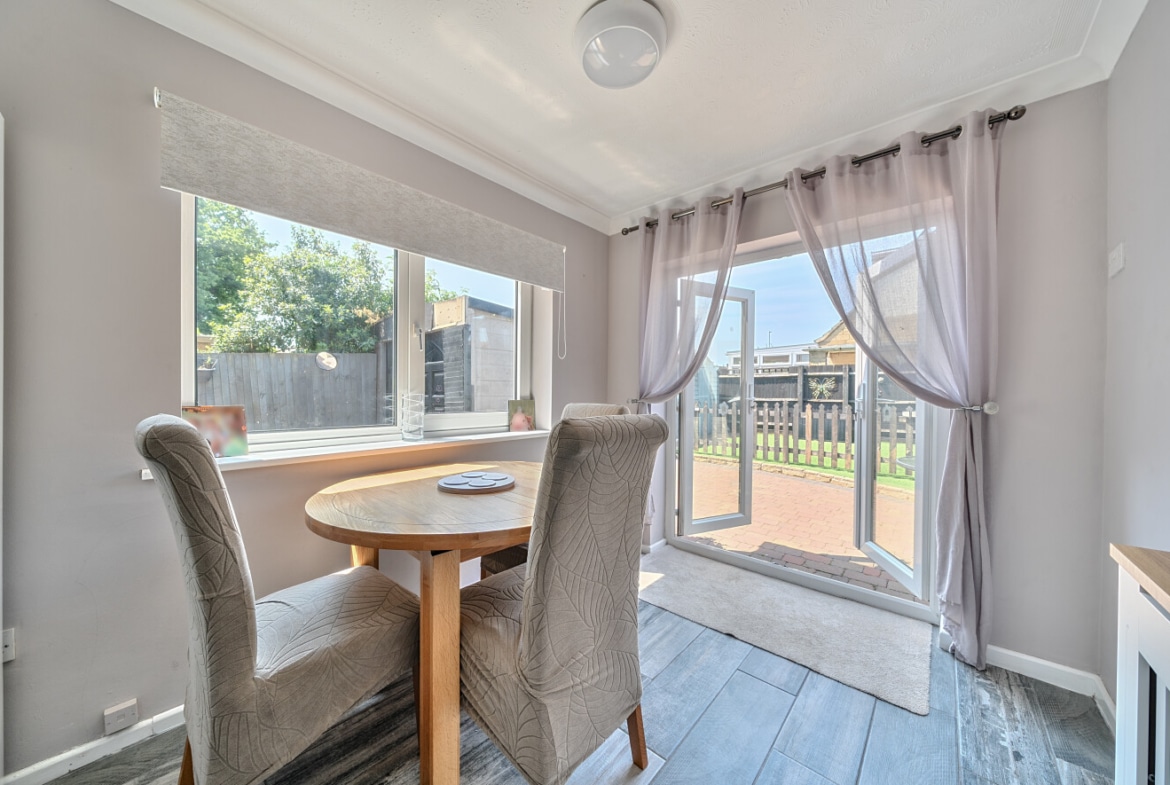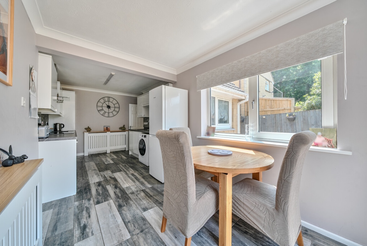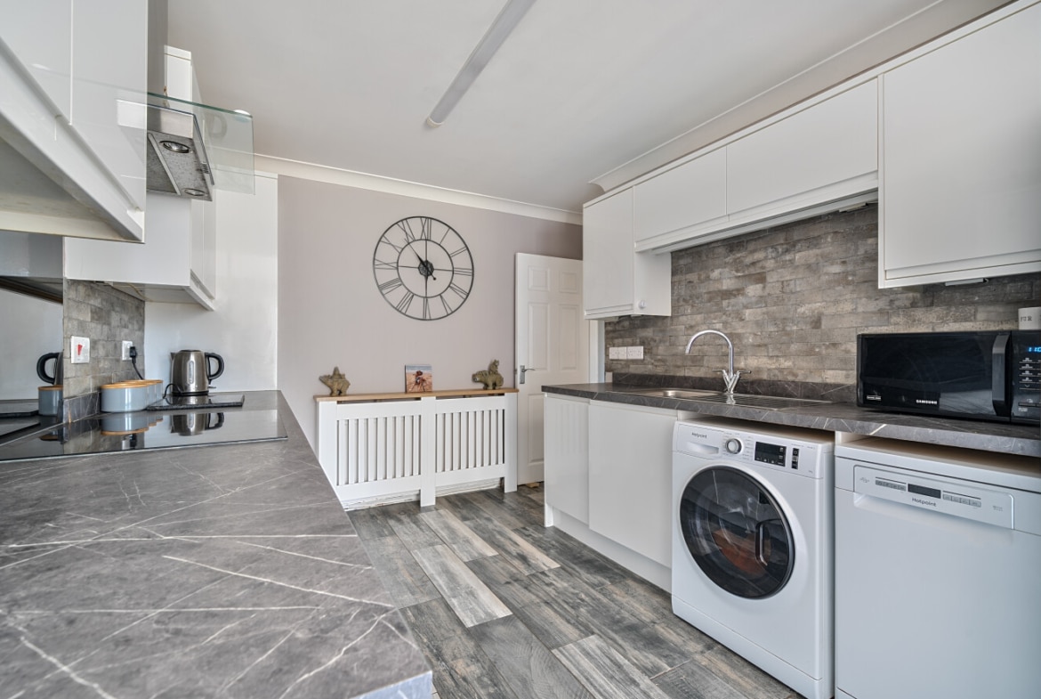 The home offers a generous lounge at the front, filled with natural light, and a spacious modern kitchen/diner at the rear, opening directly into the garden — ideal for entertaining or family meals. The kitchen features ample worktop space and room for a dining table, creating a sociable and functional hub of the home.
