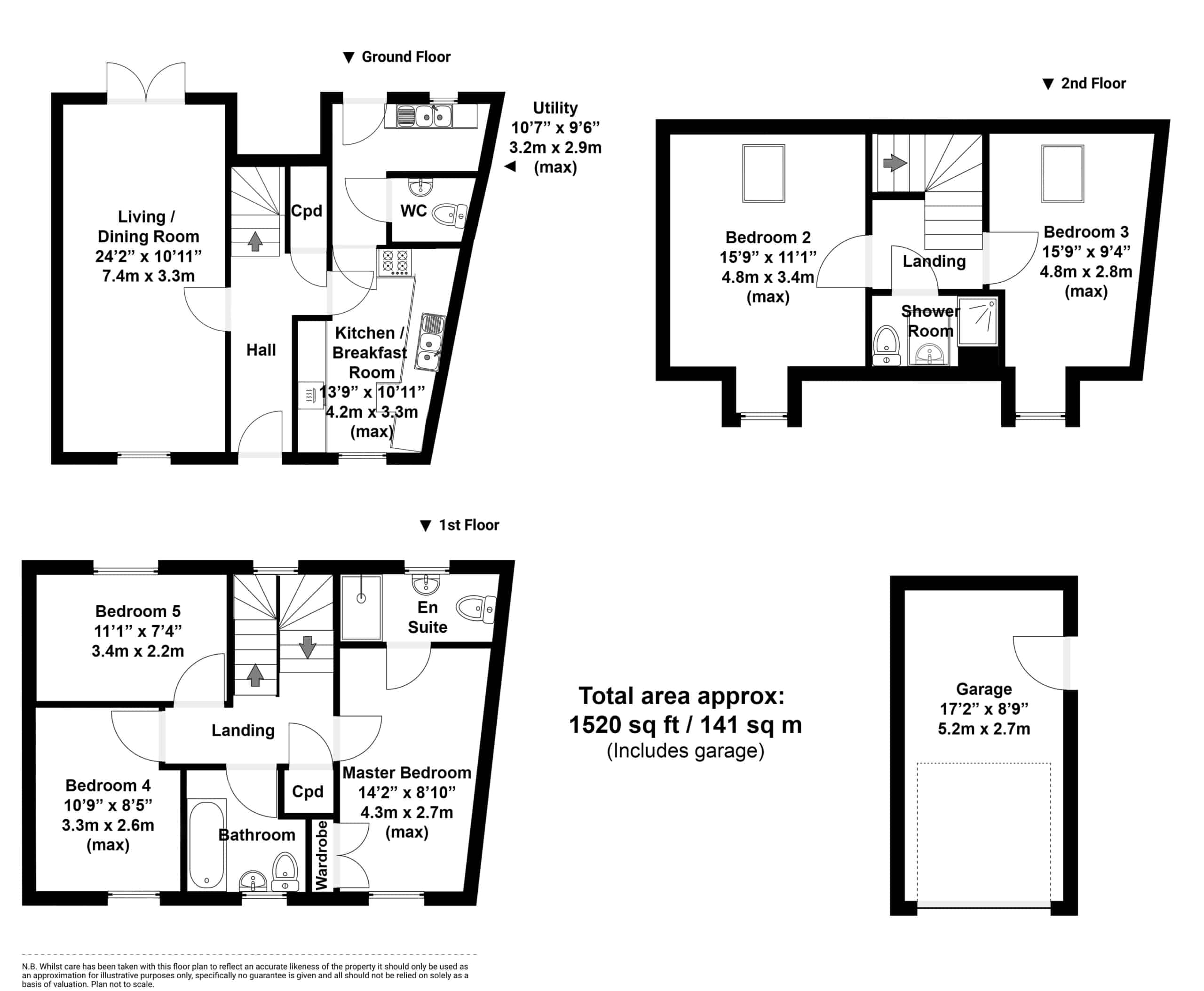 The top floor is ideal for guests or growing families, with two additional double bedrooms and a convenient shower room.