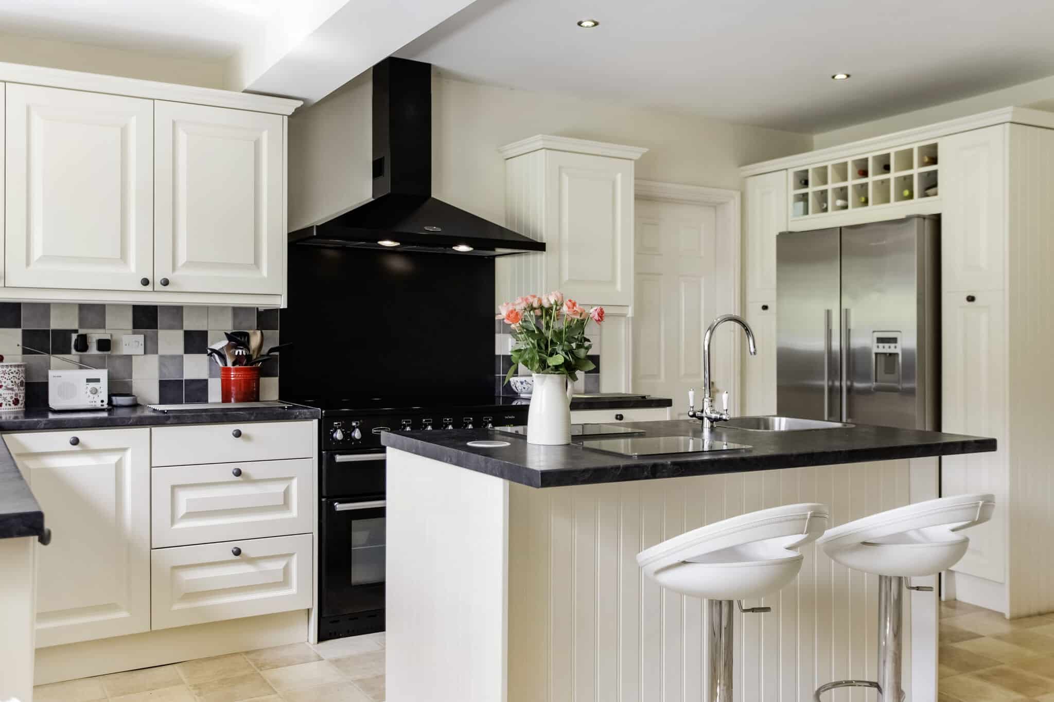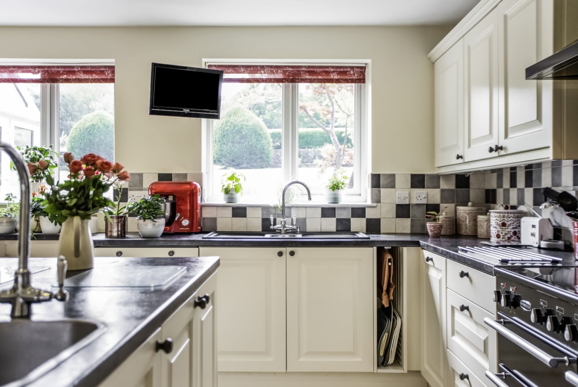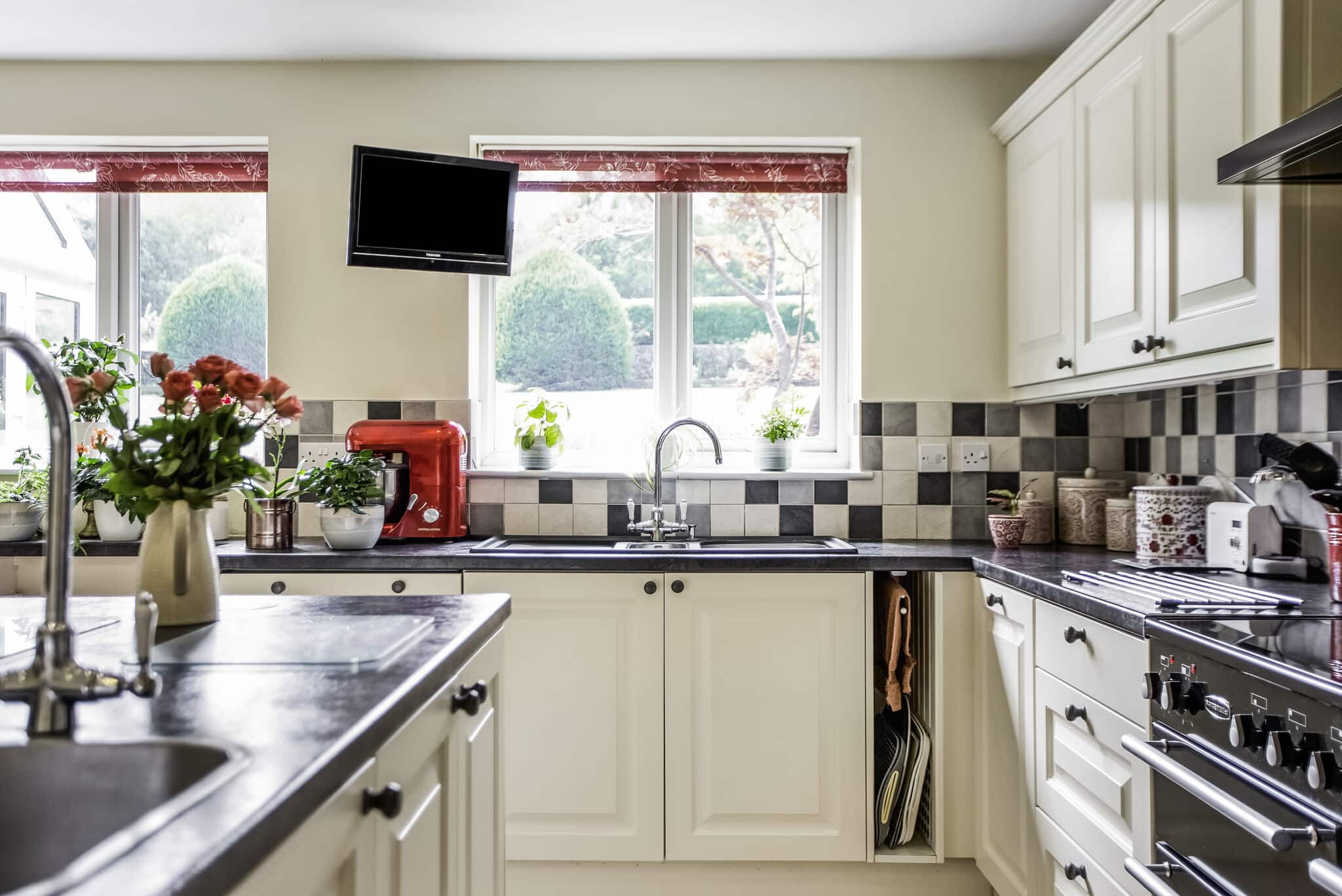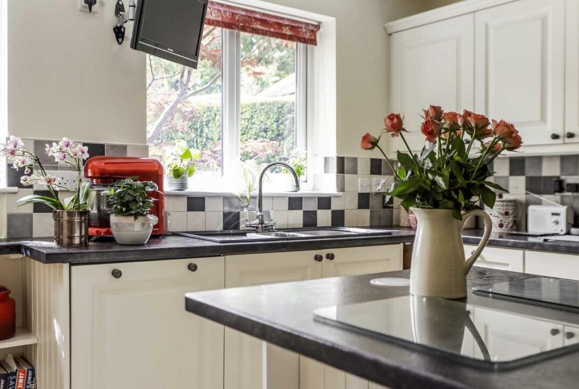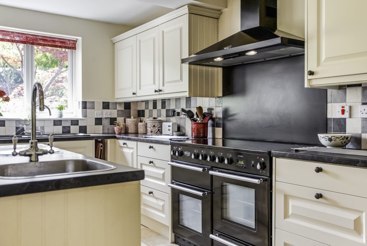An inviting entrance hall leads to the principal reception rooms. The kitchen/breakfast room is both stylish and practical, featuring a central island, an electric Rangemaster cooker, integrated appliances and generous storage, with pleasant views across the rear gardens.