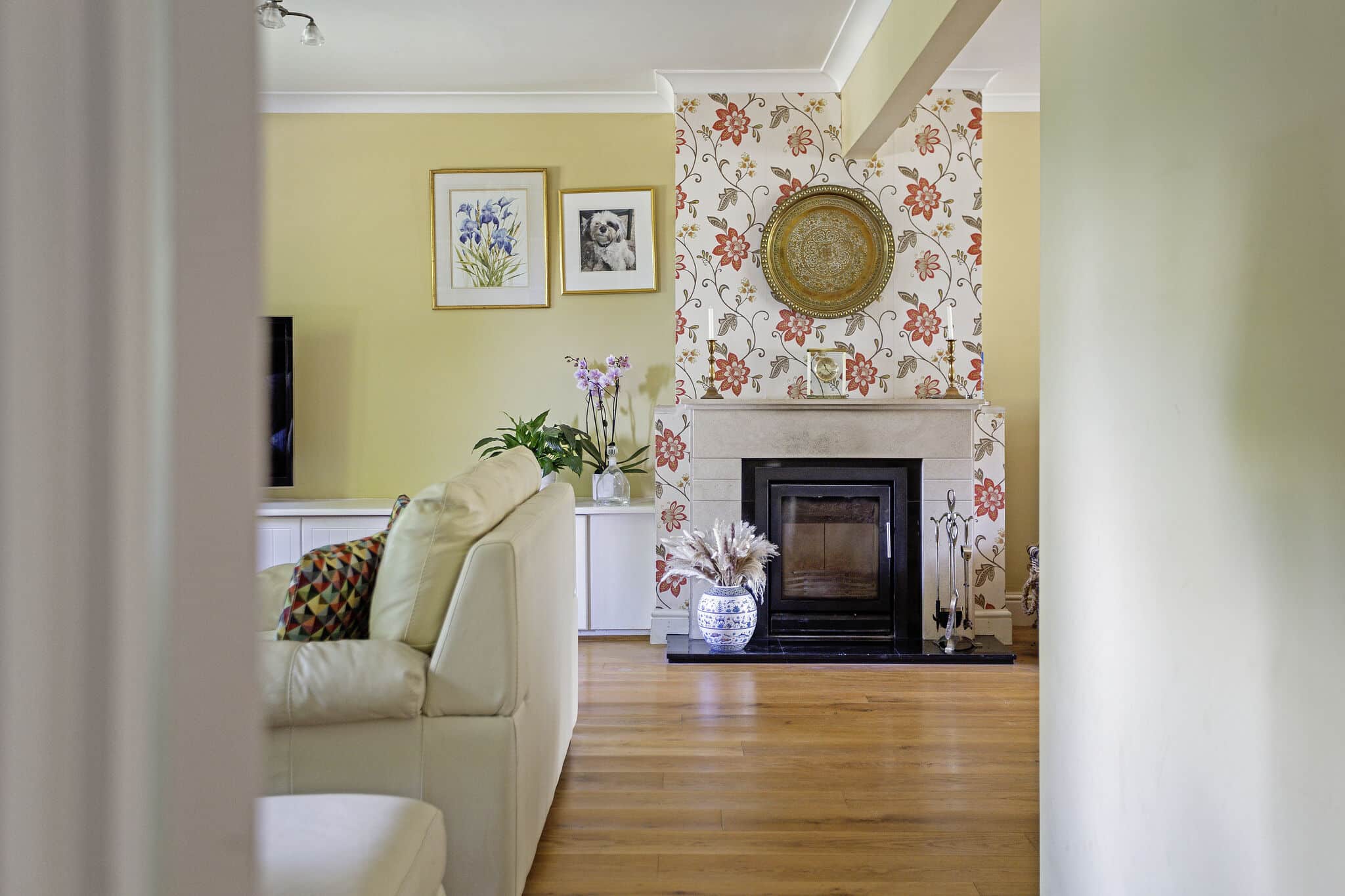 The main reception room offers a spacious living area centred around an attractive fireplace. A home office and guest cloakroom complete the ground floor.