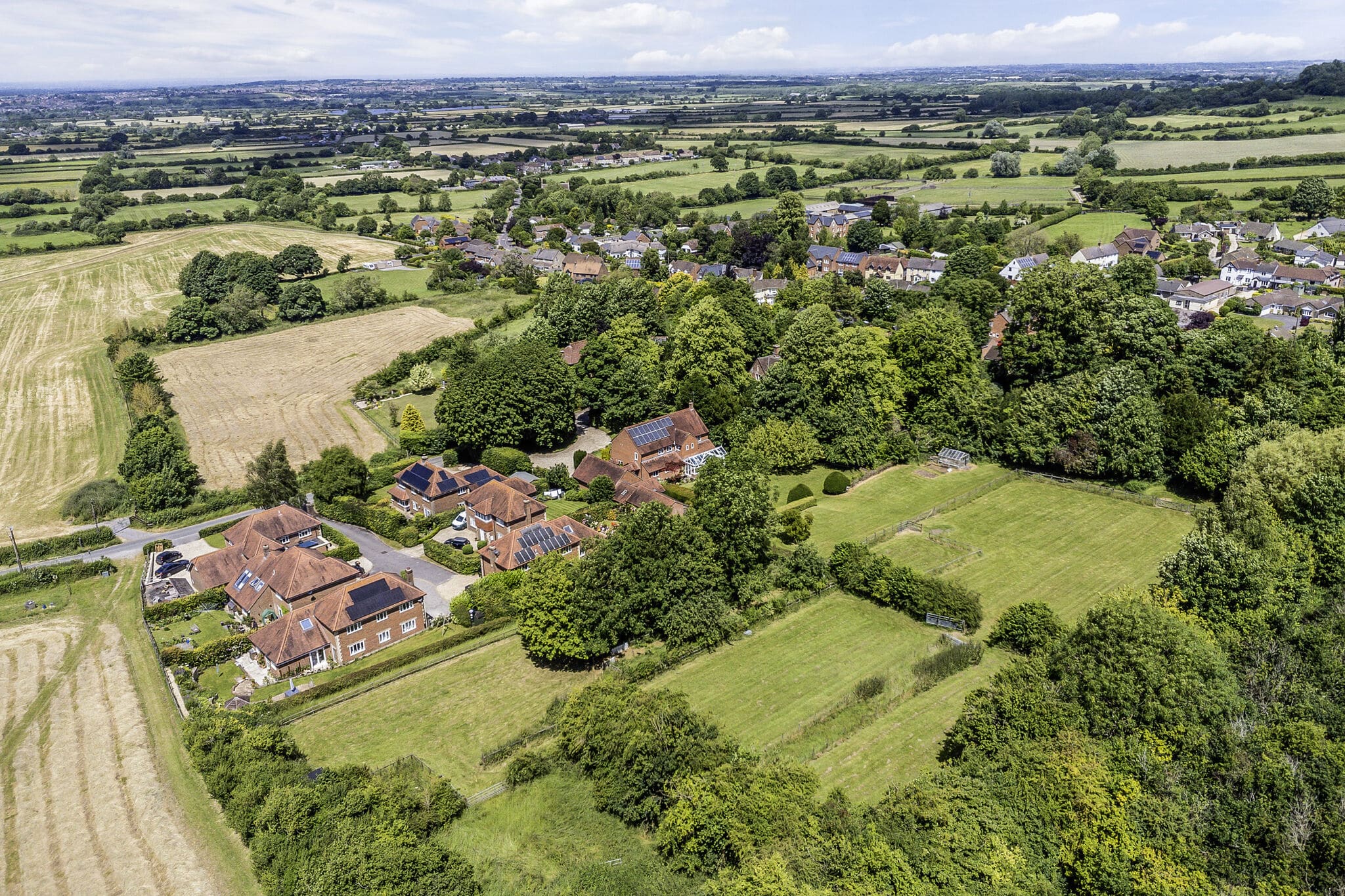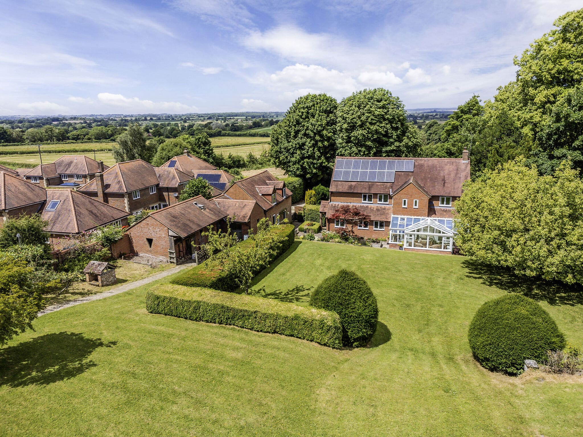 A substantial five-bedroom country home set within approximately 2.37 acres of south-facing gardens and paddocks, with stabling and potential for a self-contained annexe. Enjoying far-reaching countryside views in the popular village of Broad Town, while remaining conveniently positioned for access to London and the M4 corridor.