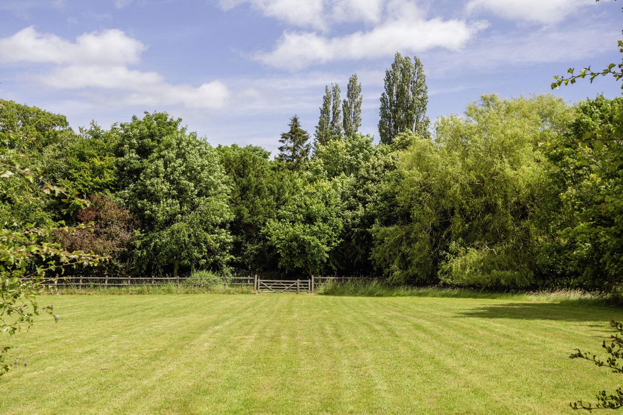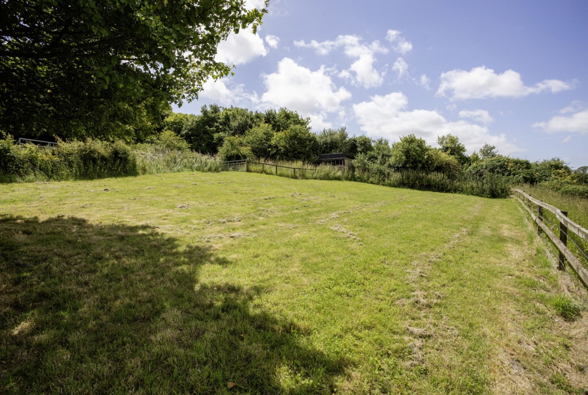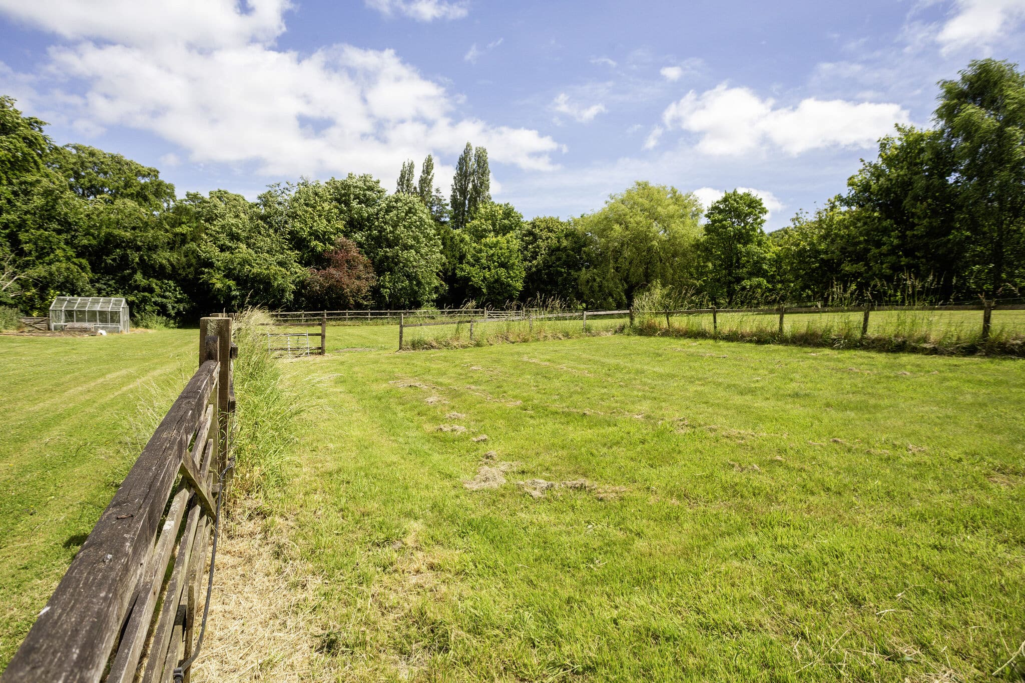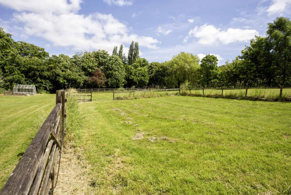The gardens include lawned areas, established planting and mature boundaries, while the paddocks enjoy open countryside views and separate vehicular access.