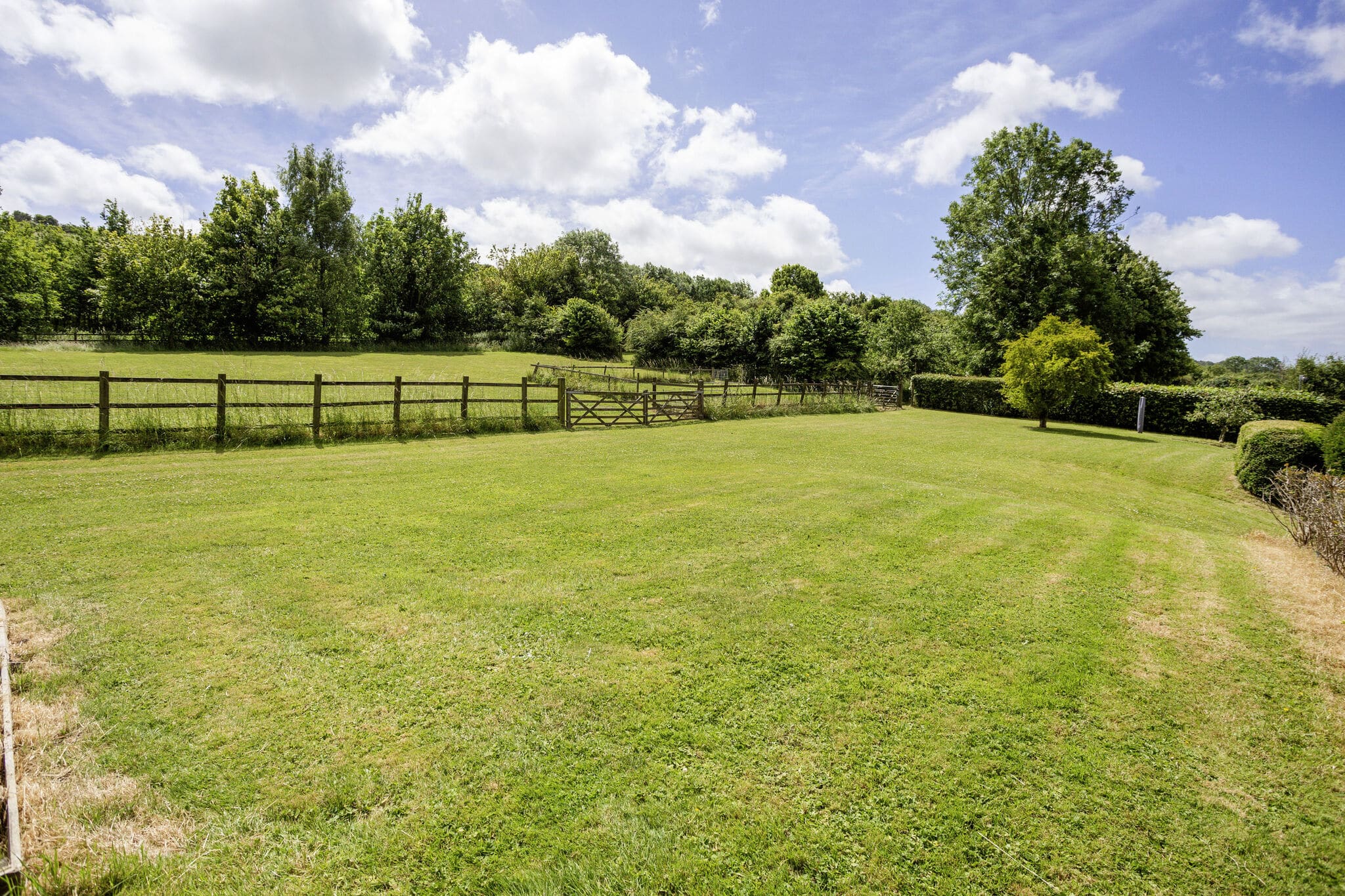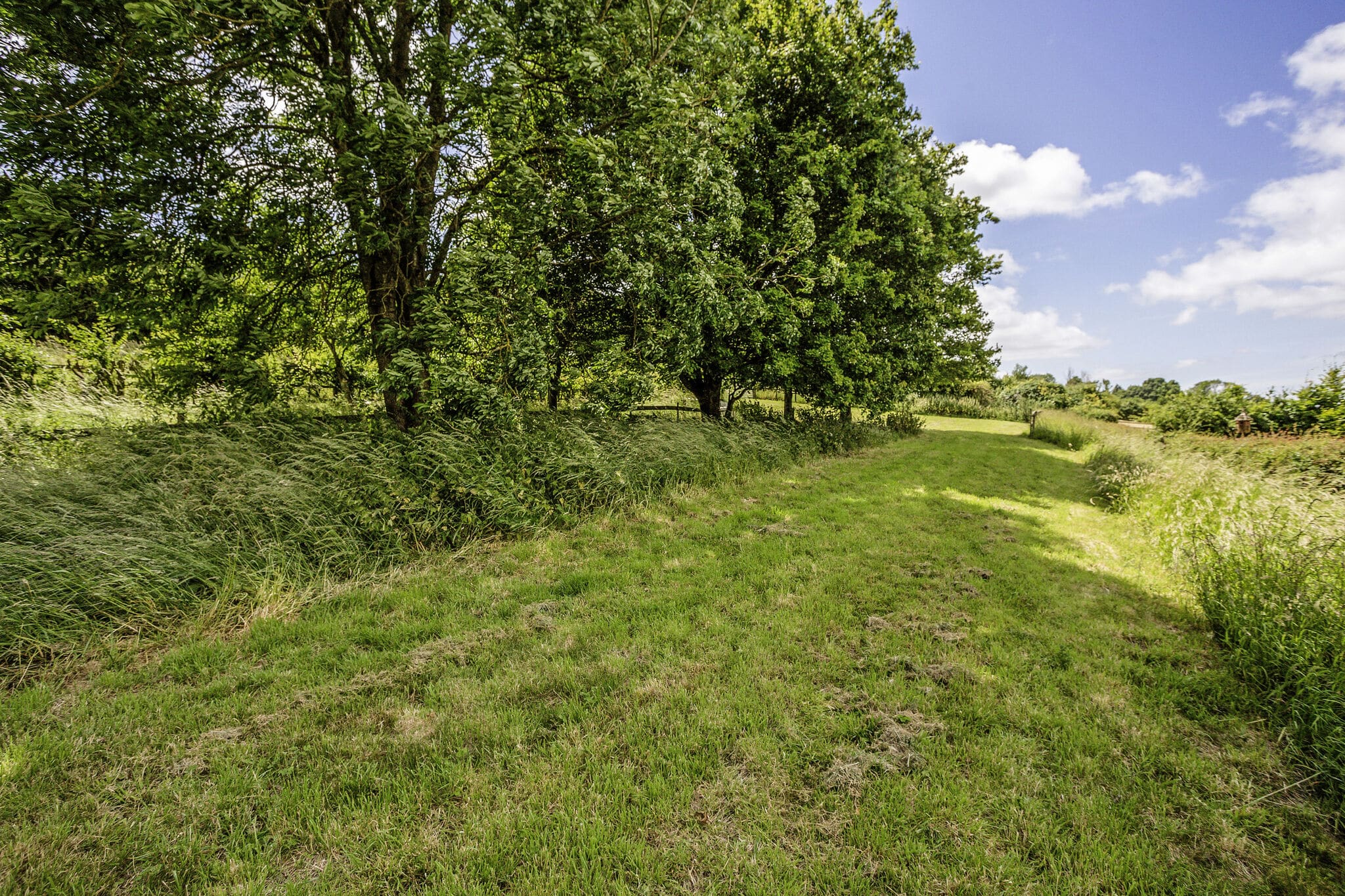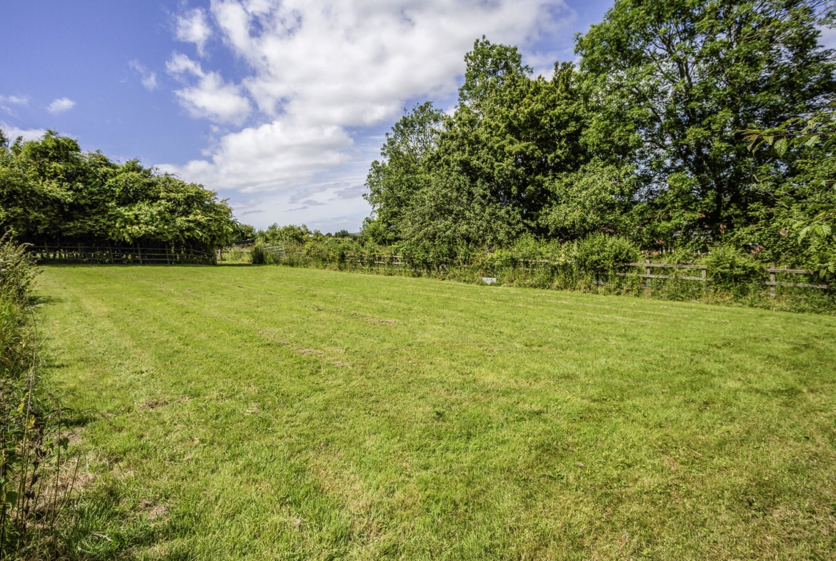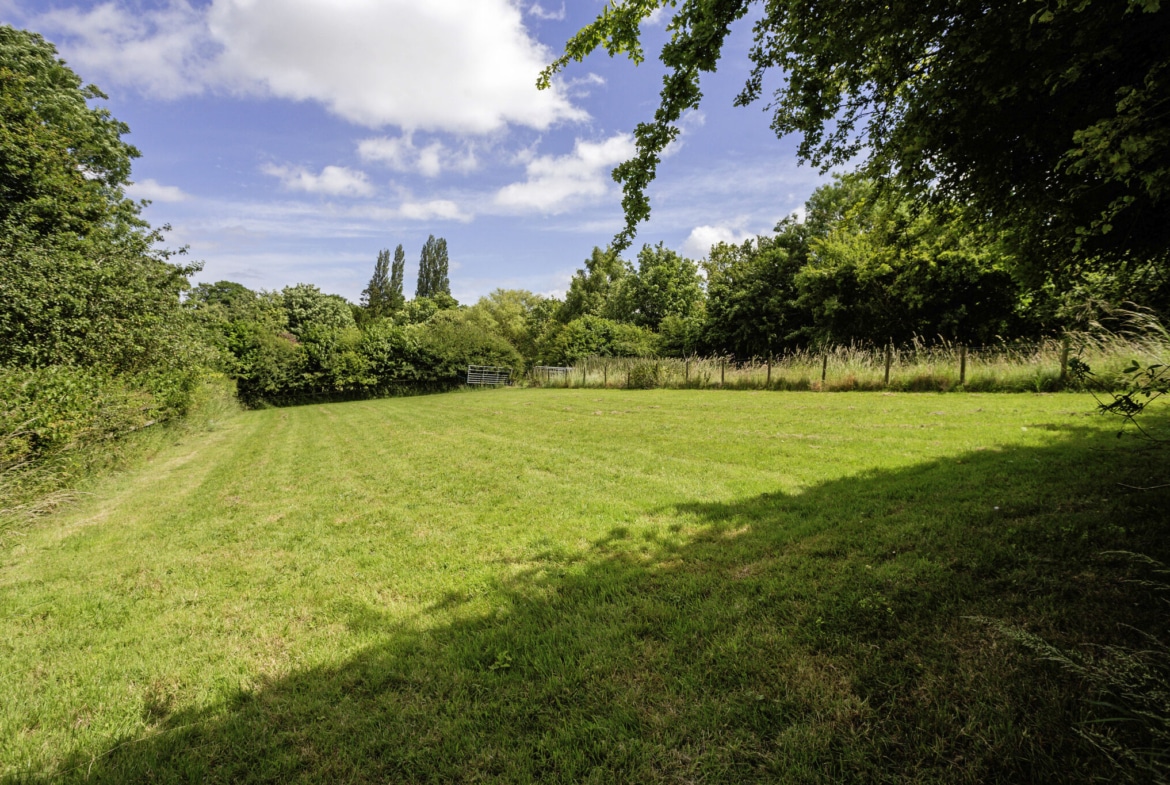 The gardens include lawned areas, established planting and mature boundaries, while the paddocks enjoy open countryside views and separate vehicular access.