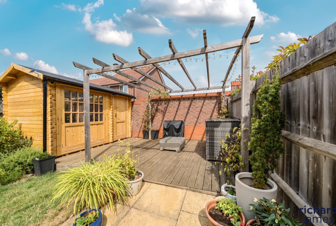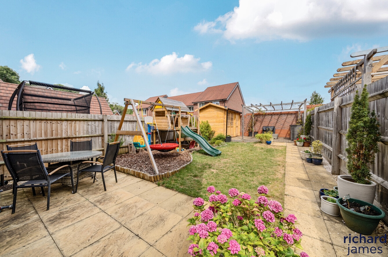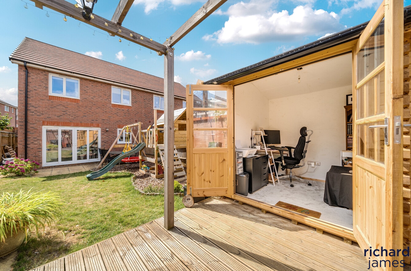 To the rear is an enclosed and private rear garden which has been improved by the current owners offering a patio seating area, leading to a good sized lawn, a children play area laid to ‘soft play bark’ plus a superb outbuilding and shed, the outbuilding offers full power, lighting and wifi making it ideal for an office.