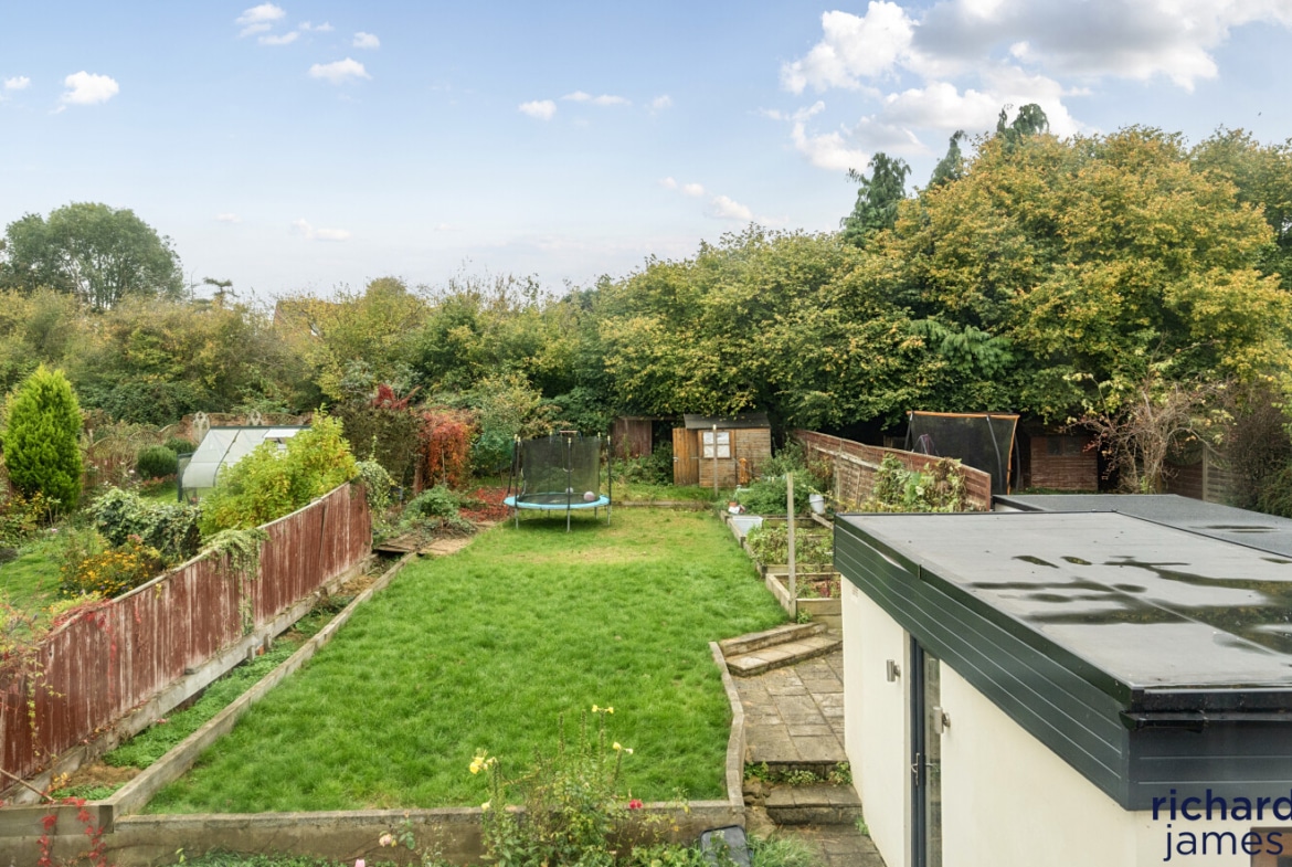 To the rear is a generous and enclosed rear garden with a patio seating and barbecue area leading to a large lawn. There is also a generous out building that could be storage, or an office or gym.