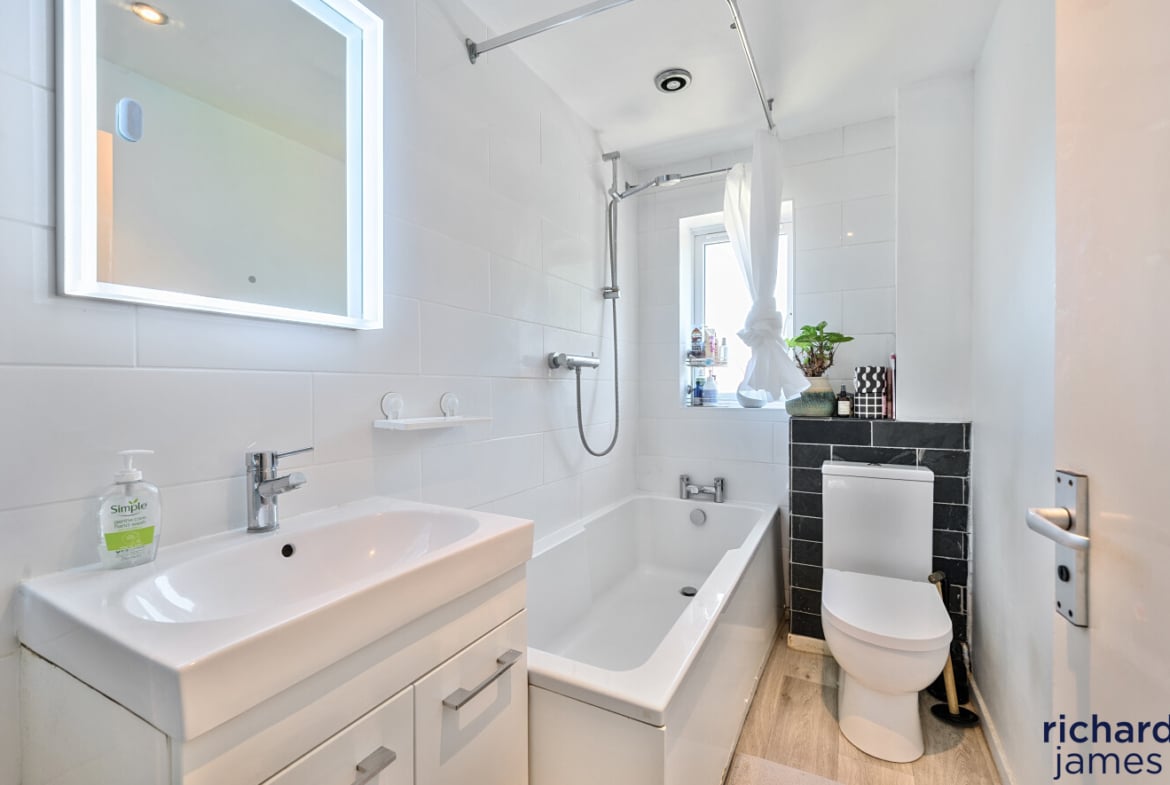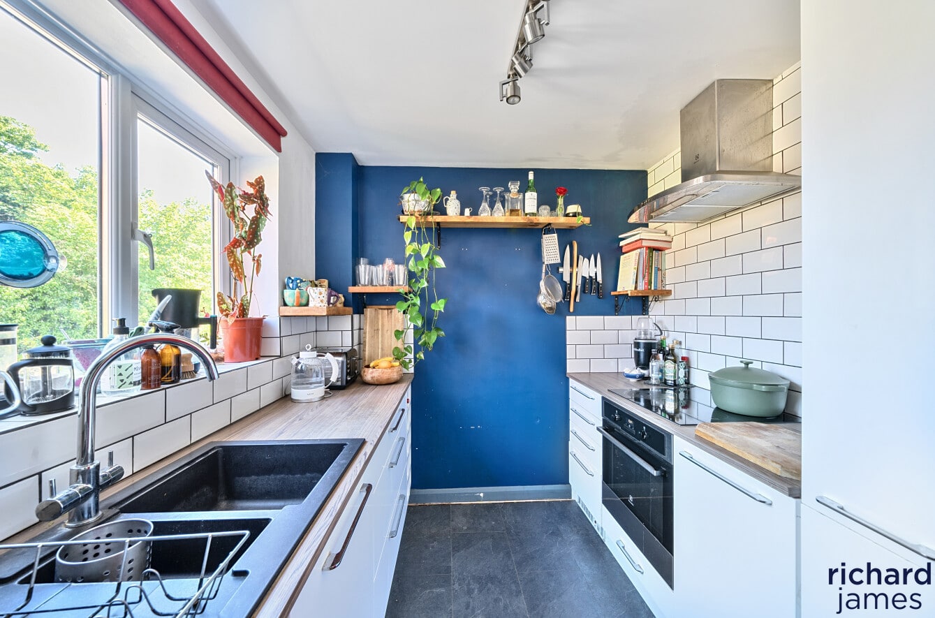 The ground floor living accommodation comprises; entrance hall, a modern kitchen and a spacious living/dining room with views and access to the rear garden.