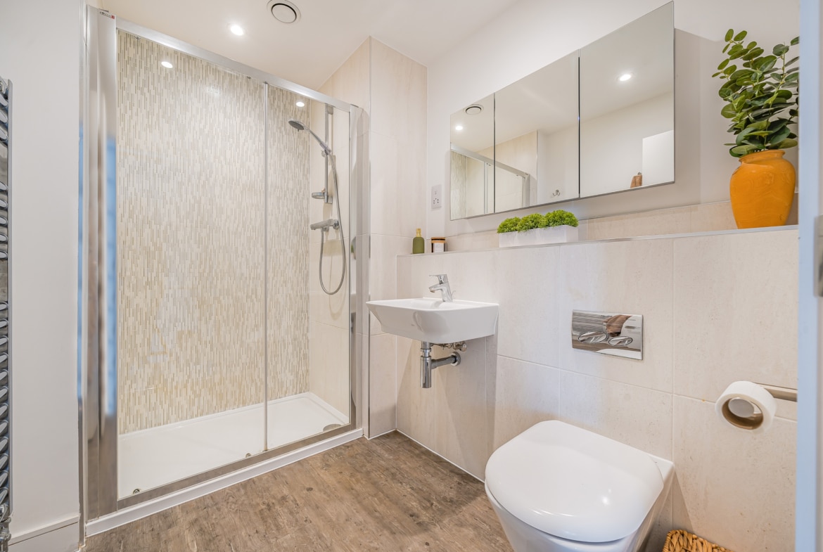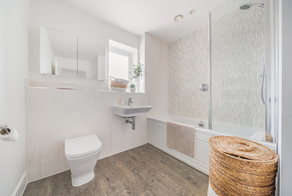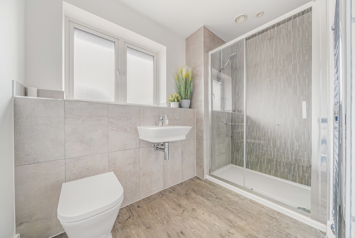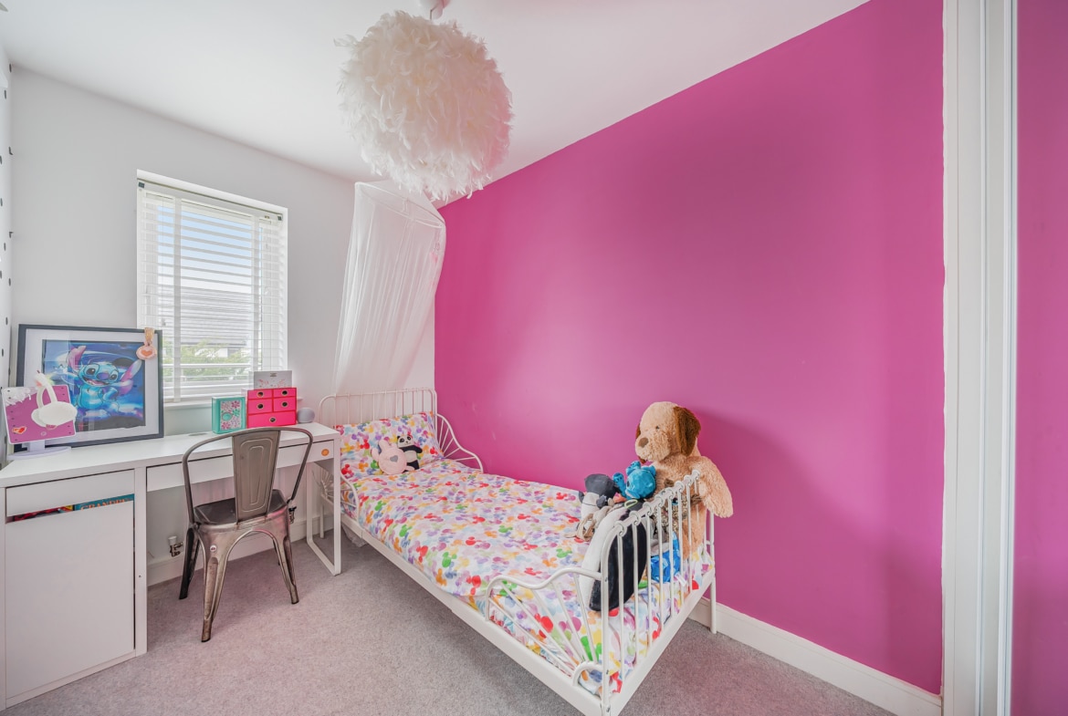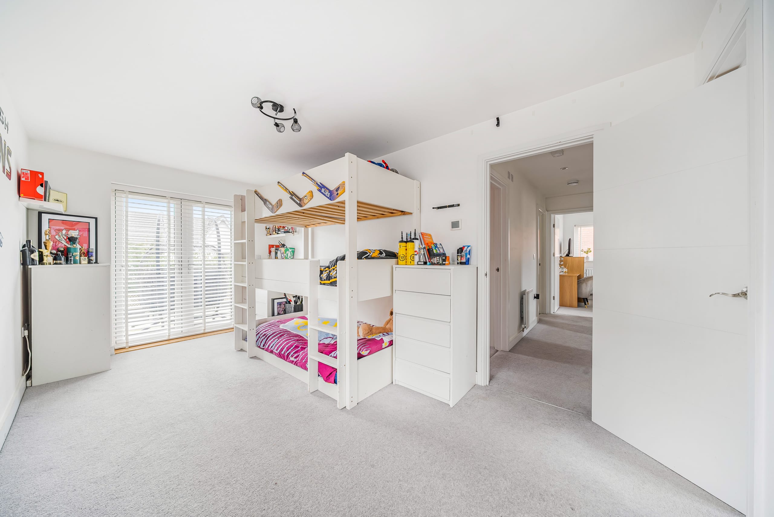 Upstairs, the master bedroom is simply stunning, boasting full-length windows, built-in wardrobes, and access to the rear balcony. Its luxurious en-suite bathroom features a double shower. Bedroom two also enjoys balcony access via French doors and benefits from its own private en-suite. Bedroom three is a spacious double, while bedroom four is a comfortable single, ideal for a child’s bedroom.