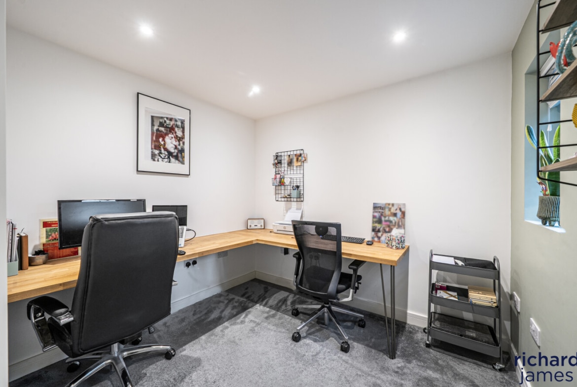The layout has been reconfigured to create a spacious three-bedroom home. However, it offers the flexibility to be converted back into a four-bedroom property, either by using the downstairs guest room as a fourth bedroom or by reinstating the original wall to easily create a box room.