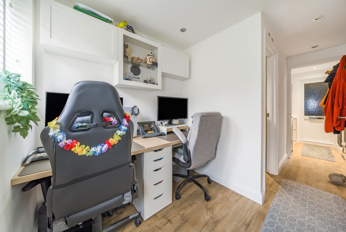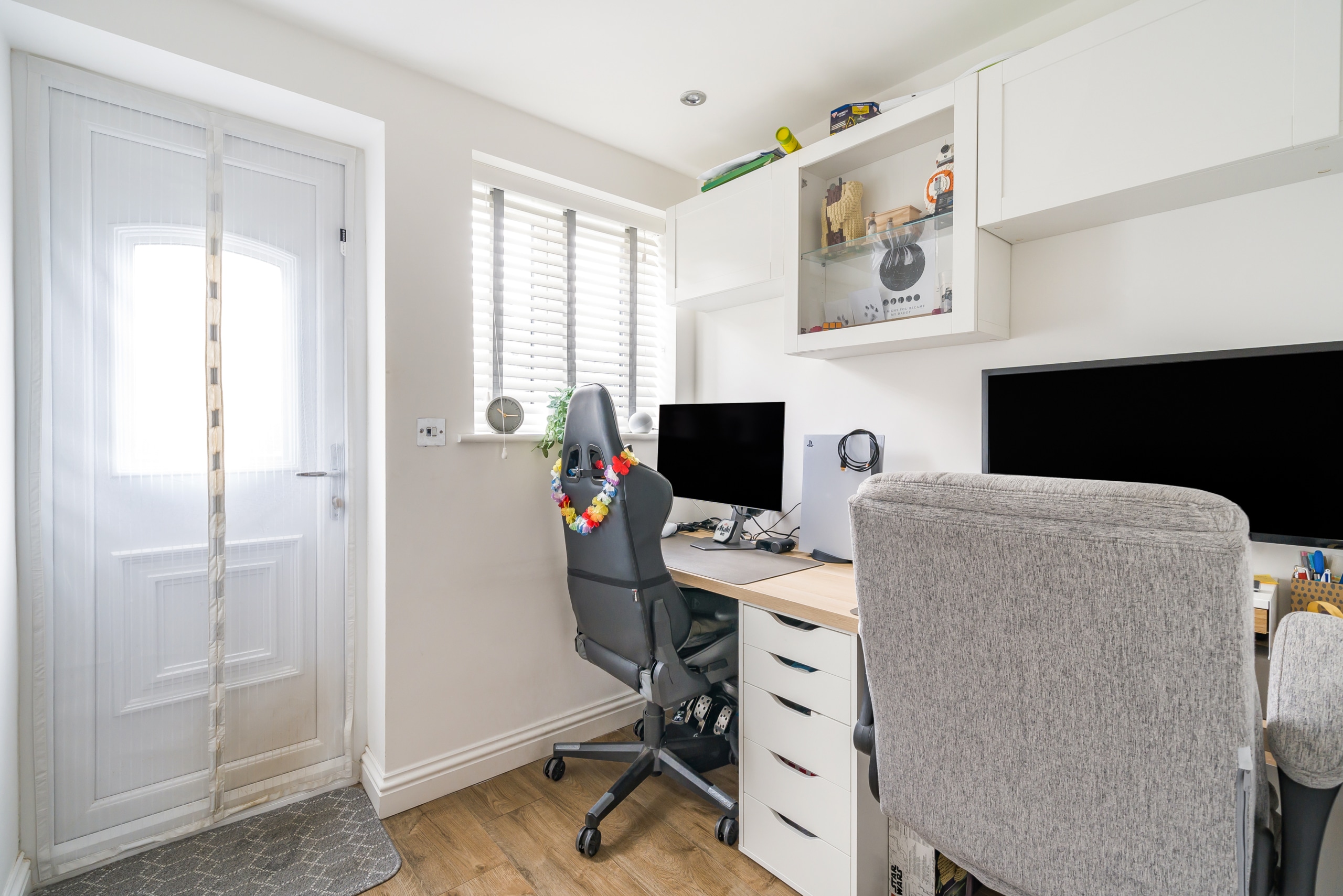 This immaculately presented home comprises of; entrance porch, cosy living room, recently fitted integrated kitchen with breakfast bar, conservatory, downstairs WC and shower room as well as a space for an office or games room. The stairs are finished with glass balustrades and solid oak handle, leading to the third bedroom, second double bedroom, generous master bedroom and family bathroom with a shower over the bathtub. The property also benefits from a low maintenance, private rear garden laid to patio and artificial lawn, a garage store space with electric roller door and spacious driveway for three vehicles.