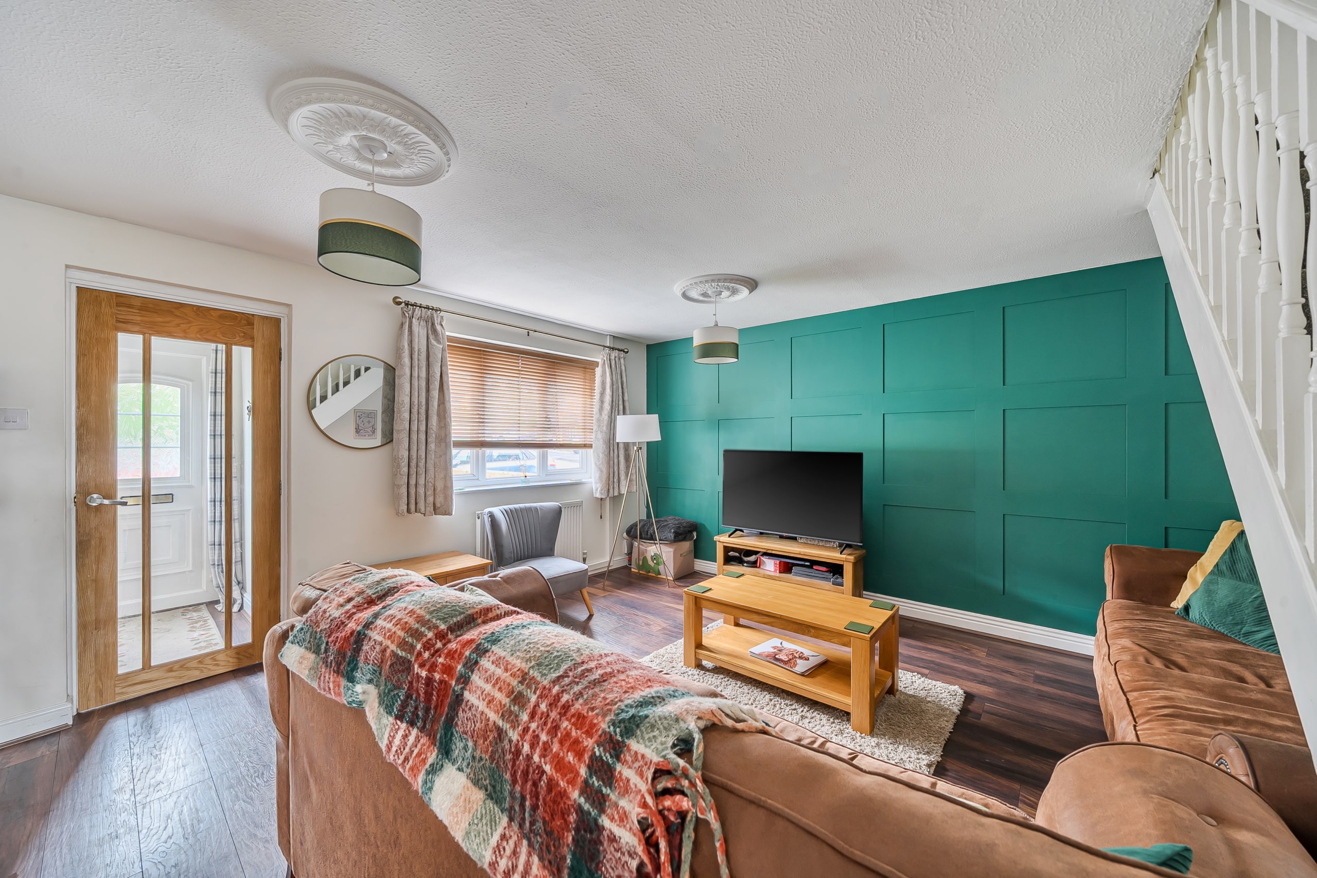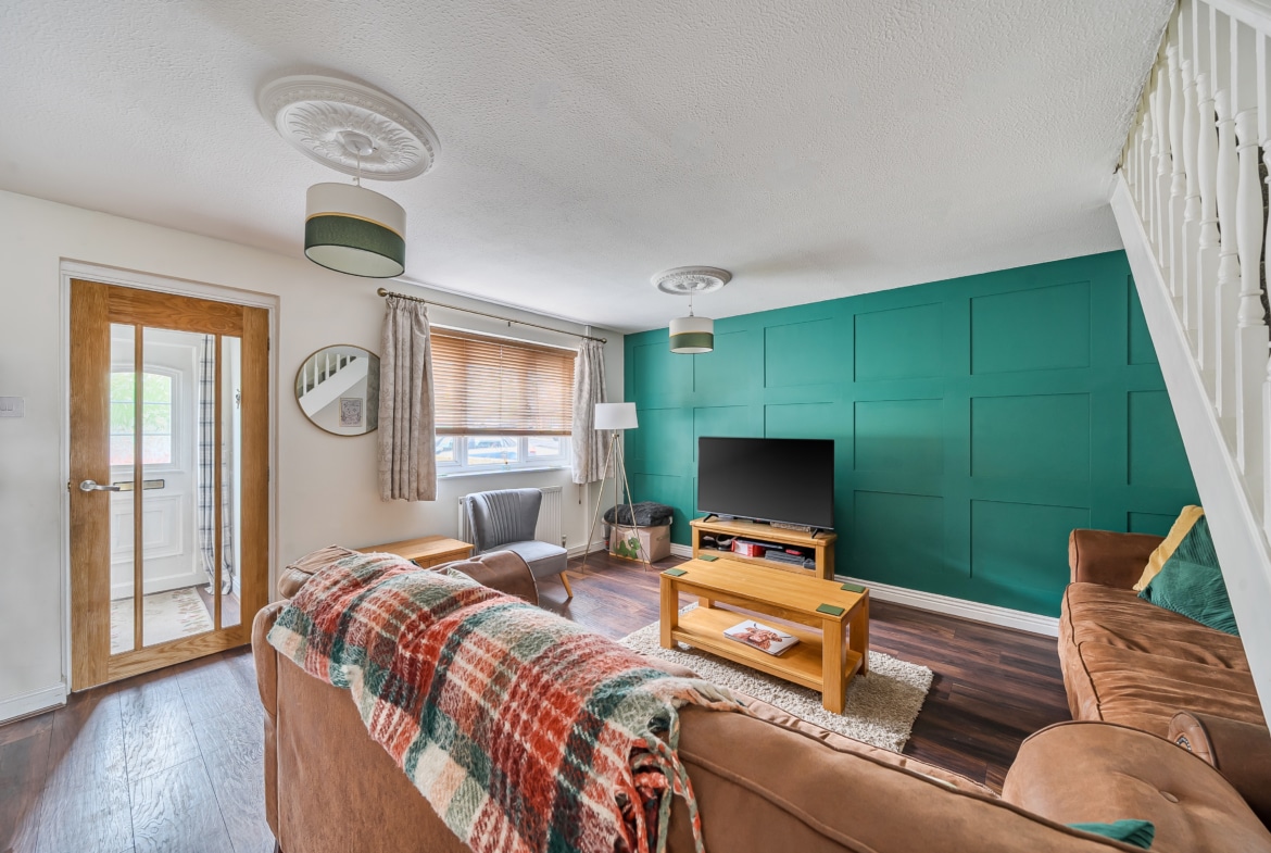 Ascending to the first floor, you will find three thoughtfully designed bedrooms. One bedrooms come with fitted wardrobes, offering ample storage solutions and ensuring a clutter-free environment. The overall layout of the home is designed to maximise comfort and functionality, making it suitable for both small families and professionals alike. The home’s interior is complemented by a well-appointed bathroom, serving the family’s needs effectively and stylishly.