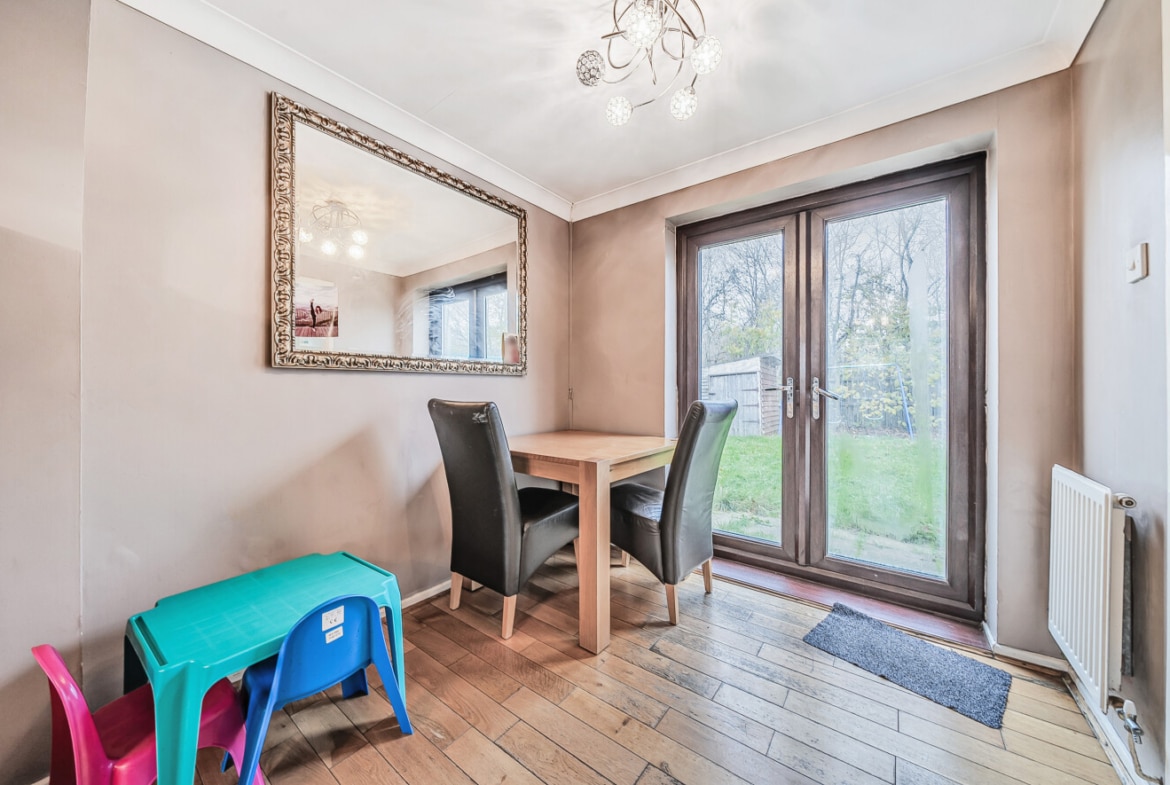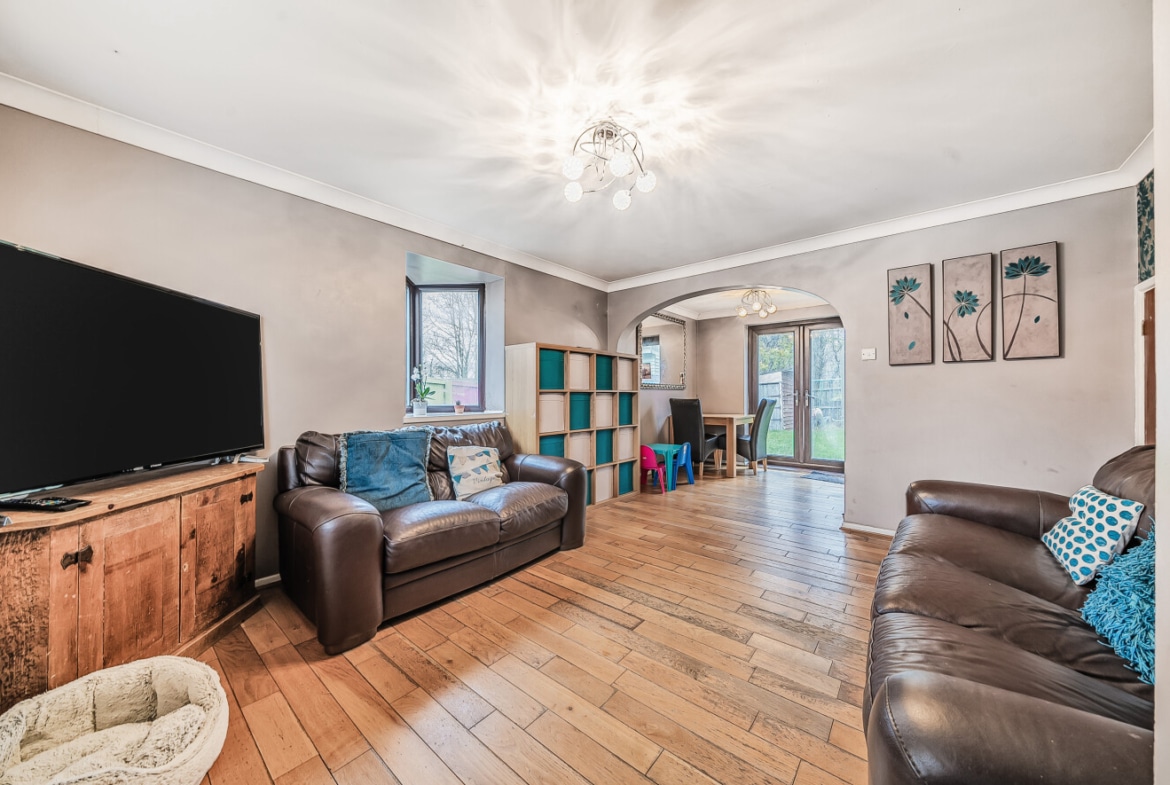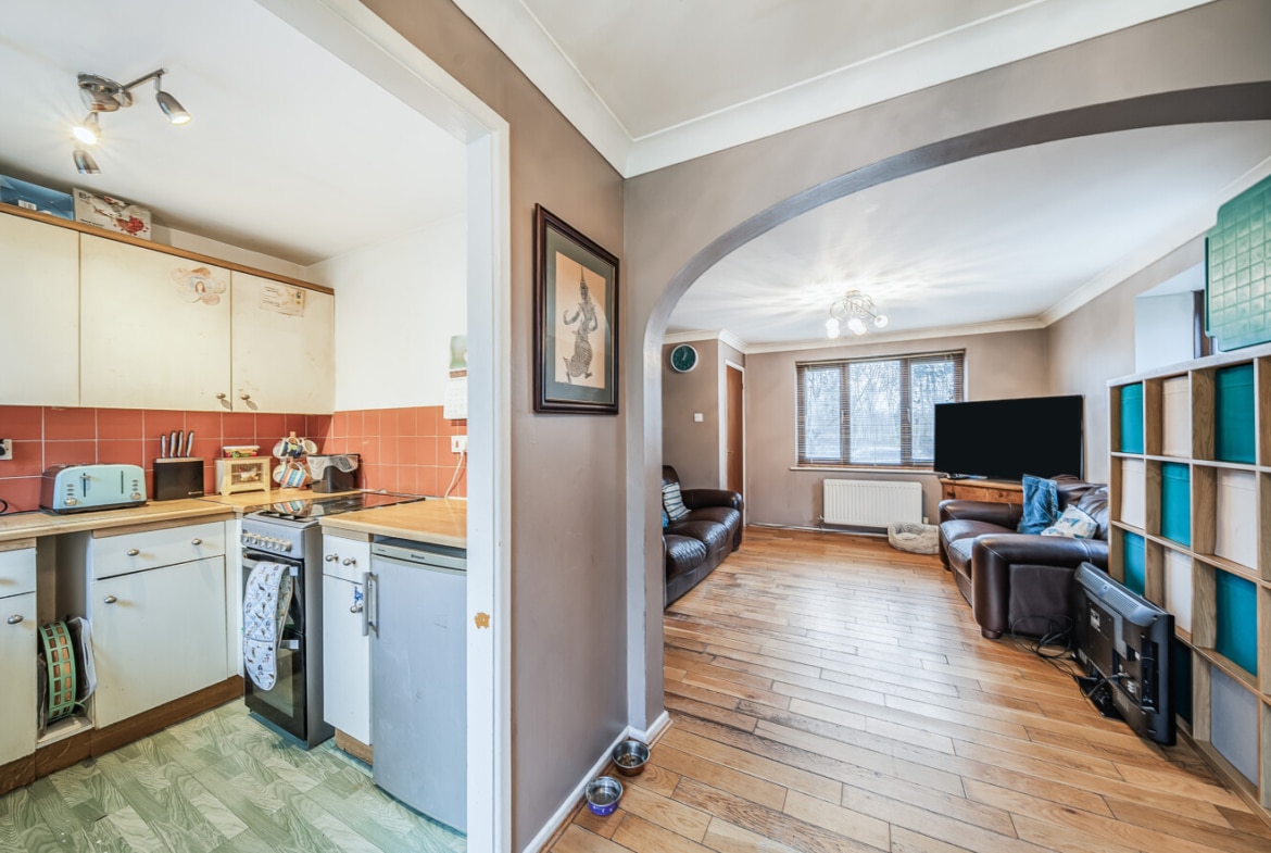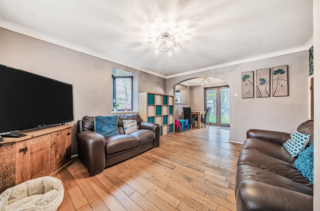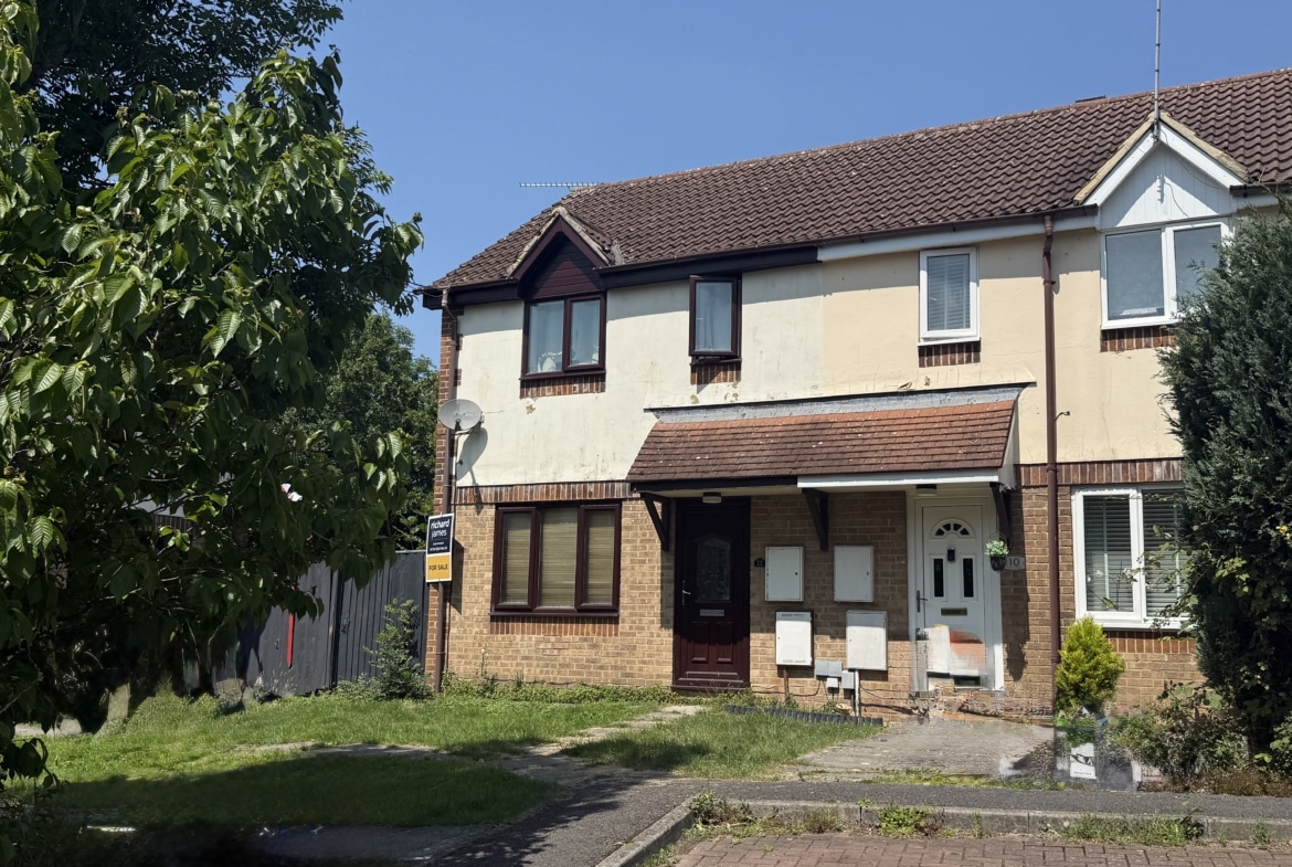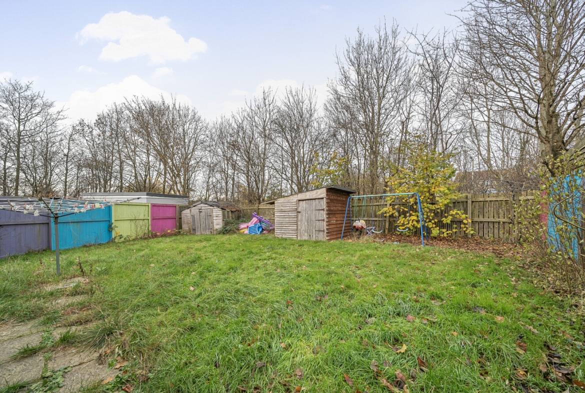 Tucked away in the corner of this popular cul-de-sac in Sparcells, this spacious Hannick built home occupies a much larger than average rear and side garden. This 2 bedrooms end terrace home has scope for improvement and extension, subject to the relevant consents.