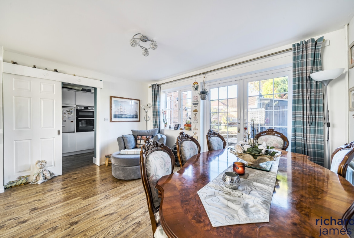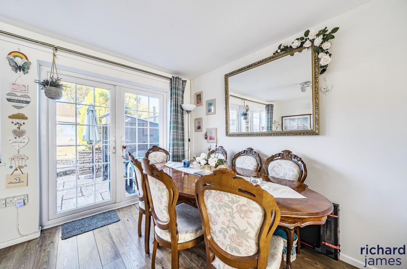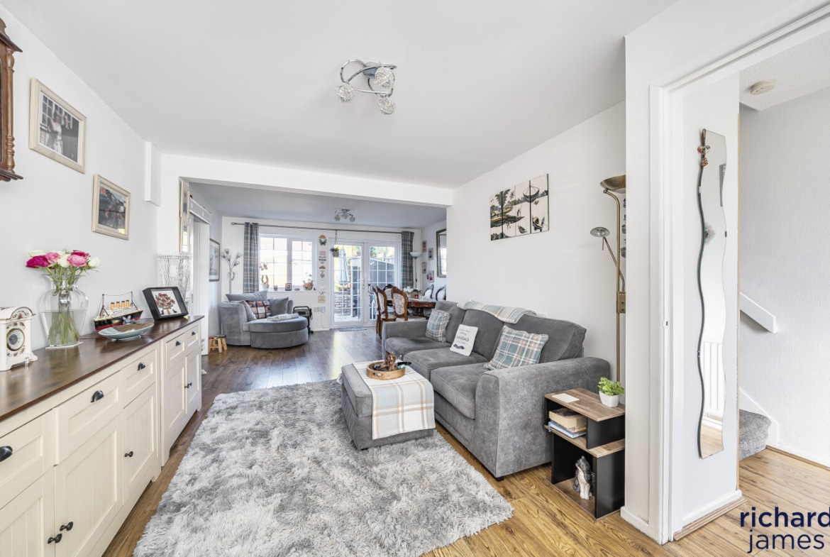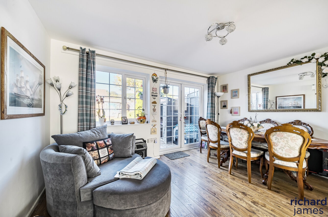 Externally, the property benefits from a private driveway with space for two or more vehicles, alongside a garage equipped with power and light, perfect for storage or as a workshop. The enclosed rear garden provides a secure haven for children and pets, or simply a peaceful space to unwind during warmer months. Residents will appreciate the convenience of this location, with local amenities including a variety of schools, shops, restaurants, parks, a bowling alley, and a cinema, all within easy reach. This delightful family home affords a rare opportunity to enjoy both a tranquil setting and vibrant community living.
