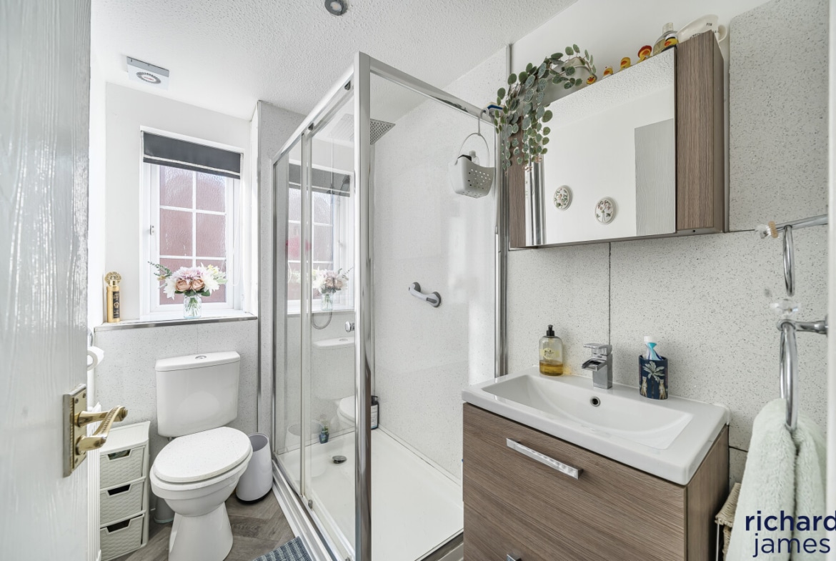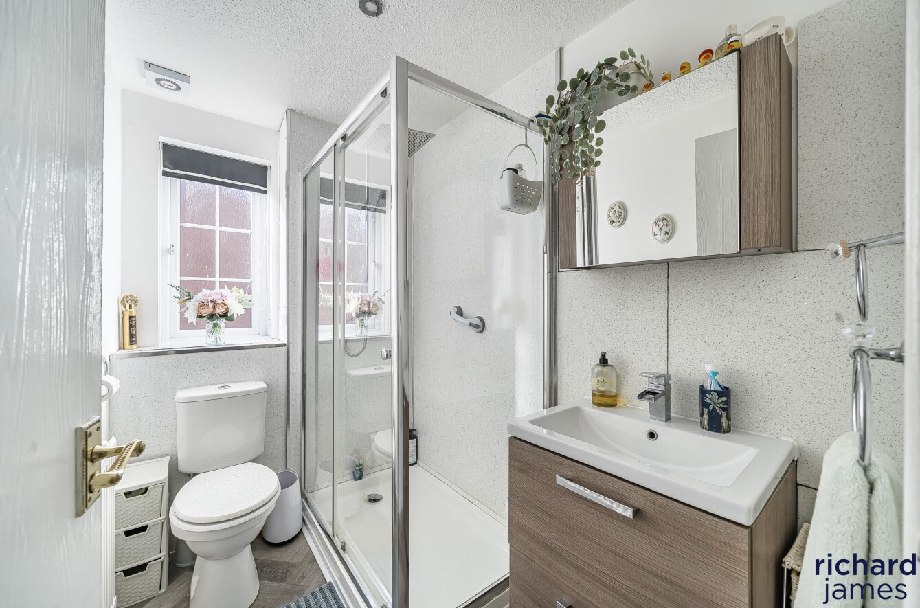 Upstairs, the accommodation comprises two generously sized double bedrooms, each offering a comfortable retreat and with ample space for wardrobes. Additionally, a well-proportioned single bedroom serves as an ideal nursery, home office, or guest room. The contemporary shower room offers practicality and style, ensuring a refreshing start to each day.