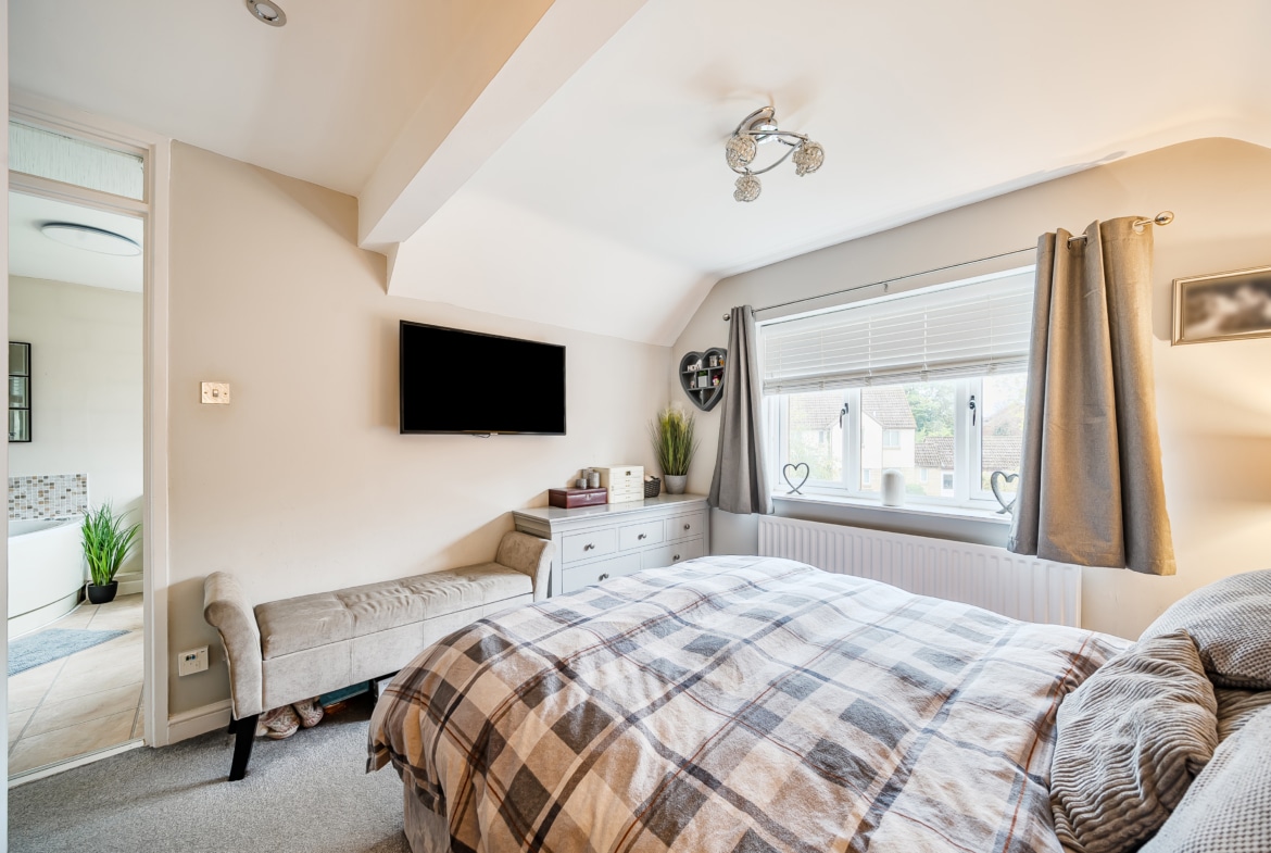 Upstairs, there are four well-proportioned bedrooms, including a spacious principal bedroom with four-piece ensuite with corner bath, alongside a modern family bathroom. All four bedrooms benefit from built-in wardrobes/storage.