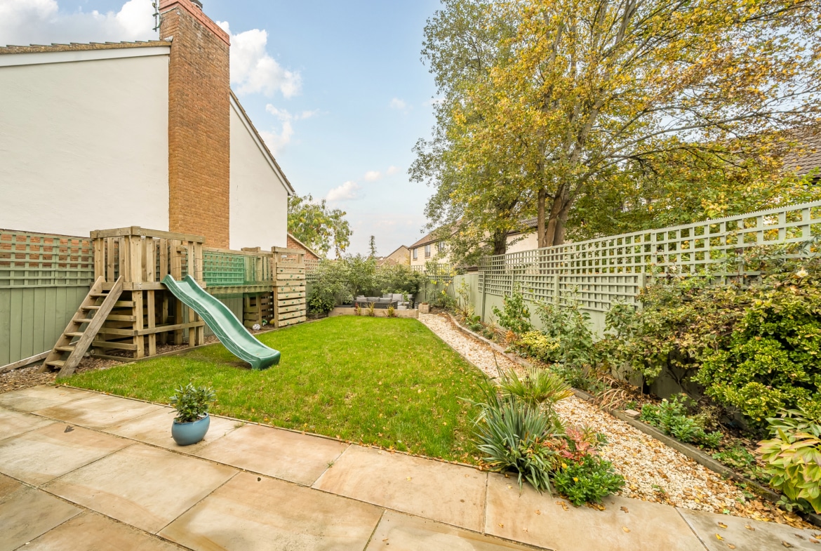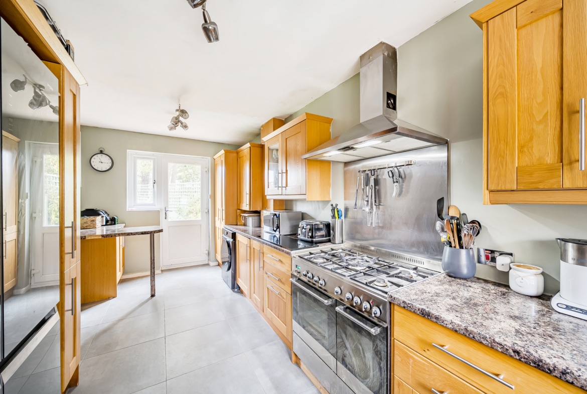 Outside, the private rear garden is a true highlight, offering two delightful seating areas, a large patio, and a lawn bordered by mature shrubs – perfect for outdoor dining and summer gatherings. The detached double garage includes a personal rear door for easy access, and driveway parking for two or more cars completes this excellent family home.