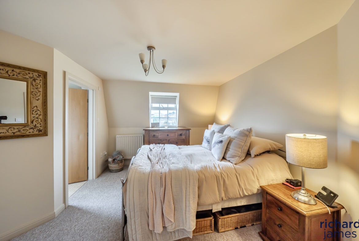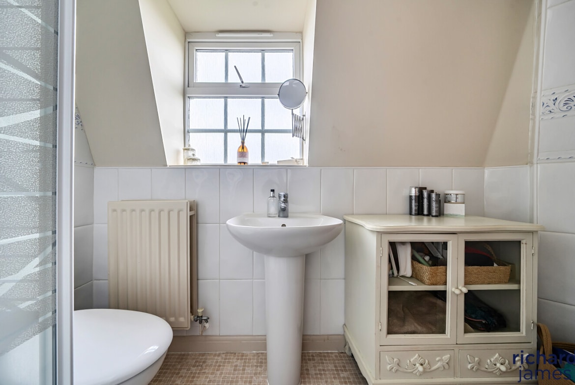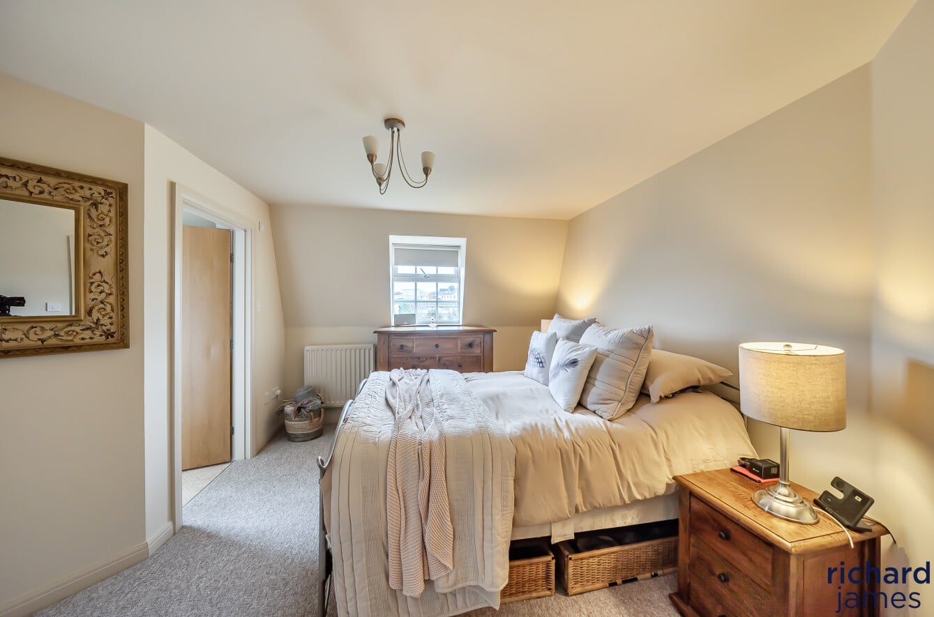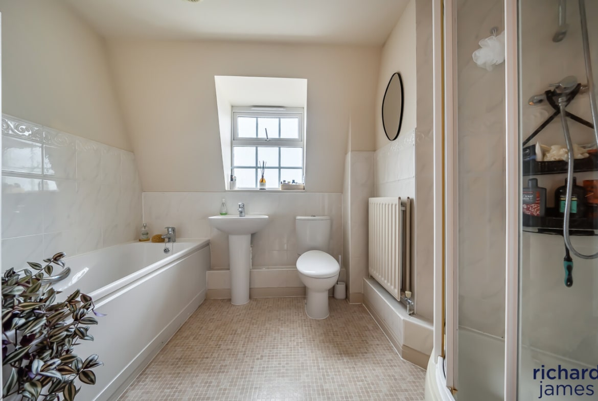 Bedroom one is a comfortable double with fitted wardrobes and a modern en-suite shower room, offering a private and peaceful retreat. Bedroom two is another generous double with built-in wardrobes, ideal as a second bedroom, home office or hobby space. The main bathroom is accessed from the hallway and features a separate bath and stand-alone shower cubicle, WC, hand basin and an airing cupboard for additional storage.