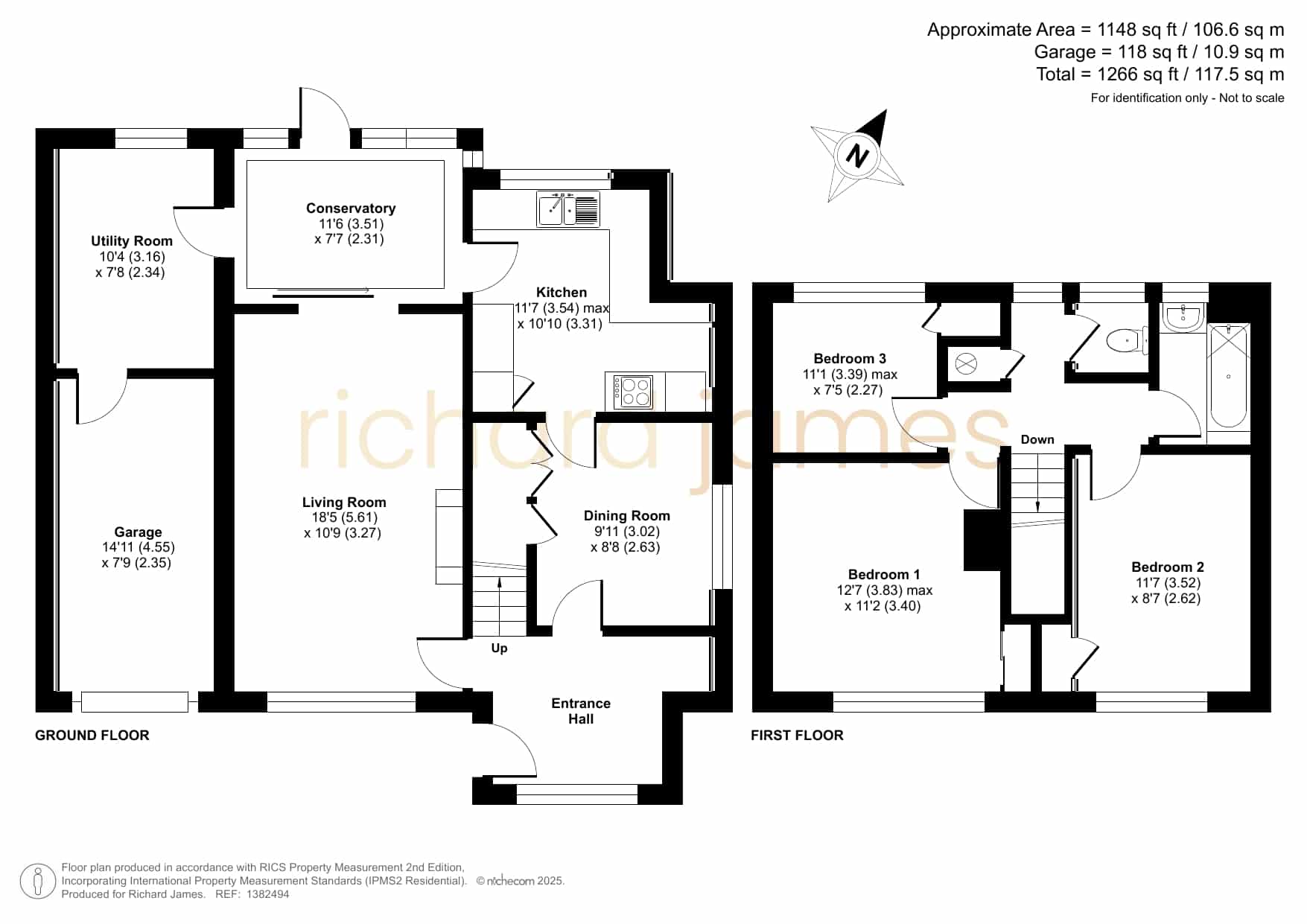 The ground floor comprises an inviting entrance hall, spacious living room, kitchen, utility room, and a separate dining room. Upstairs, there are three well-proportioned bedrooms, a family bathroom, and an additional cloakroom.