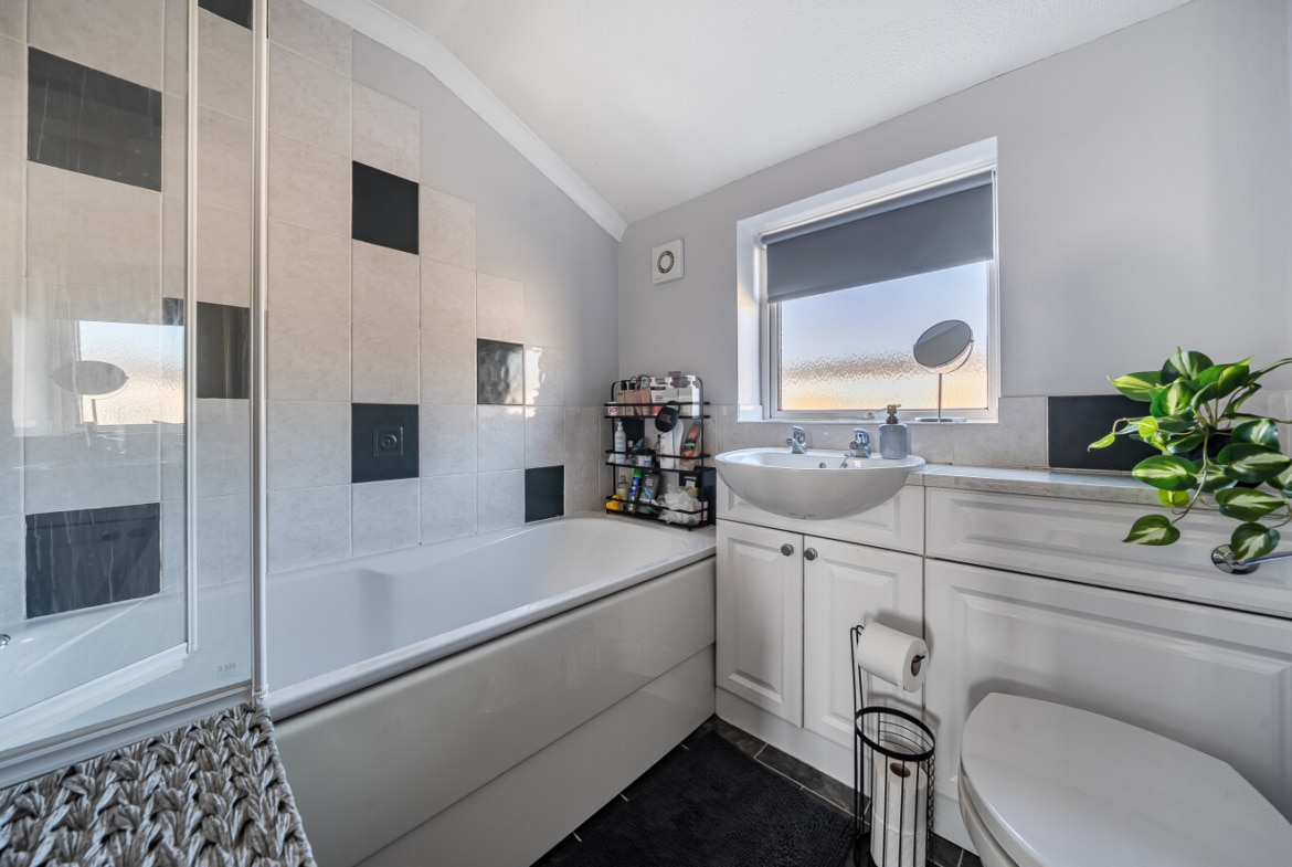 Upstairs, the home offers two generous double bedrooms, both bright and airy, along with a versatile third bedroom that could be used as a child’s room, home office or guest space. The first floor is completed by a modern family bathroom.