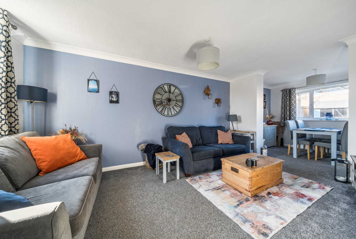 The property benefits from a driveway and a handy garage with internal access, adding both convenience and useful storage. You enter the home through a welcoming porch, which leads into a bright and open reception room, a versatile space perfect for both lounging and dining.