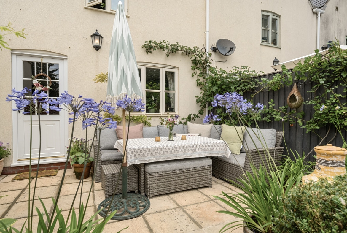 Outside, the property benefits from an private, enclosed rear garden that has been thoughtfully landscaped and well stocked with mature plants. A timber-built garage provides additional storage or workshop space.