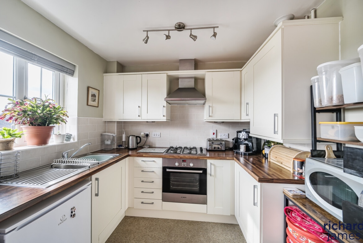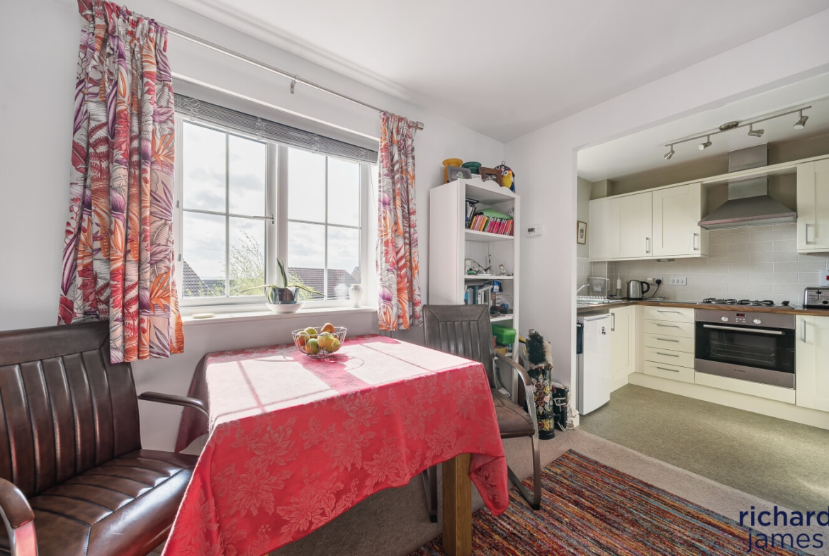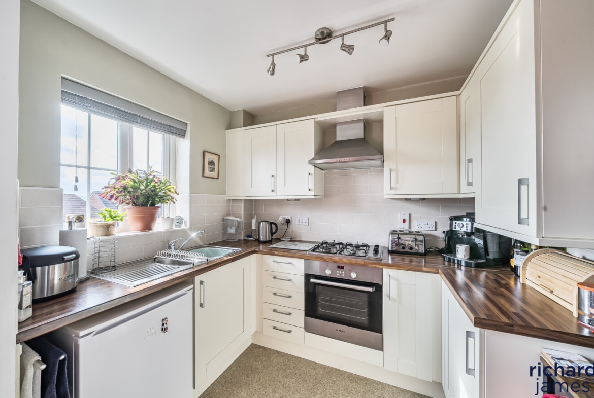 This attractive home features a garage with internal access, driveway parking, and a useful under-stair utility cupboard. The main living space includes a bright and spacious lounge/diner, a stylish kitchen fitted with an integrated oven and gas hob, two well-proportioned bedrooms, and a modern bathroom.