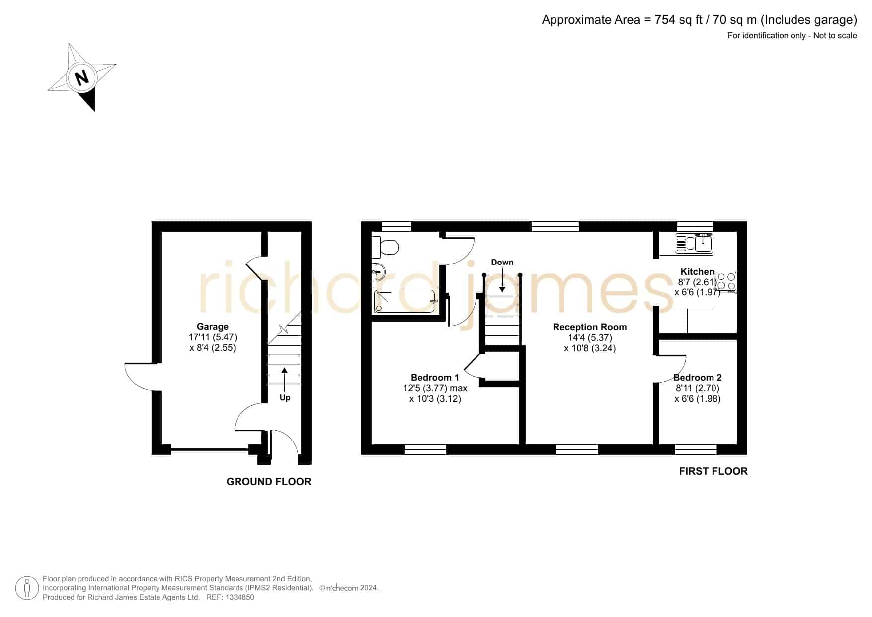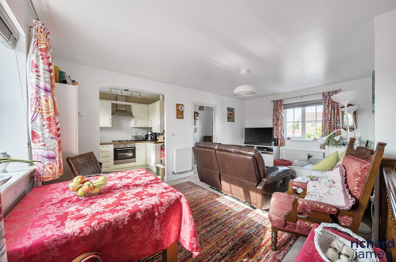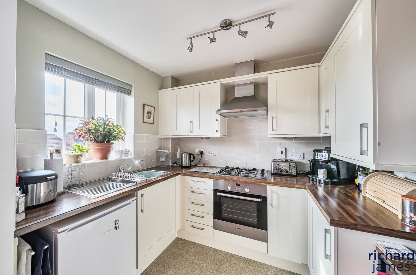 This attractive home features a garage with internal access, driveway parking, and a useful under-stair utility cupboard. The main living space includes a bright and spacious lounge/diner, a stylish kitchen fitted with an integrated oven and gas hob, two well-proportioned bedrooms, and a modern bathroom.