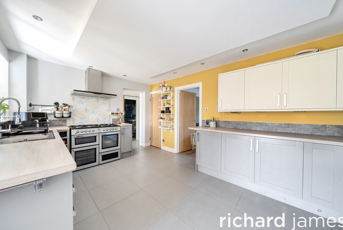 The ground floor has been thoughtfully reconfigured to maximise modern living. A well-proportioned lounge provides a comfortable retreat, while to the rear, the standout kitchen and dining room creates a sociable hub of the home, complete with bi-fold doors opening onto the landscaped rear garden. This space is perfect for entertaining or everyday family life.