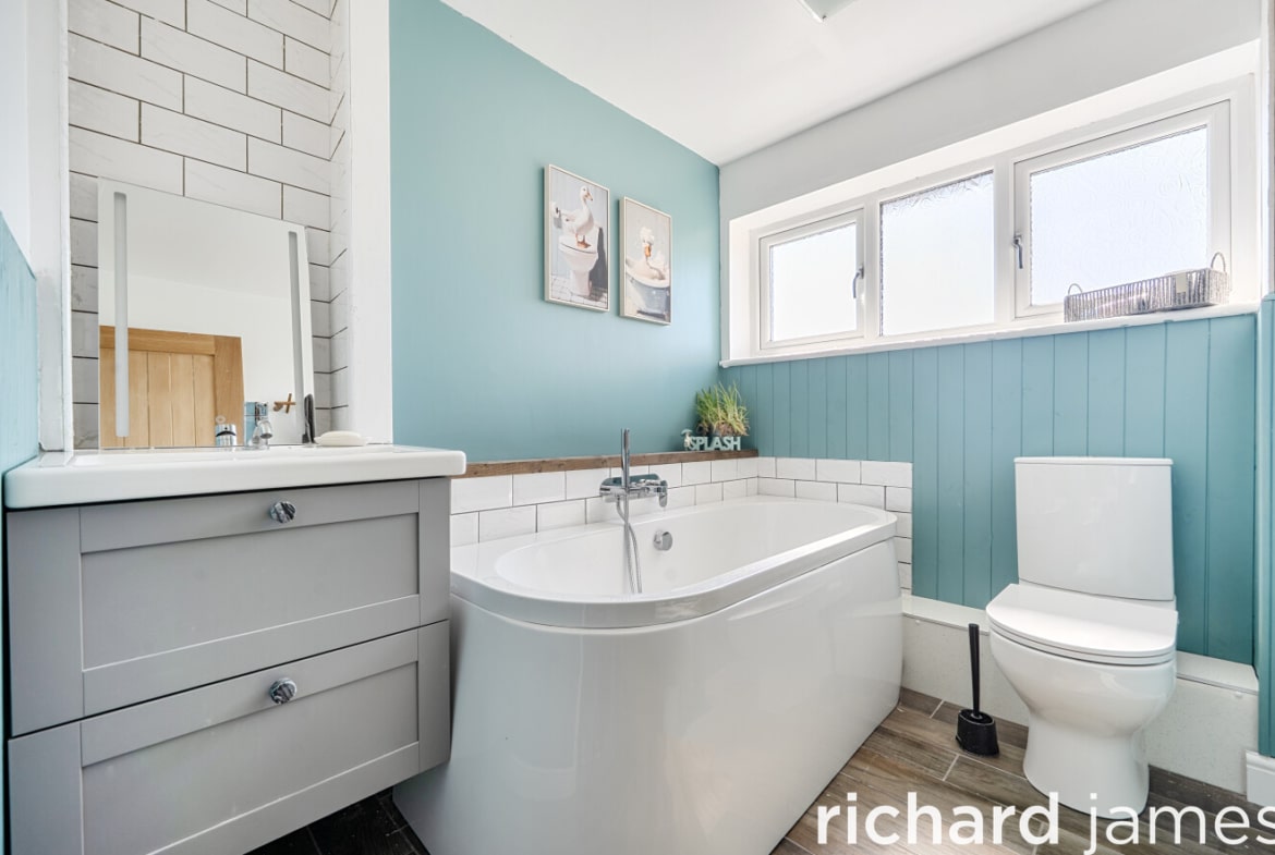 Upstairs, the property continues to impress with four bedrooms, including a particularly generous principal bedroom. The remaining bedrooms are well-sized, offering flexibility for family living, guests or working from home. A modern family bathroom completes the first floor.