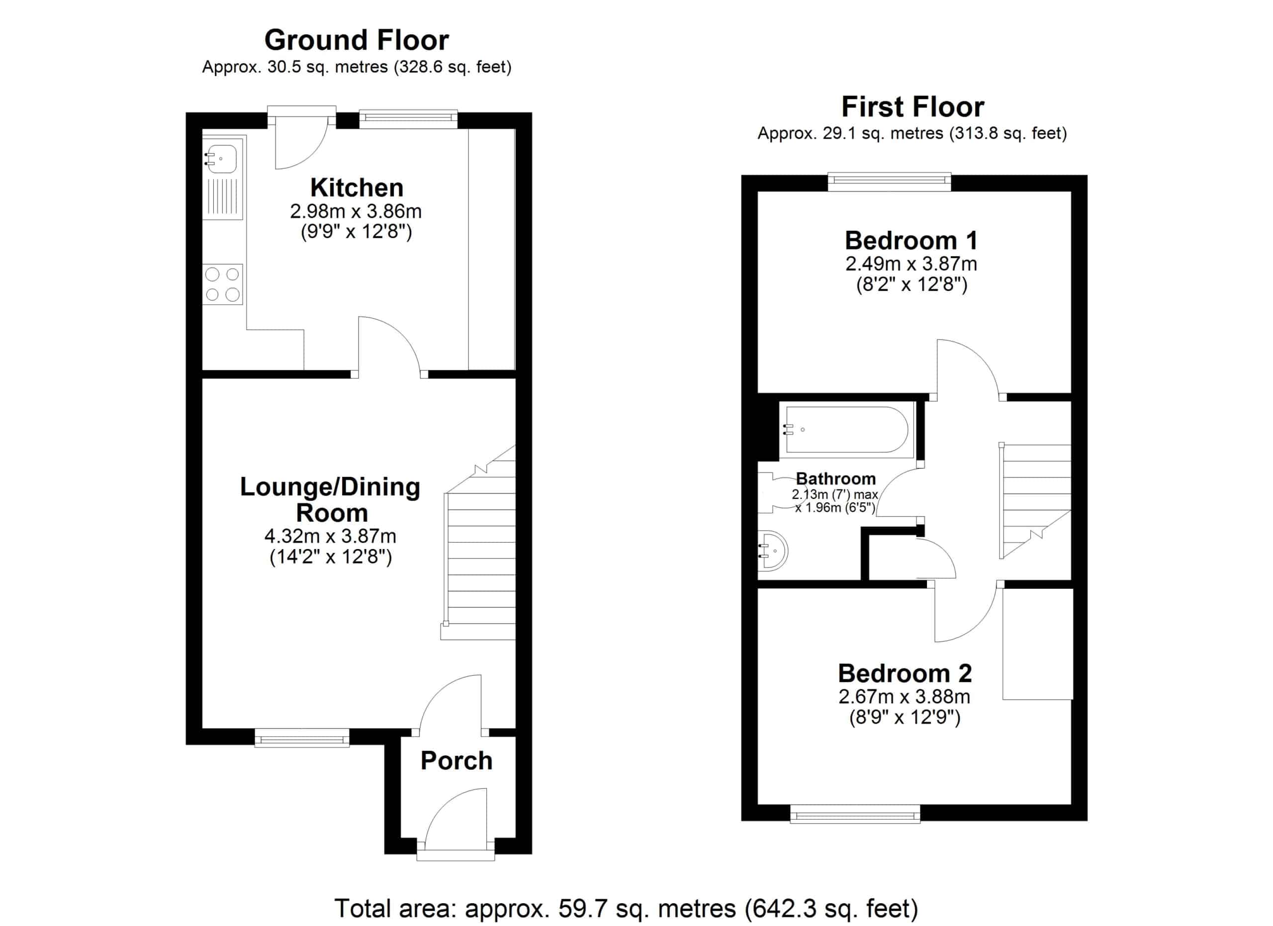 Upstairs there are TWO DOUBLE bedrooms and a family Bathroom offering shower over bath.