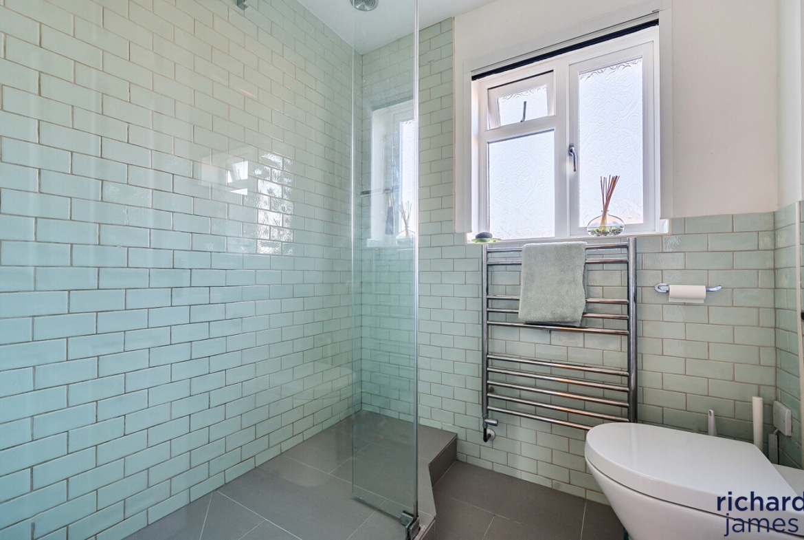 Upstairs, there are two spacious double bedrooms, one of which benefits from fitted wardrobes, along with a well-proportioned single bedroom. The refitted shower room offers a stylish finish.