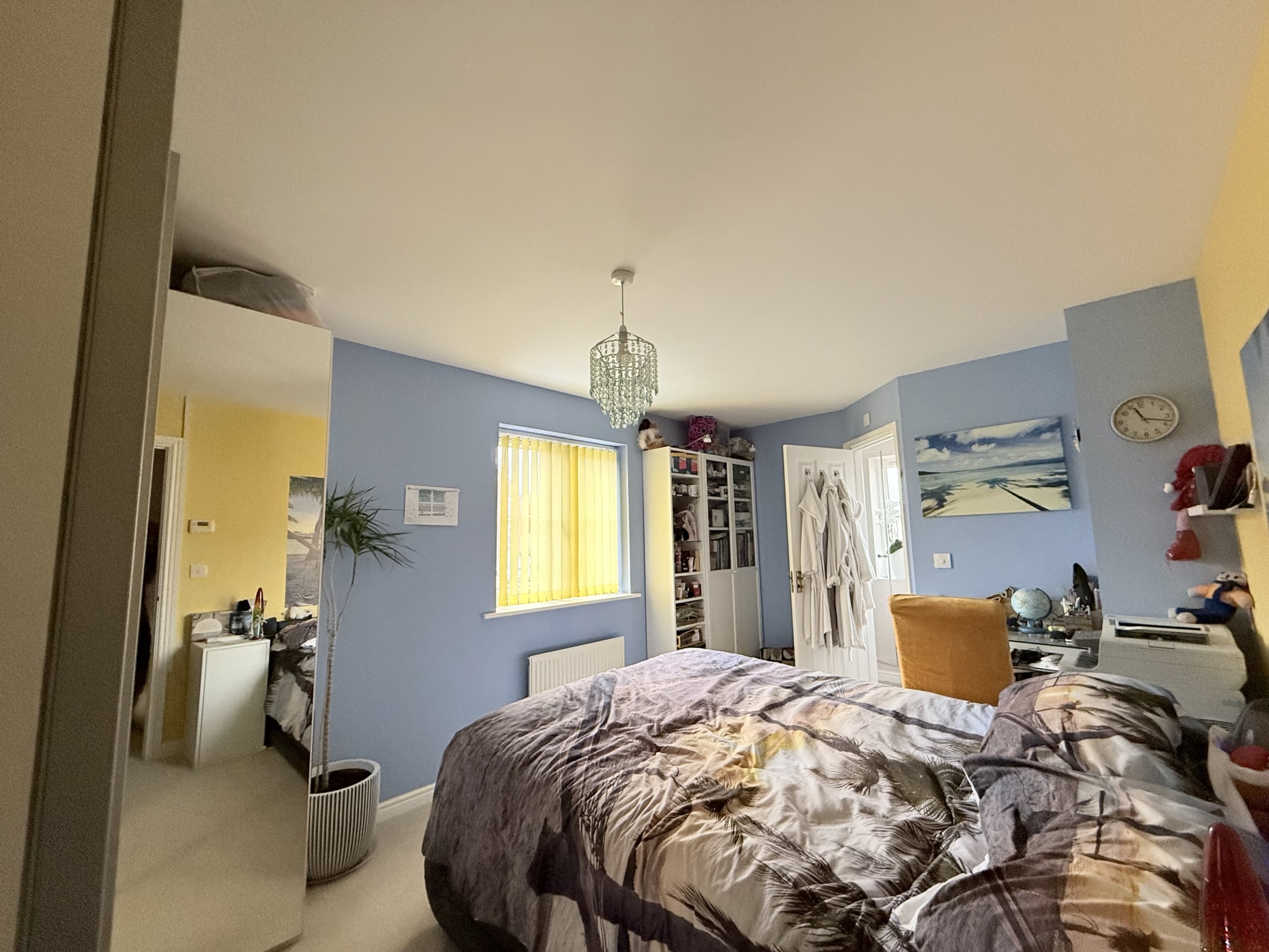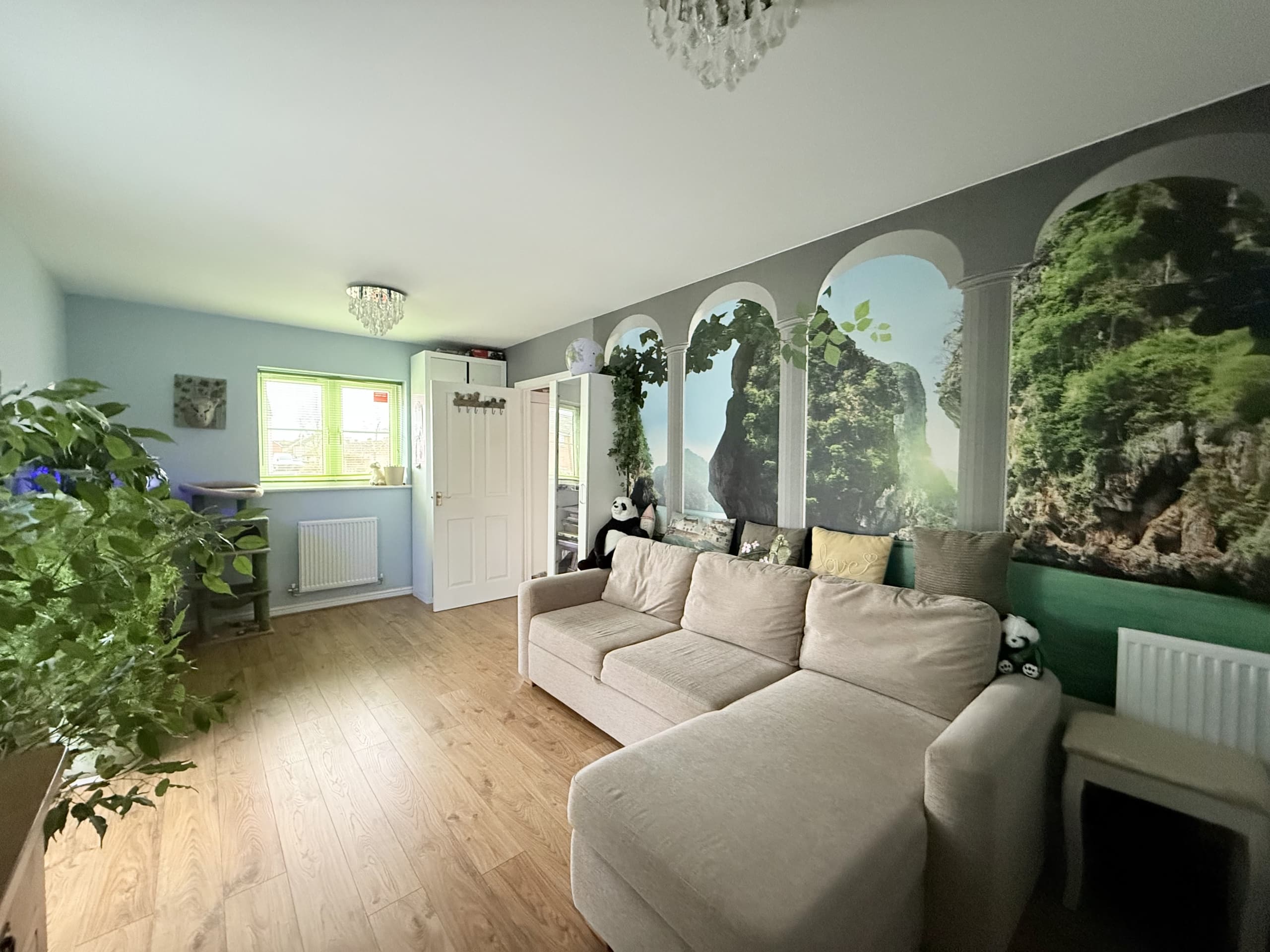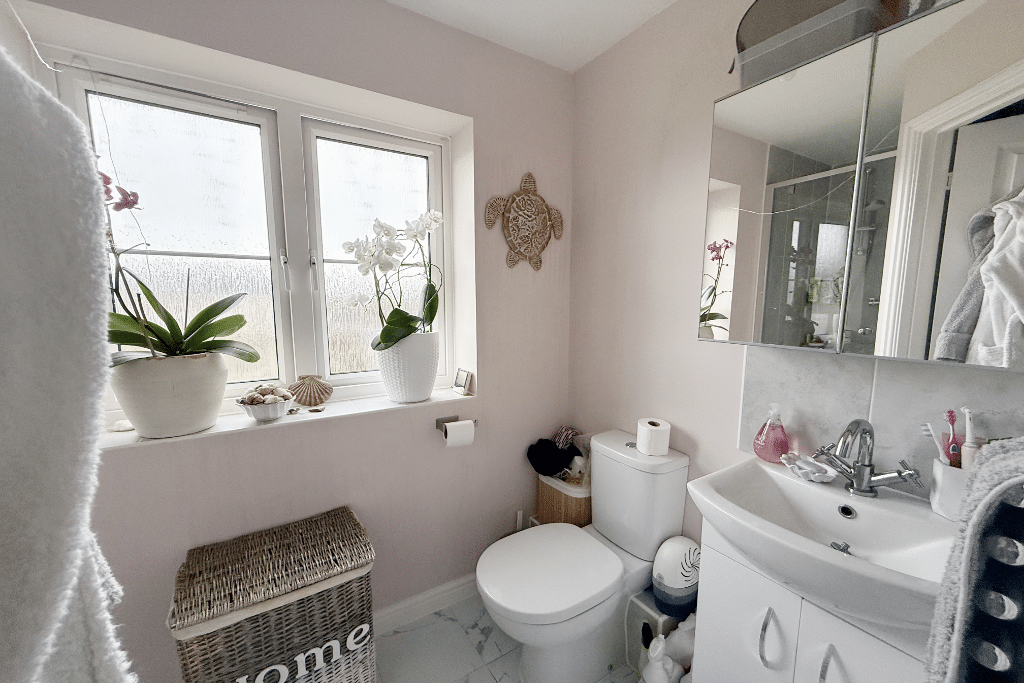 The first floor offers a well-balanced layout with three bedrooms and a family bathroom. The main bedroom benefits from an en-suite shower room, providing a private and practical retreat. Two further well-proportioned bedrooms offer flexibility for family members, guests or home working, while the modern family bathroom serves the remaining rooms. An airing cupboard on the landing provides useful additional storage.