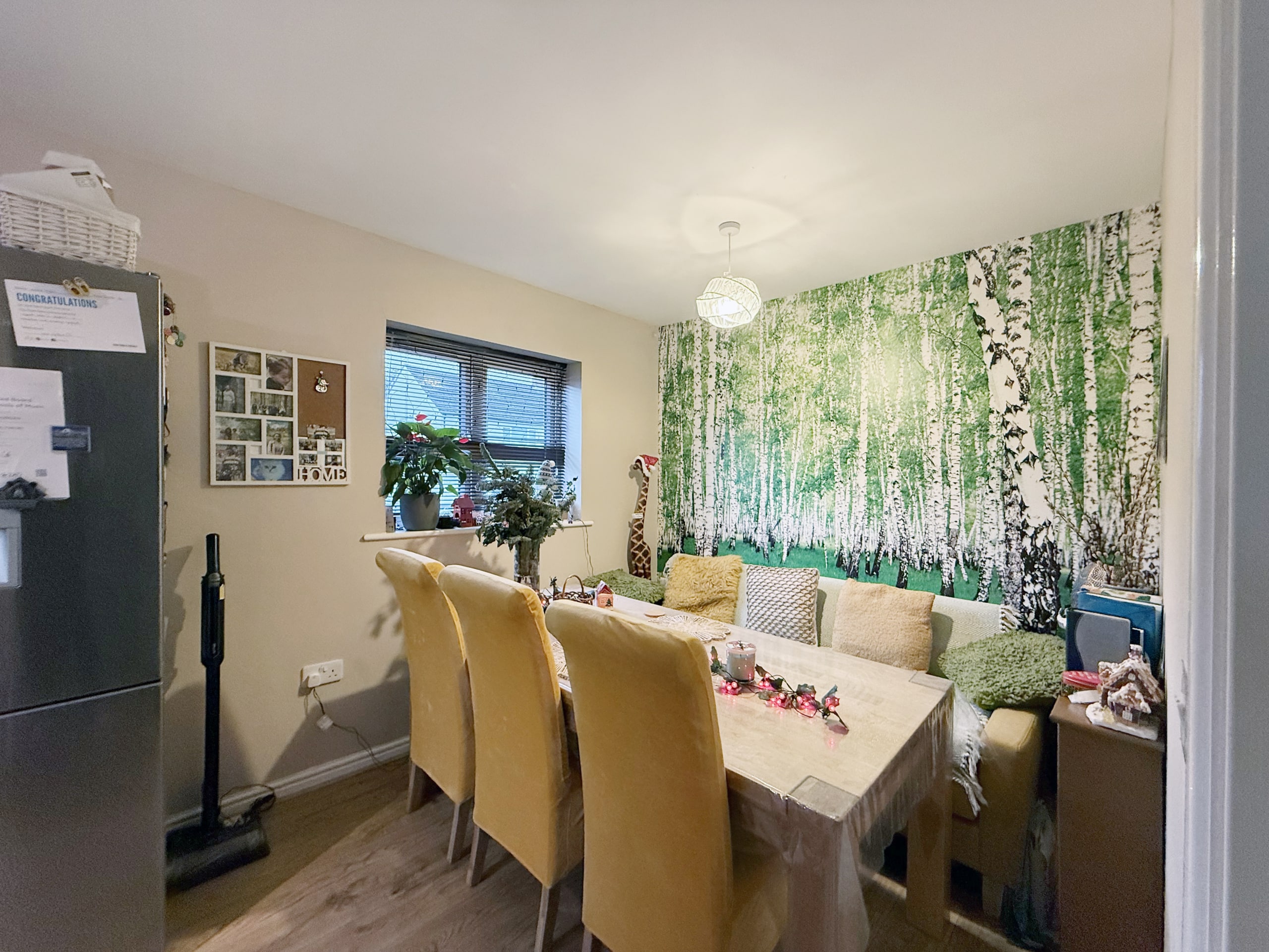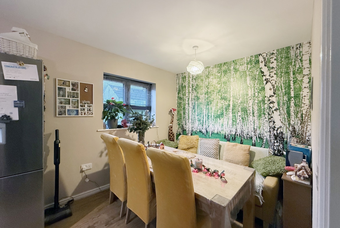 On entering the home, a welcoming hallway provides access to the main ground floor living areas and the staircase to the first floor. The generous lounge is bright and inviting, featuring wooden flooring and a layout that allows for flexible furniture arrangements. From here, doors open into the conservatory, creating a seamless flow of natural light and offering pleasant views over the rear garden. The modern kitchen/diner is well designed for both everyday living and entertaining, fitted with contemporary cabinetry, ample worktop space and integrated appliances, with room for freestanding appliances and a dining area. A convenient downstairs WC completes the ground floor.