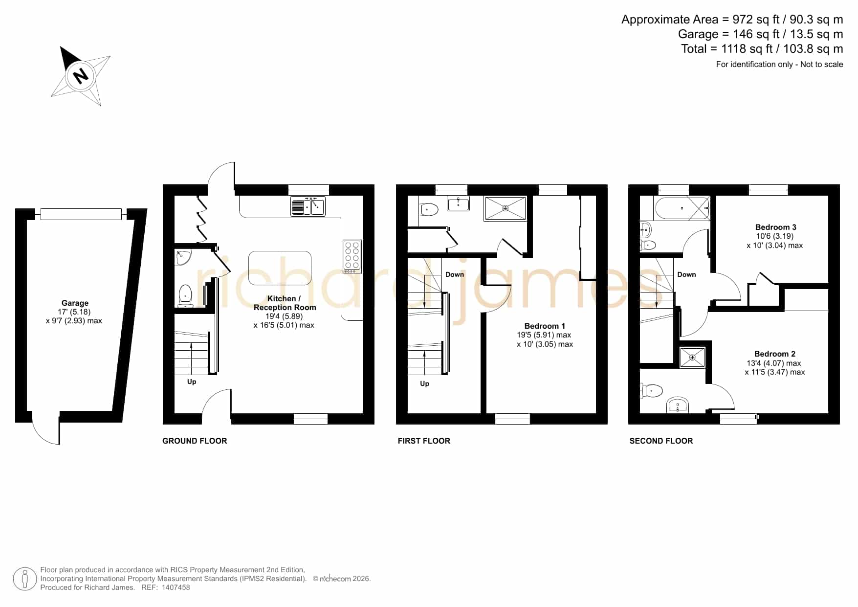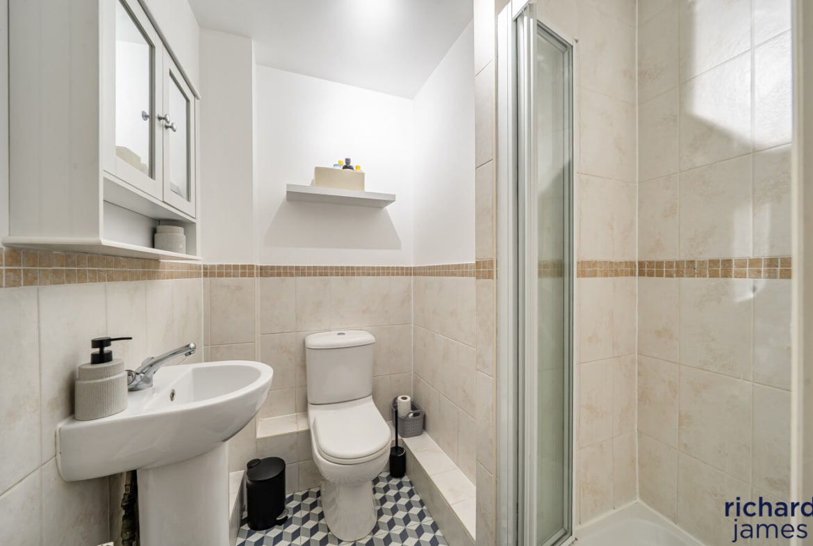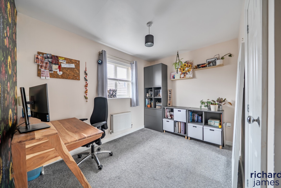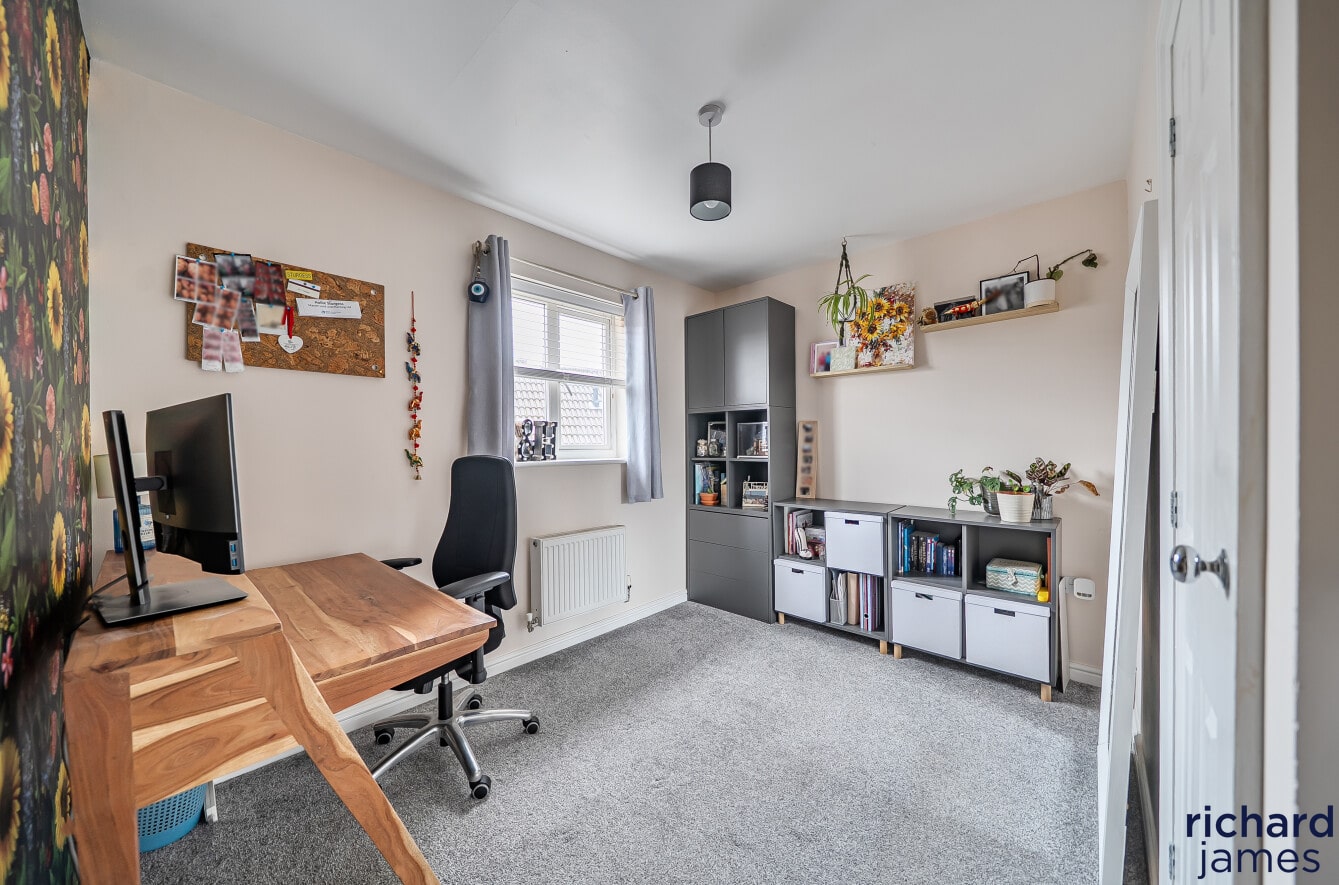 On the first floor, the property boasts an impressive master suite, providing a peaceful retreat complete with built-in wardrobes and a well-appointed ensuite bathroom. The remaining accommodation is arranged over the upper floor, where Bedroom Two also benefits from its own ensuite, while Bedroom Three is served by the family bathroom. All three bedrooms are generous doubles and include built-in wardrobes, offering excellent storage throughout.