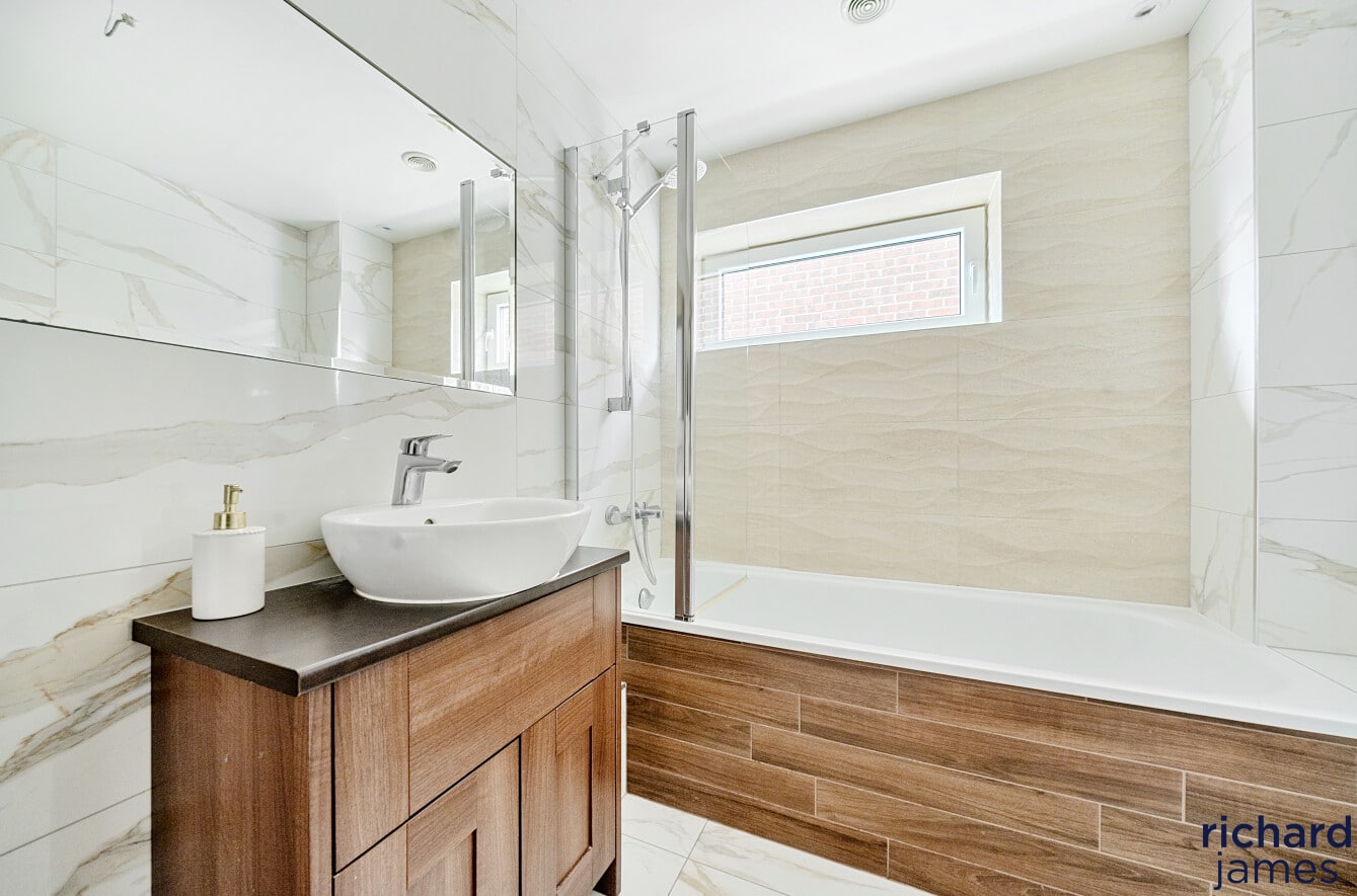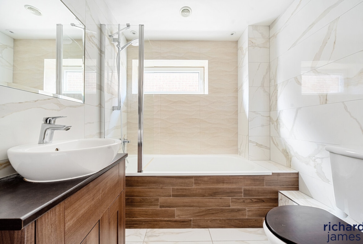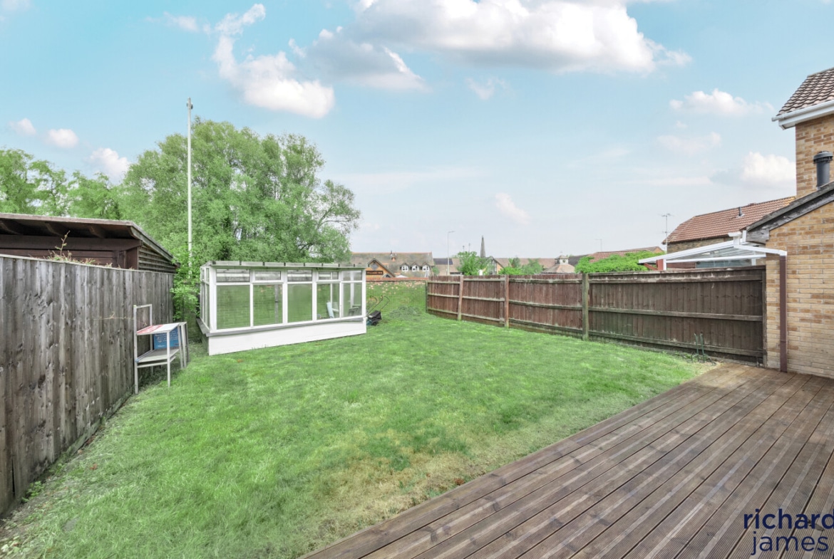 The exterior of the house offers a generous private garden, perfect for outdoor enthusiasts and those who love to soak up the sun. The garden boasts a delightful decked seating area, ideal for alfresco dining or simply enjoying a quiet moment, and a well-maintained lawn that provides ample space for children to play or for gardening enthusiasts to indulge in their hobby. The front of the property features driveway parking, capable of accommodating multiple vehicles, adding to the home’s practicality and ease of living.