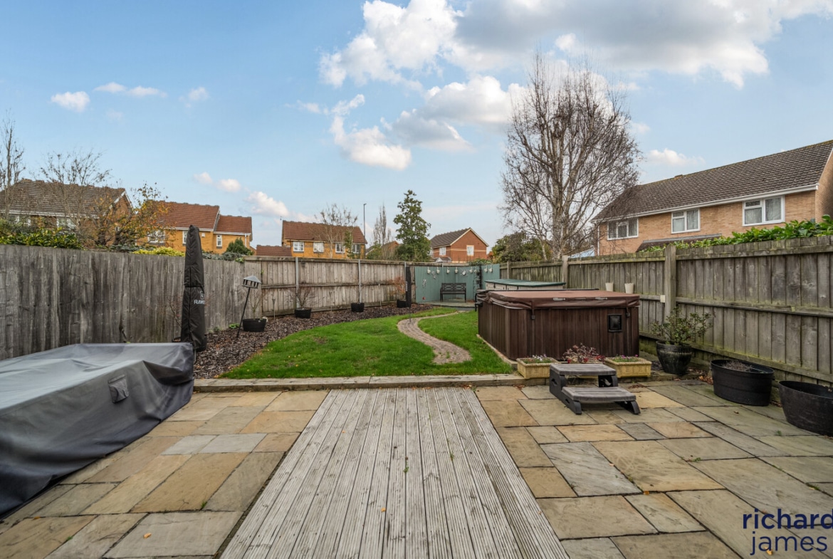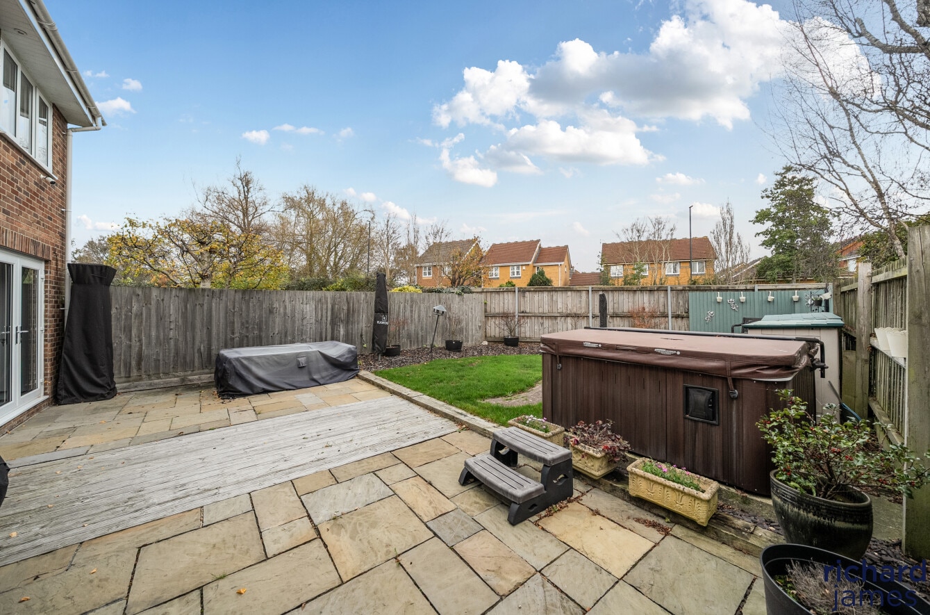 Outside, the property continues to impress. A large driveway provides excellent parking, and the rear garden offers a genuinely private setting — a calm, enclosed space that works well for relaxing, playing or entertaining.