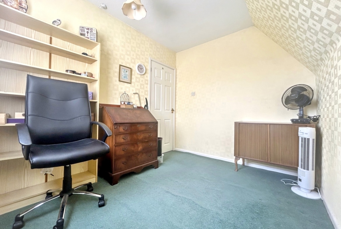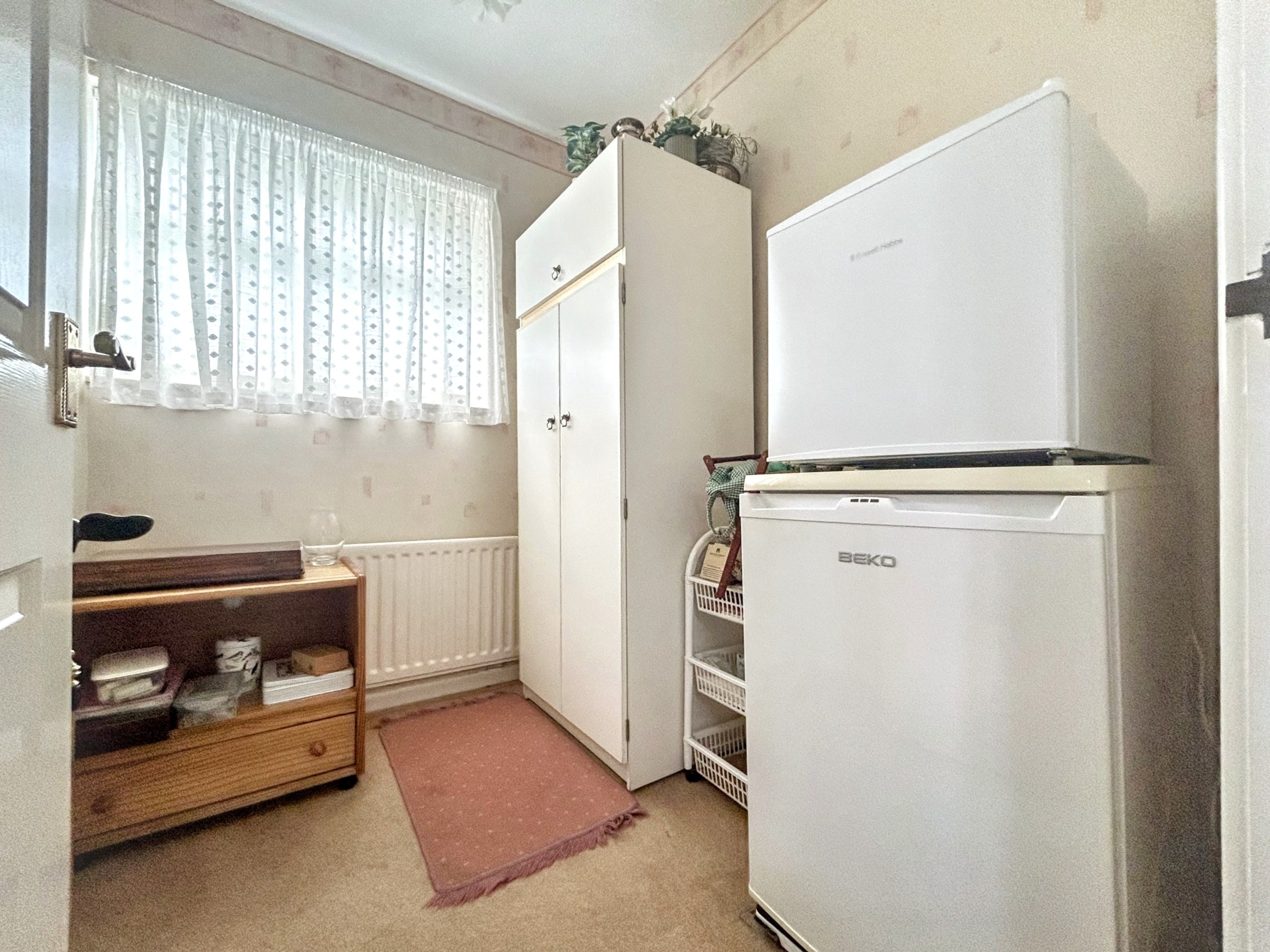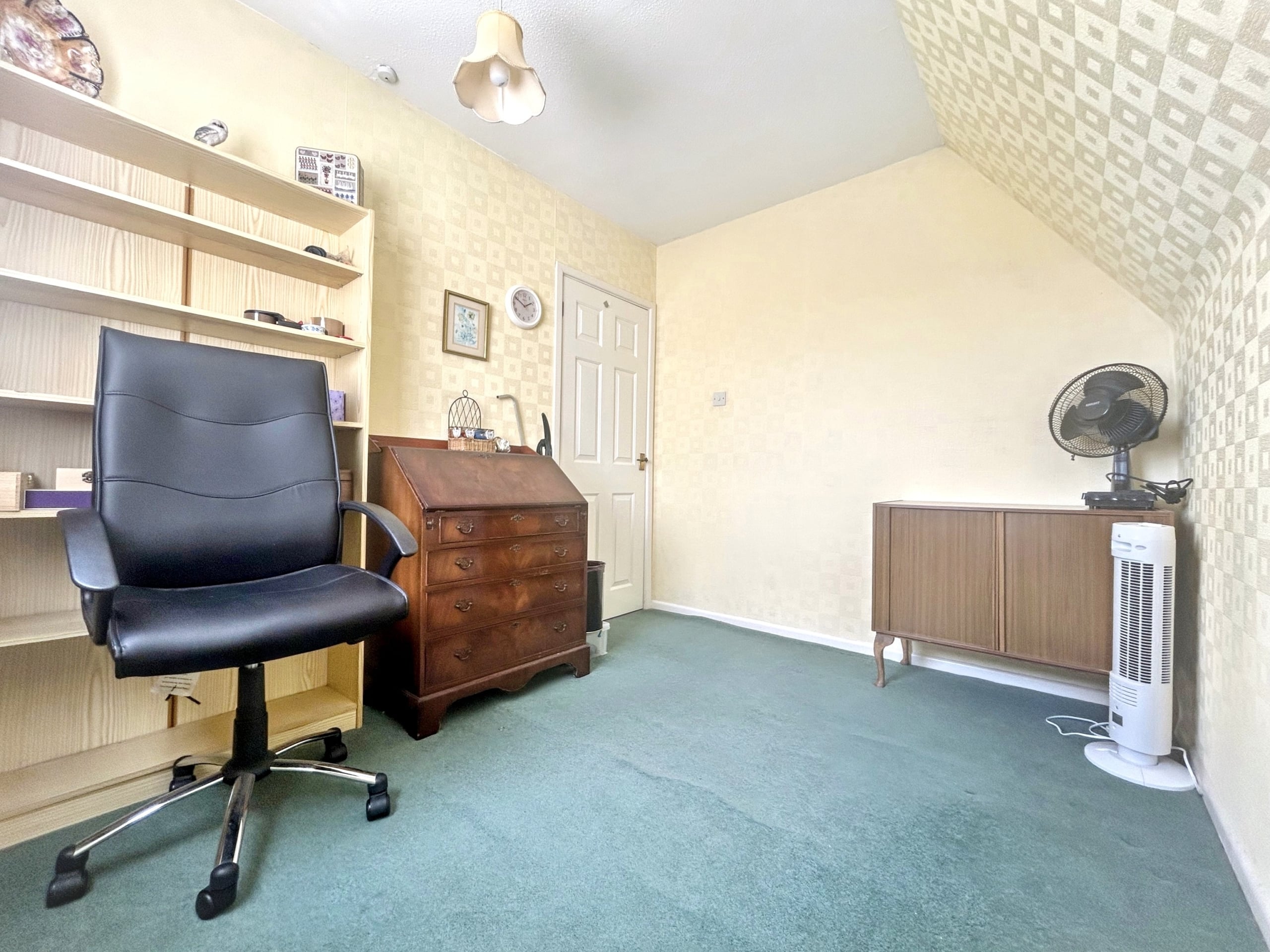 Upstairs, the property offers three well-proportioned bedrooms, with the principal bedroom benefiting from ample built-in storage. The first floor also includes a family bathroom and additional storage space.